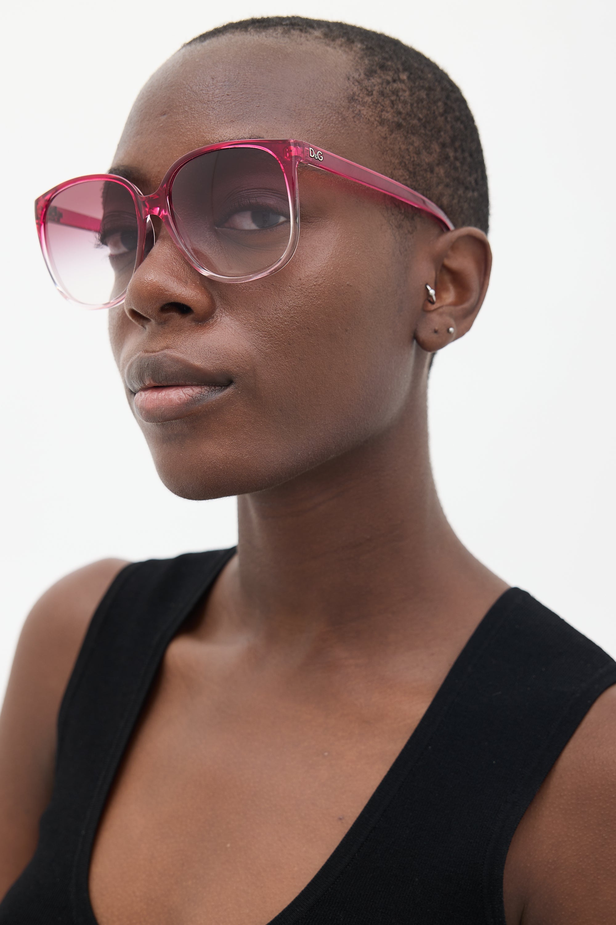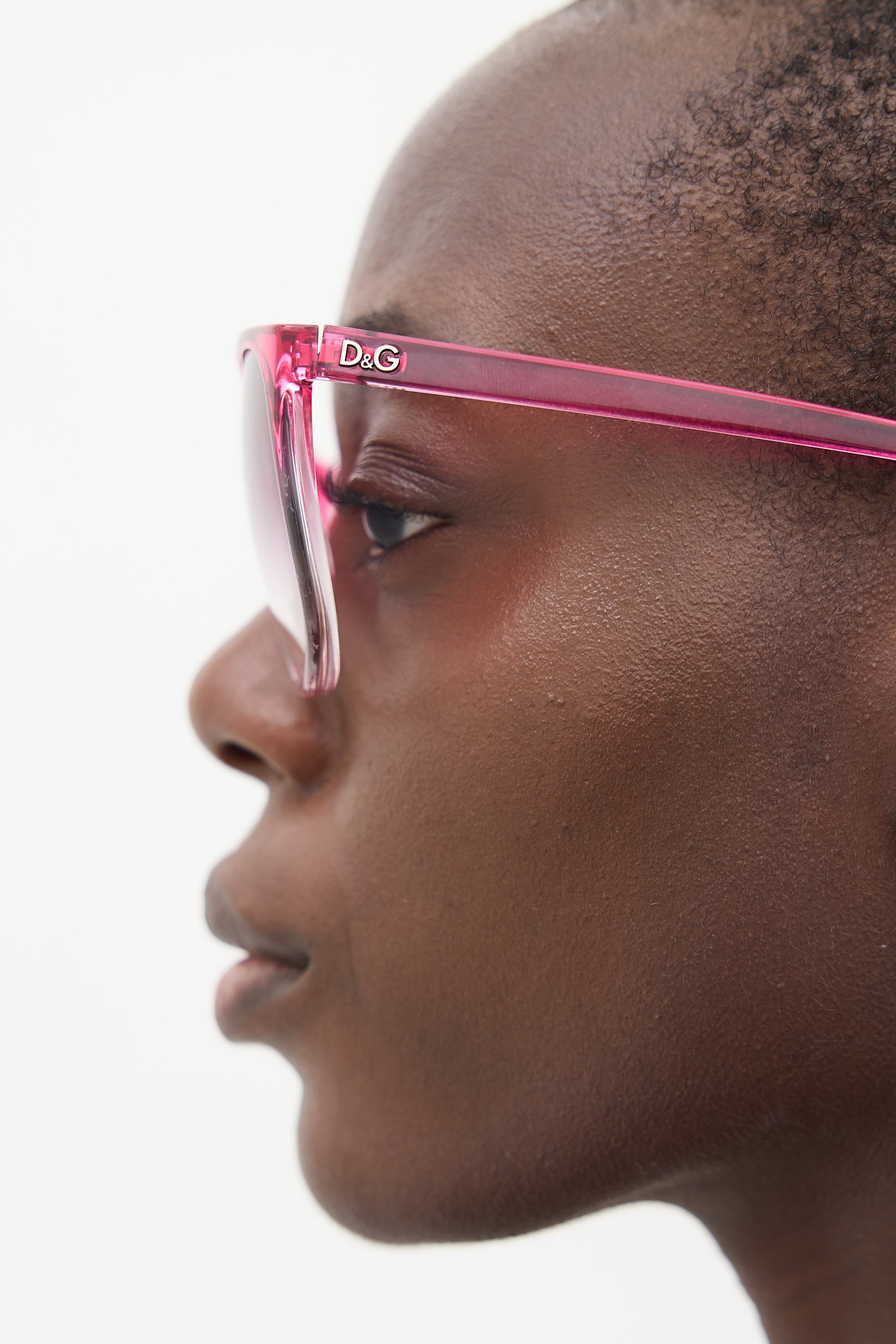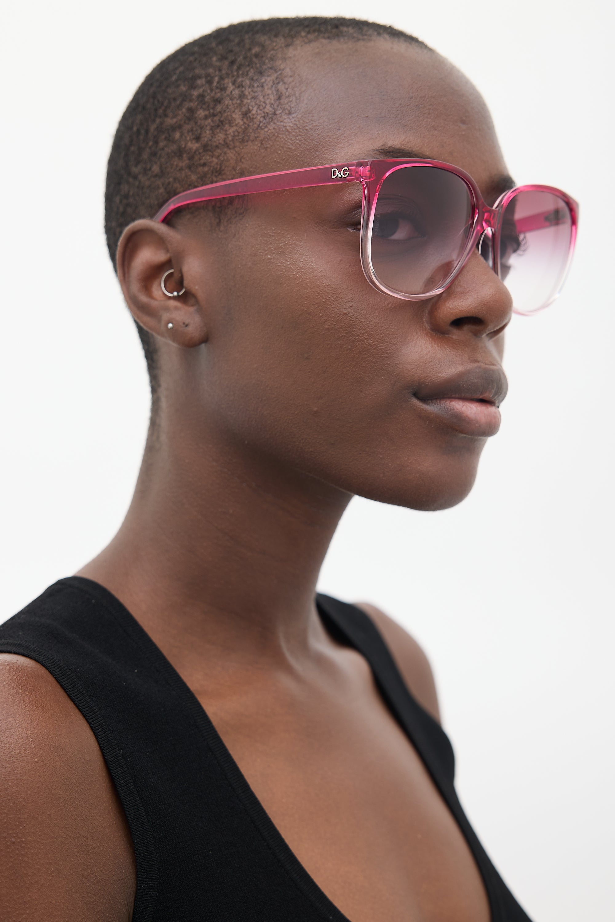 Pre-owned D&G pink 8080 sunglasses featuring a tonal gradient frame, tinted lenses, nose pads, and silver tone logo hardware at temples. Comes with original case.