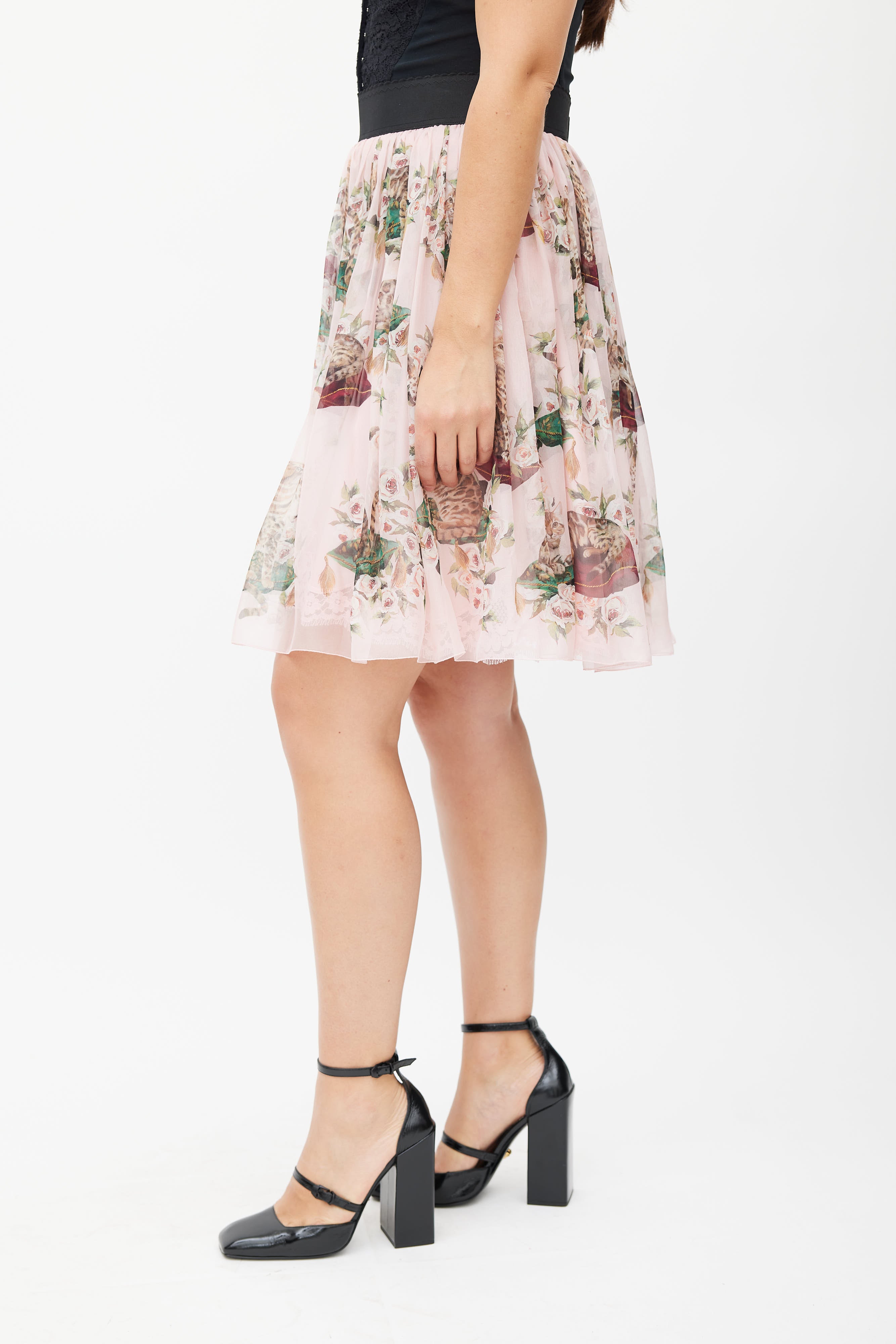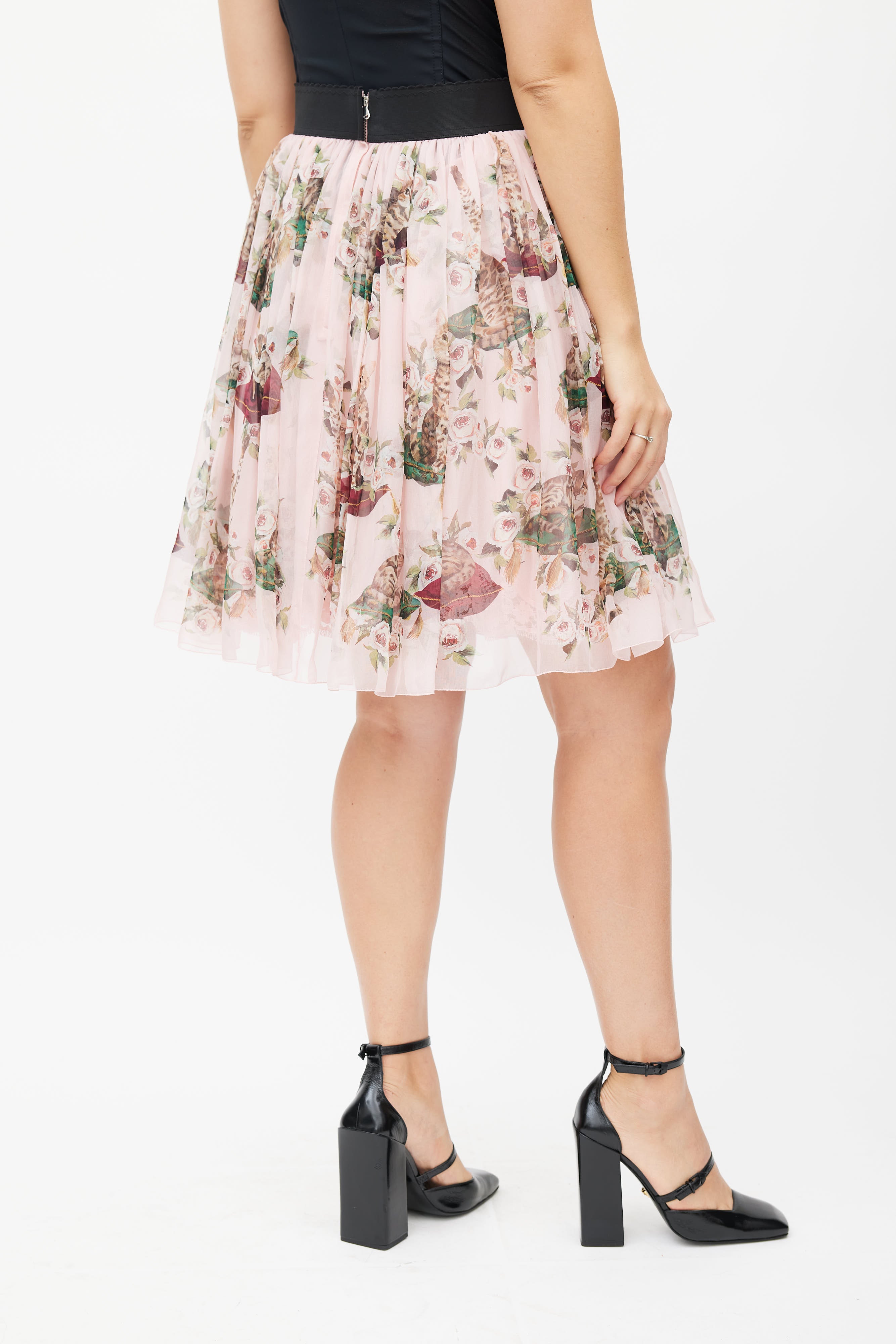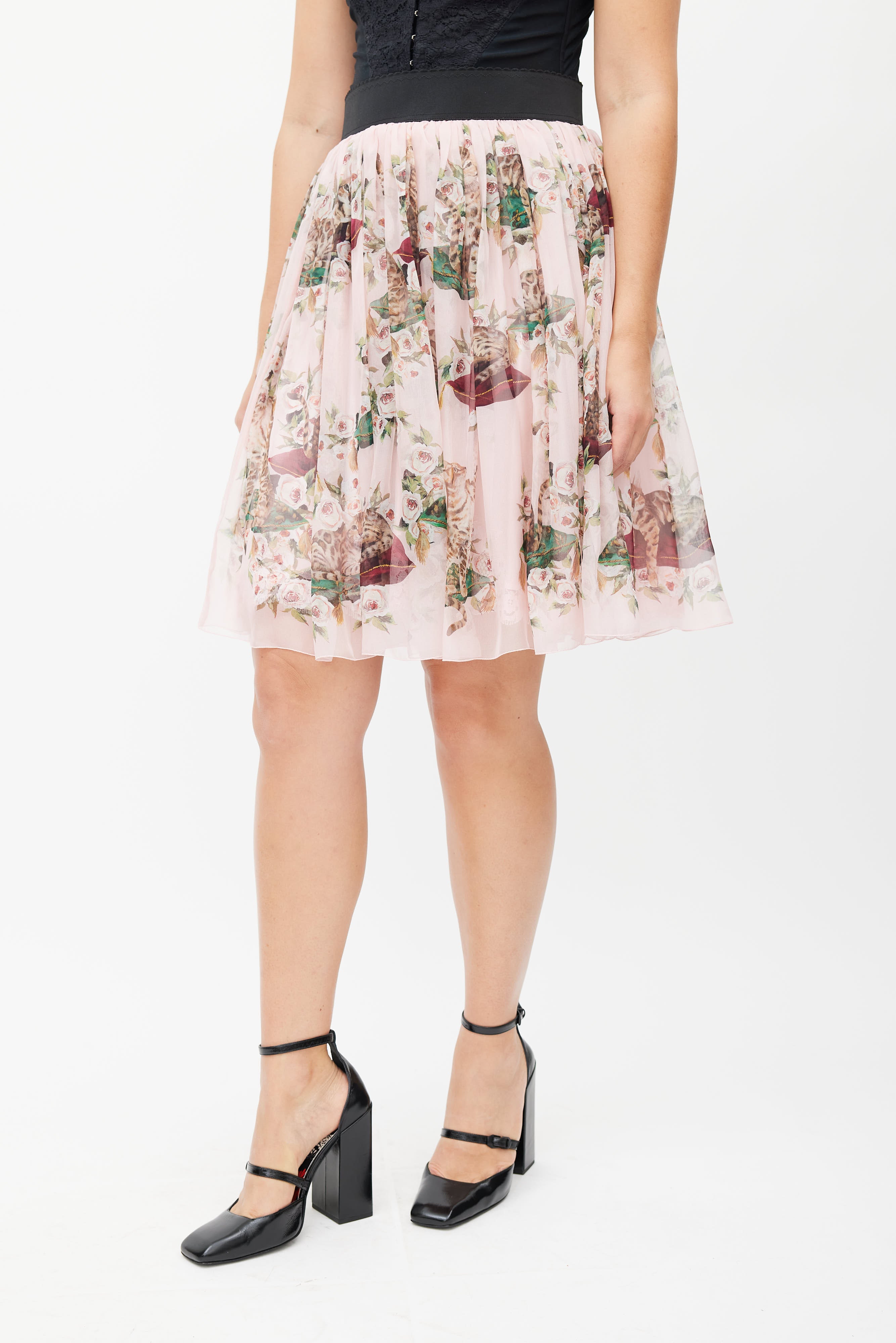 Pre-owned Dolce & Gabbana pink silk skirt featuring a multicolour floral pattern throughout, elasticized waist, and zip at back with hook and eye closure. Lined.