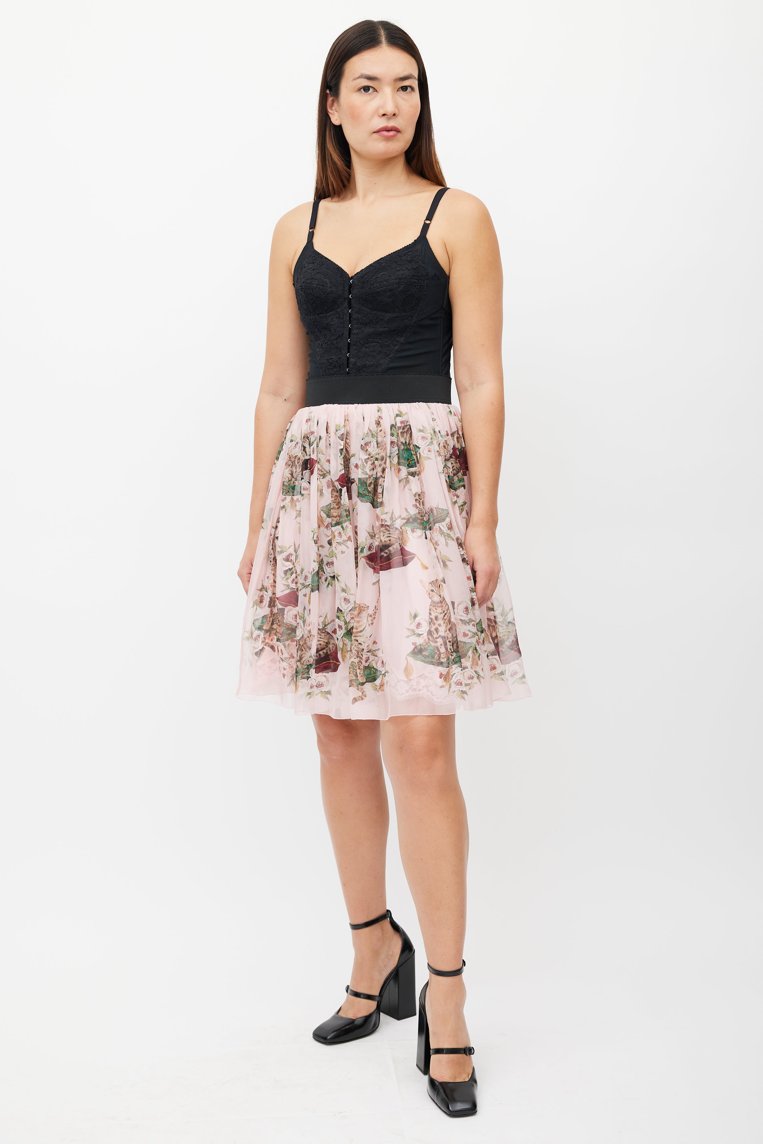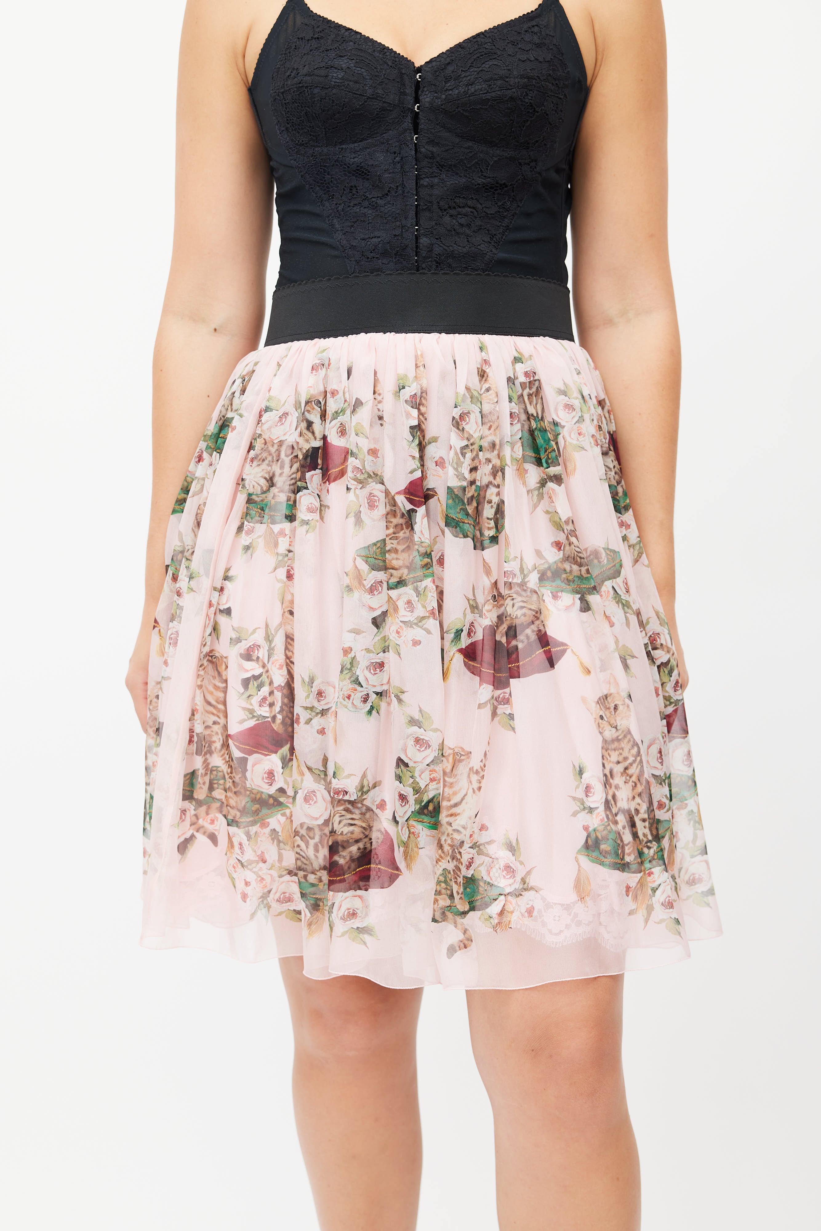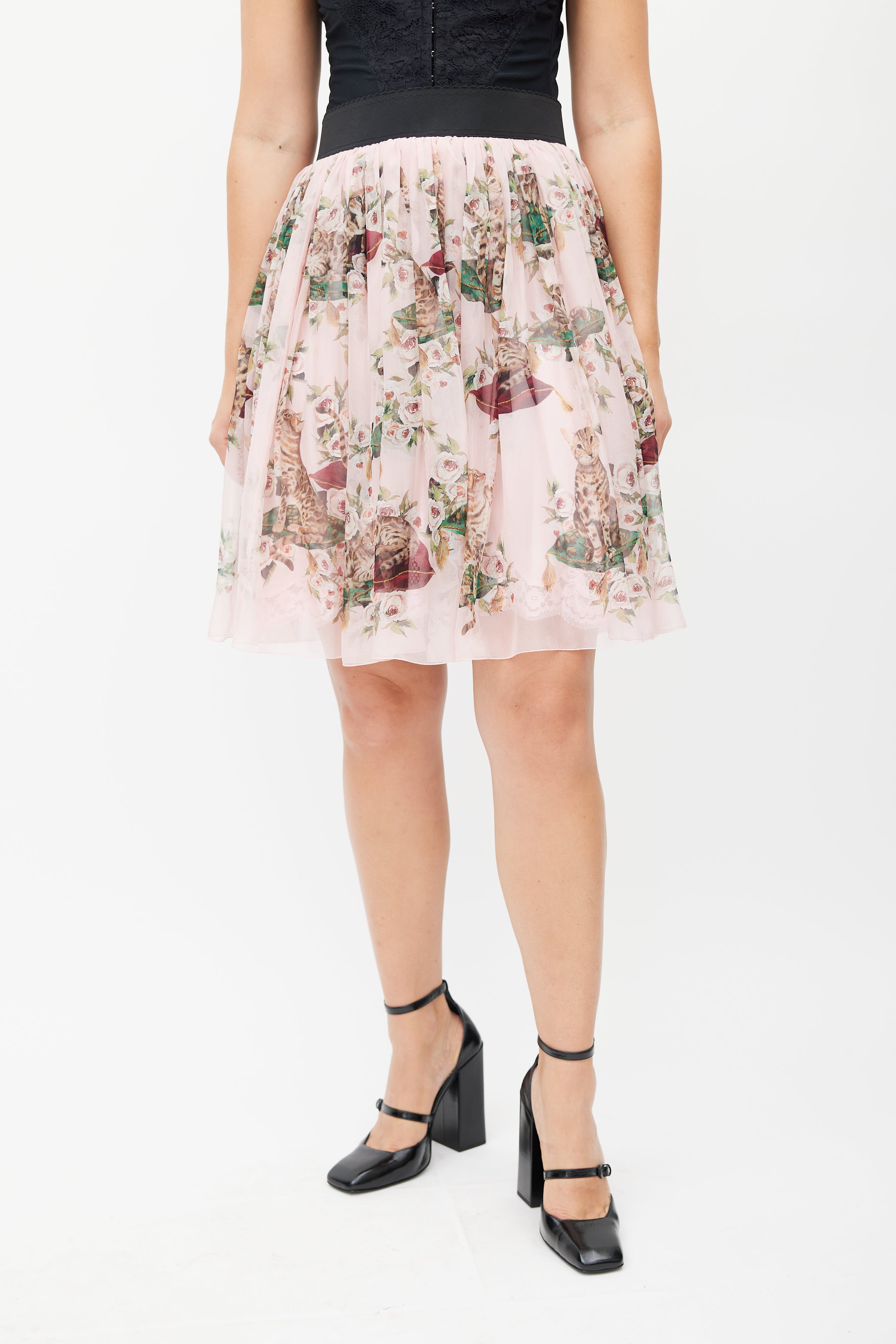 Pre-owned Dolce & Gabbana pink silk skirt featuring a multicolour floral pattern throughout, elasticized waist, and zip at back with hook and eye closure. Lined.