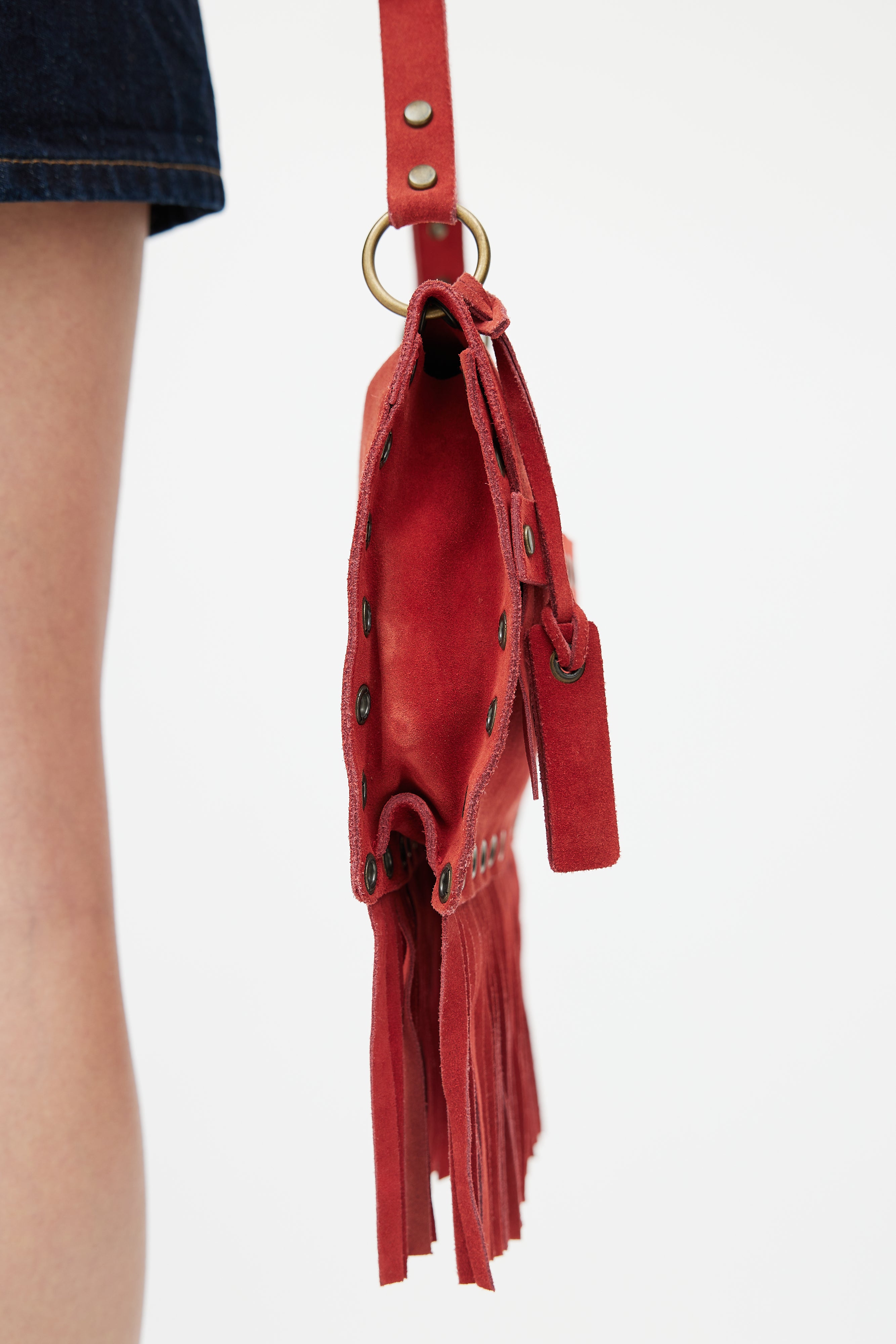 FW 2001 Red Suede Fringe Shoulder Bag
