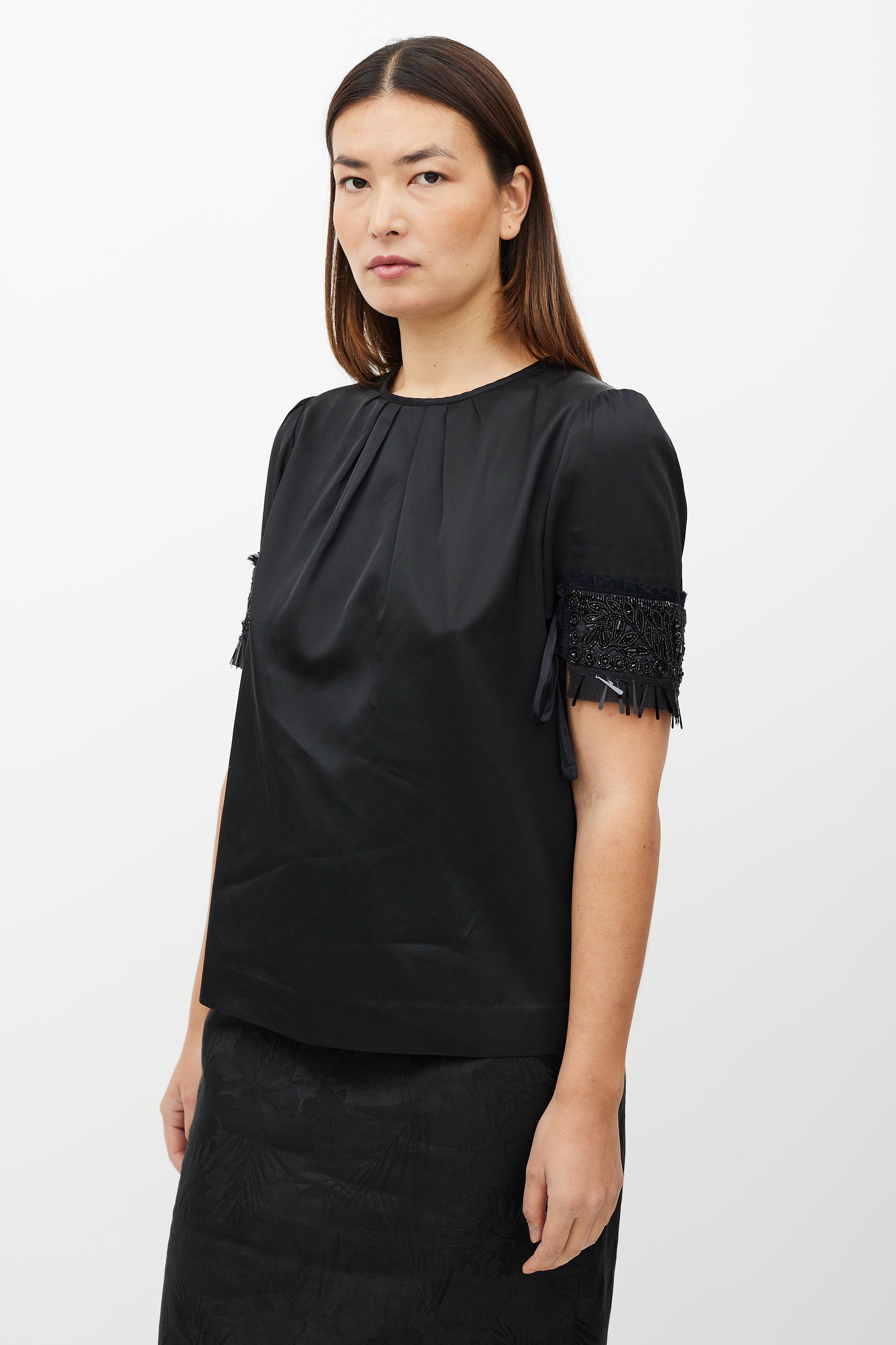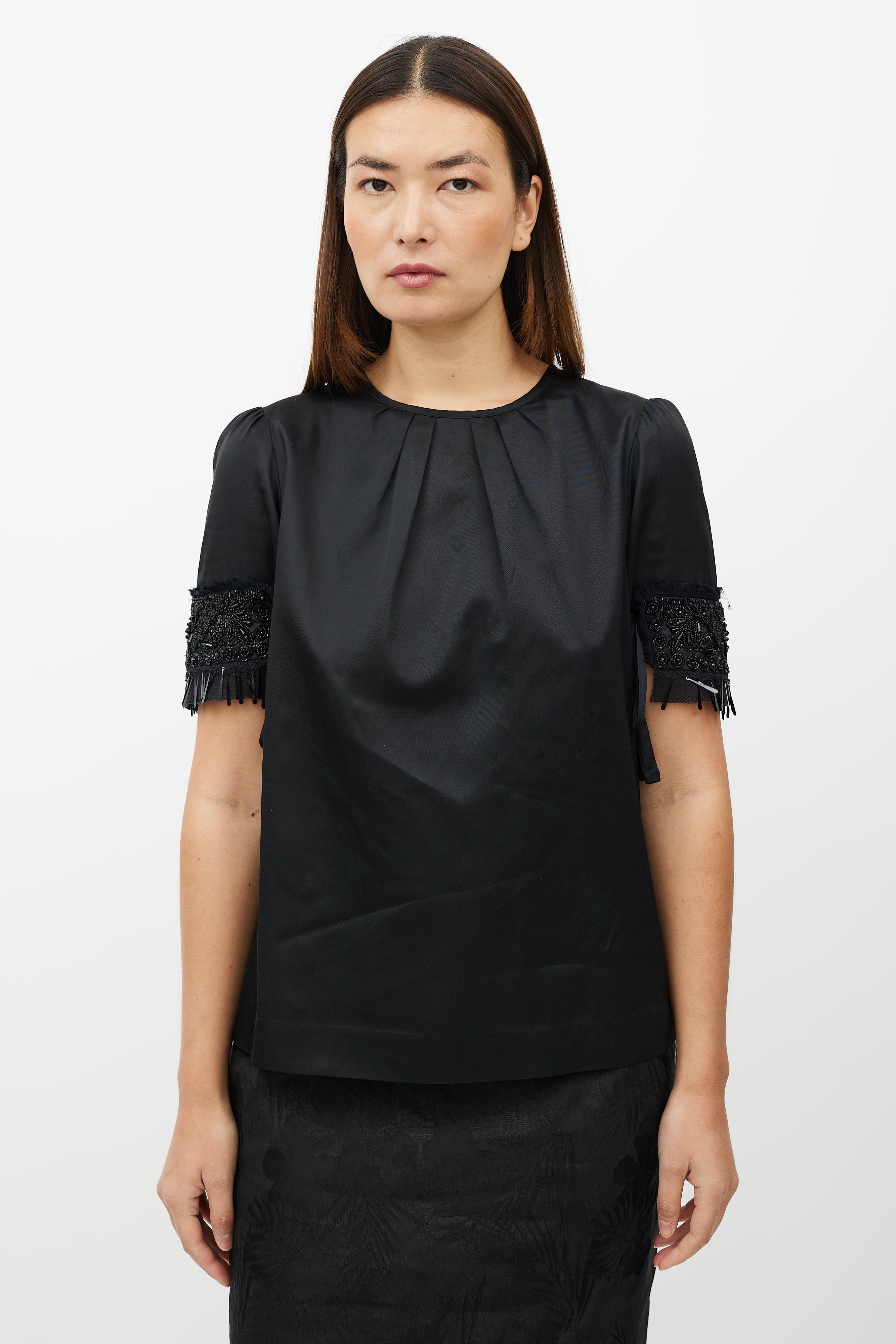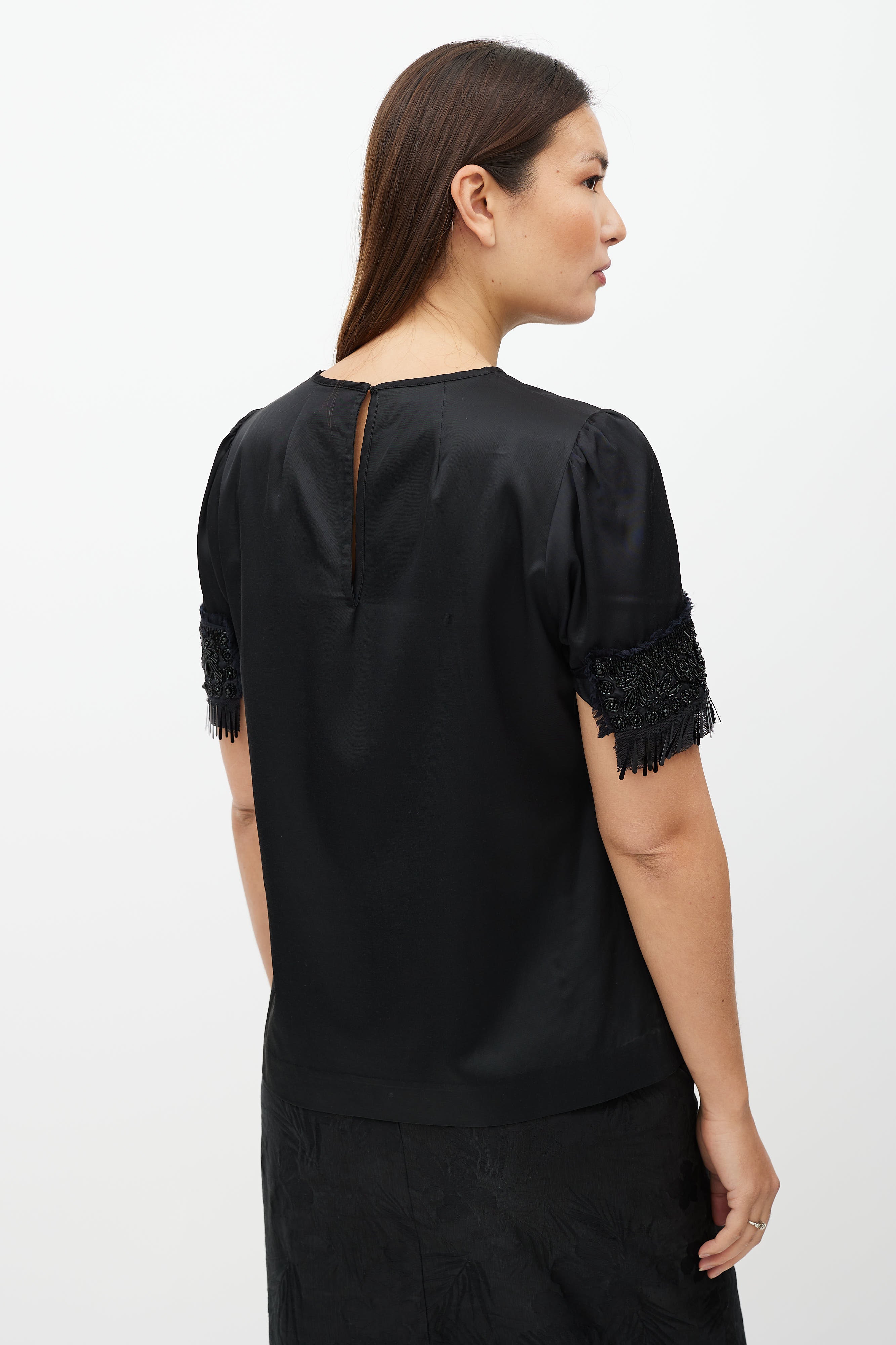 Black Embellished Short Sleeve Top EU 40 Size Guide