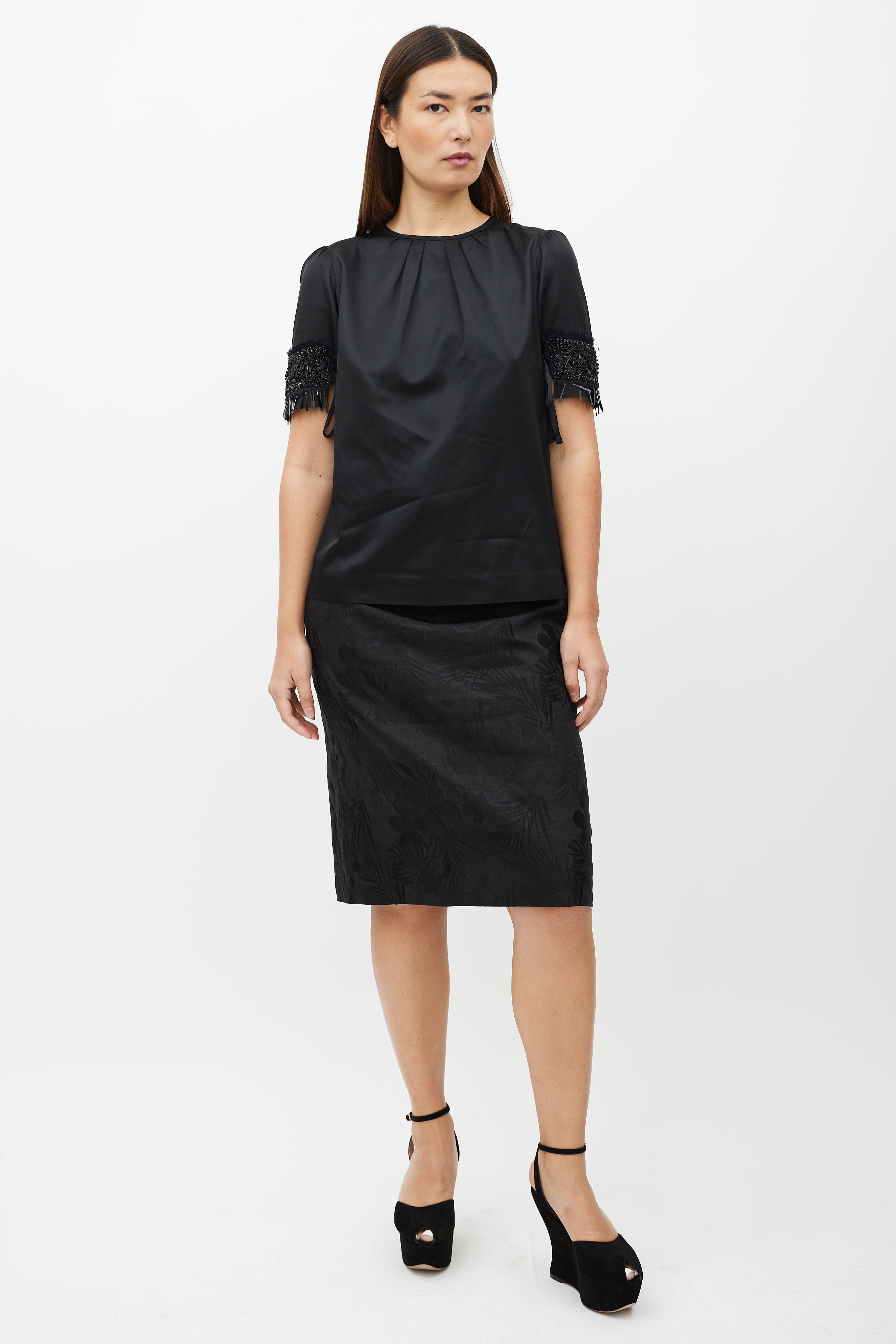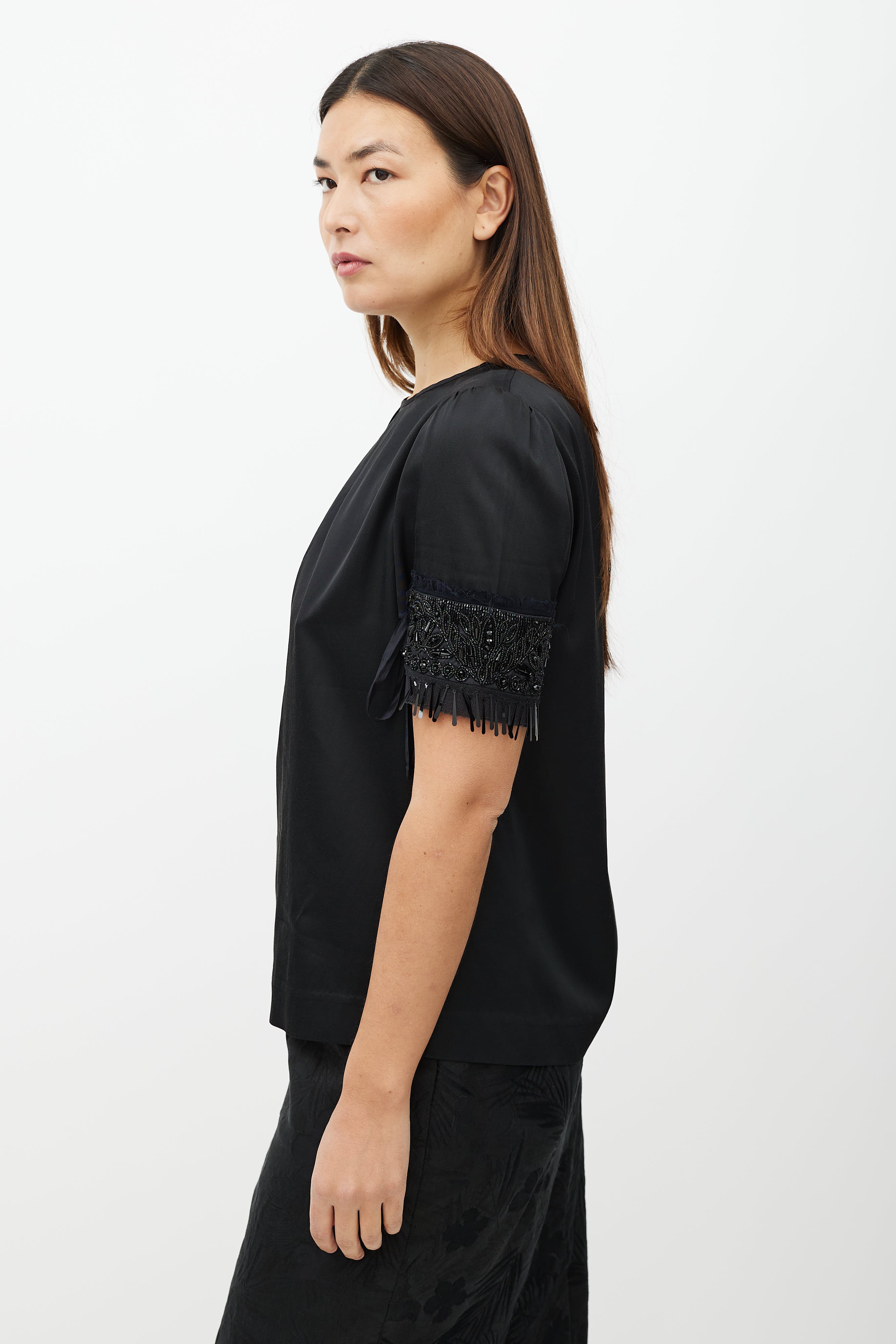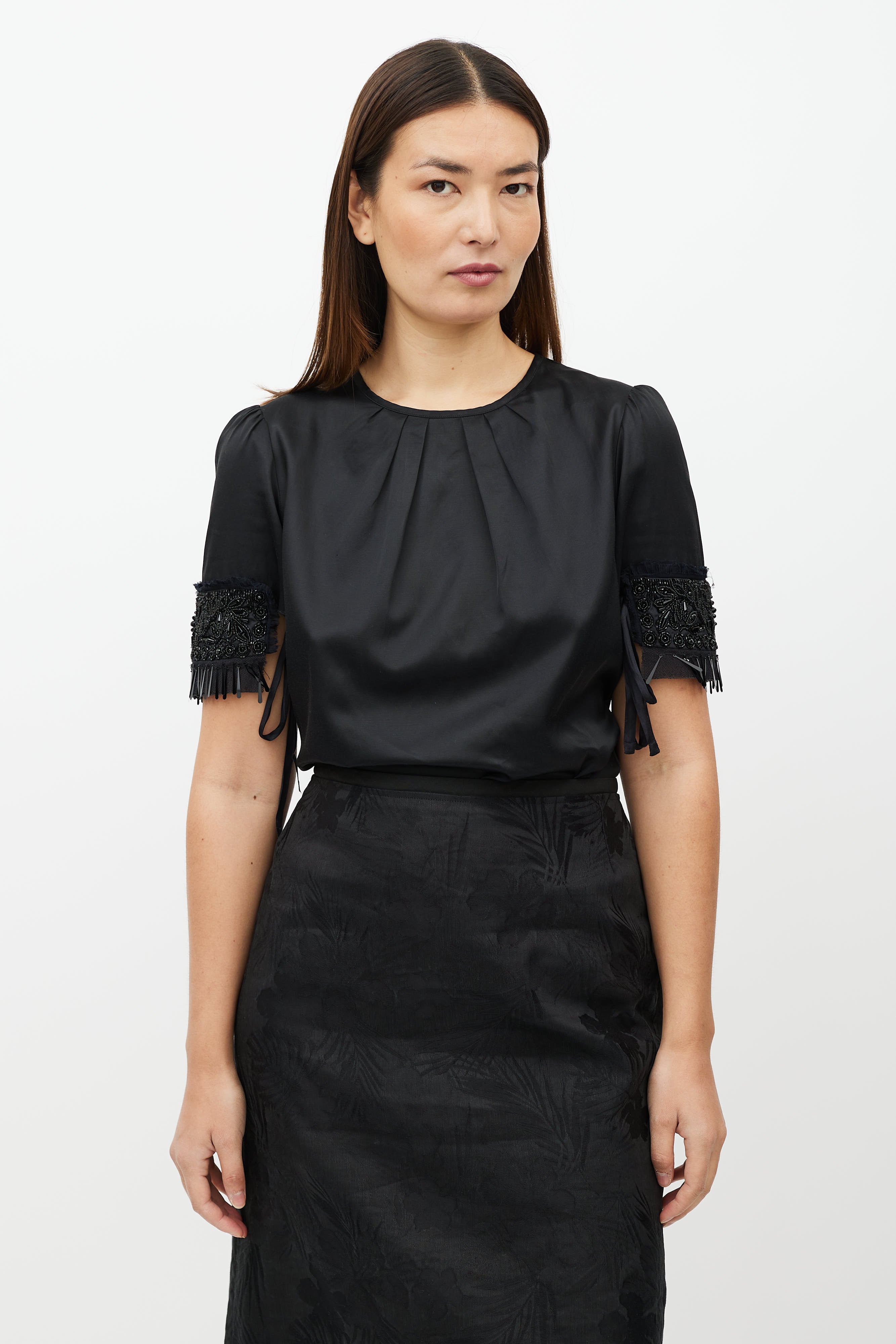 Black Embellished Short Sleeve Top EU 40 Size Guide
