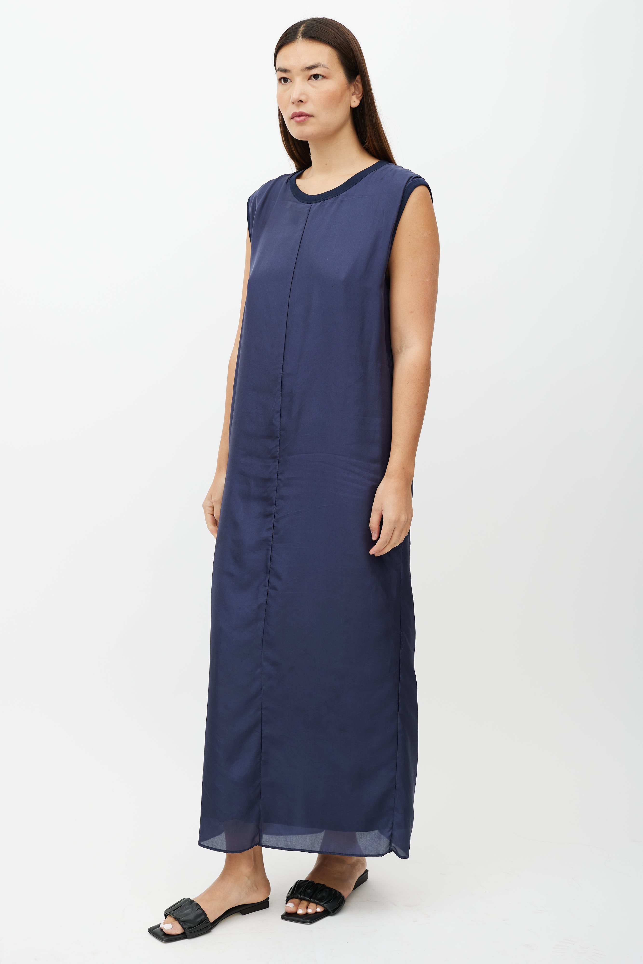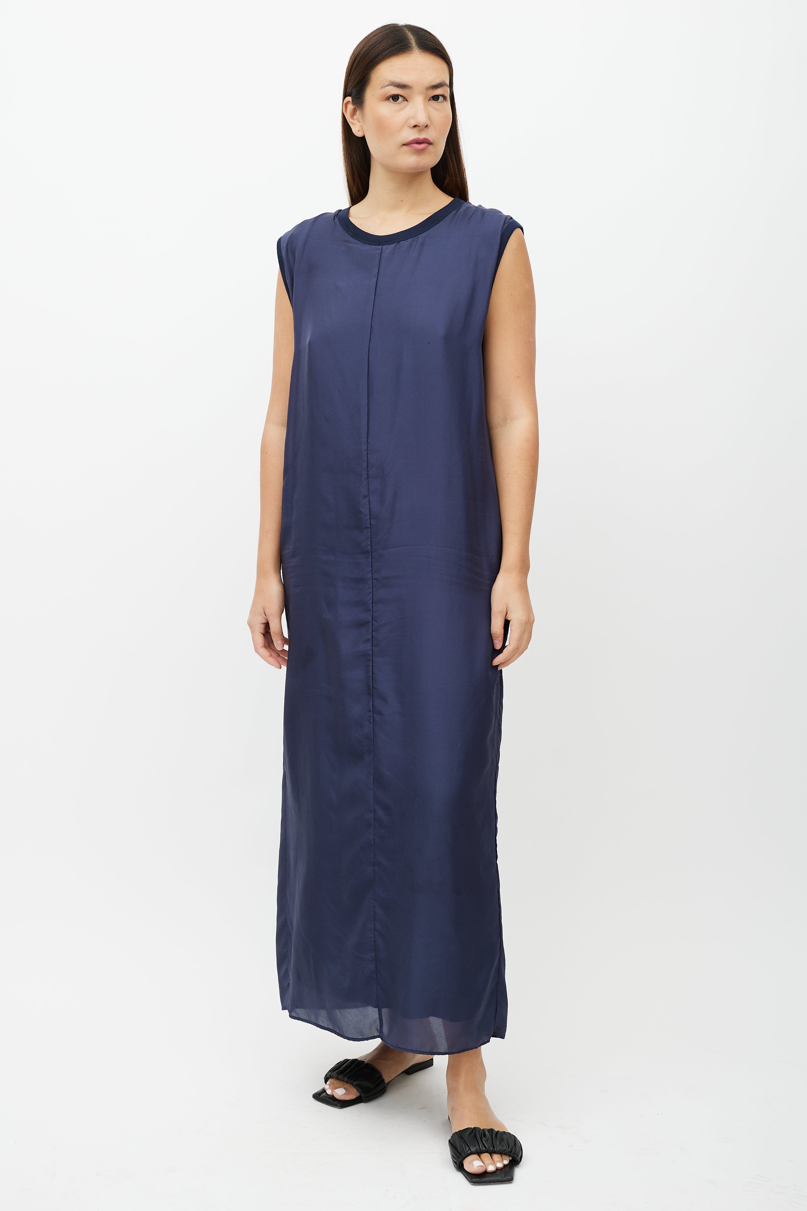 Navy Silk Blend Shift Maxi Dress Large Size Guide