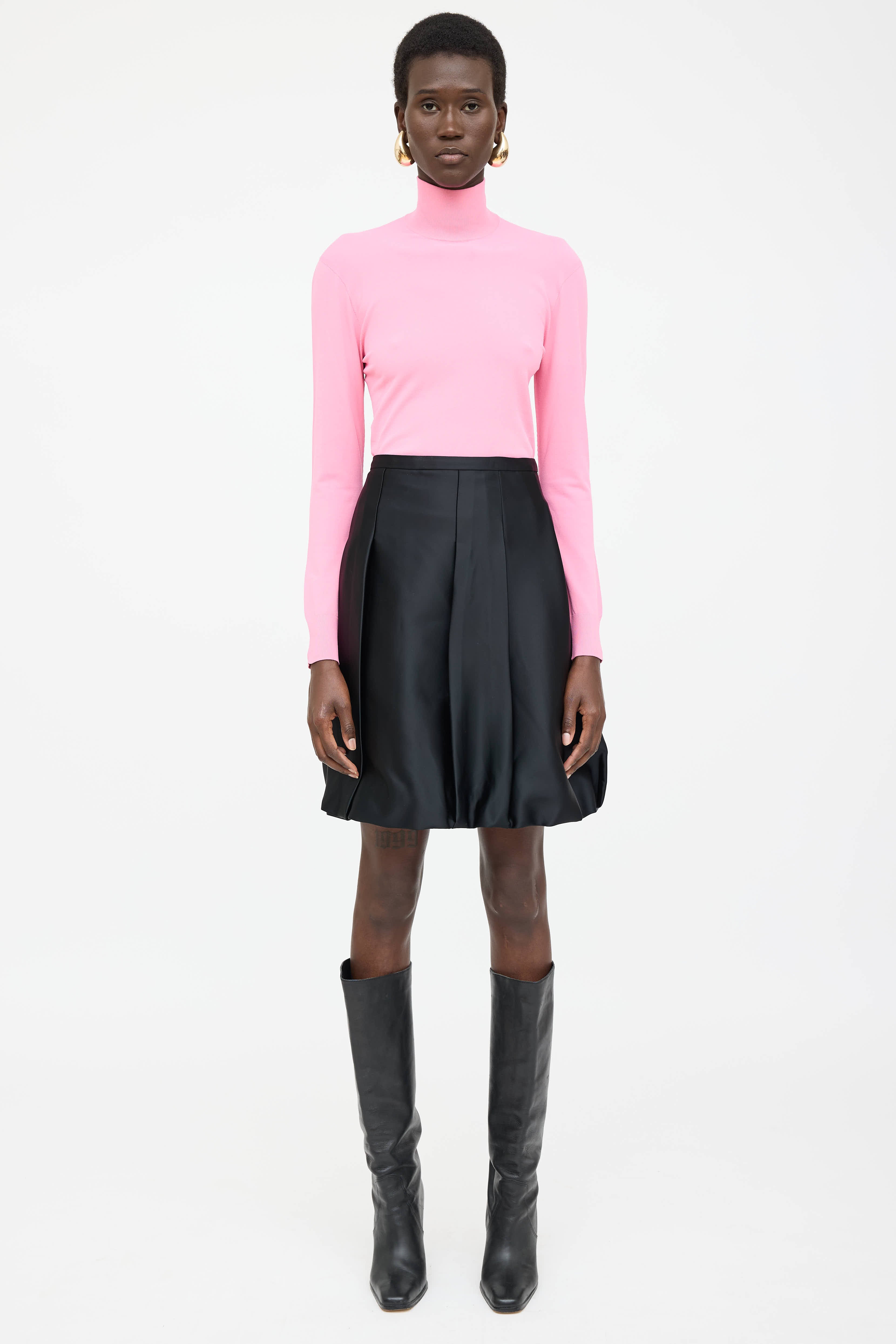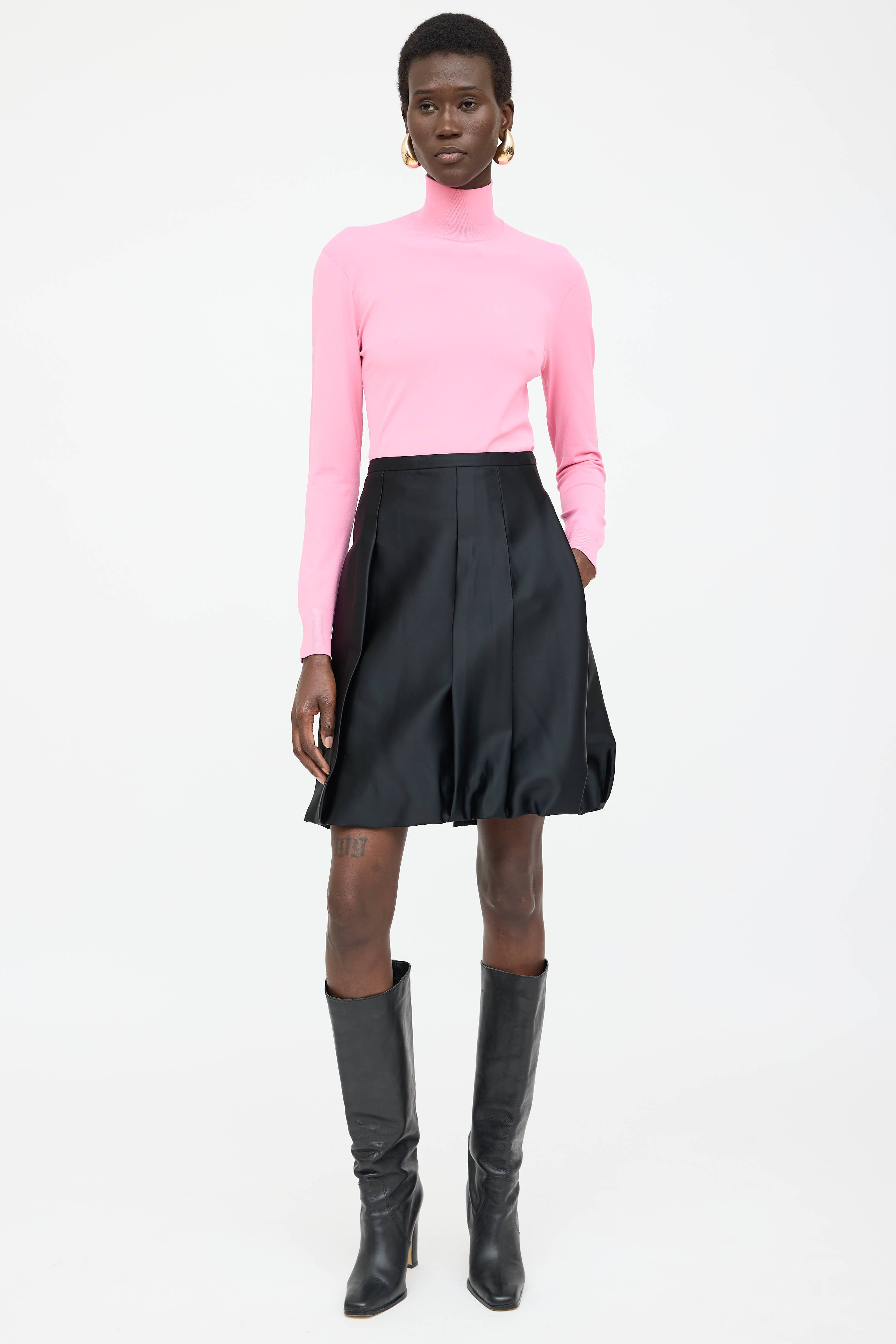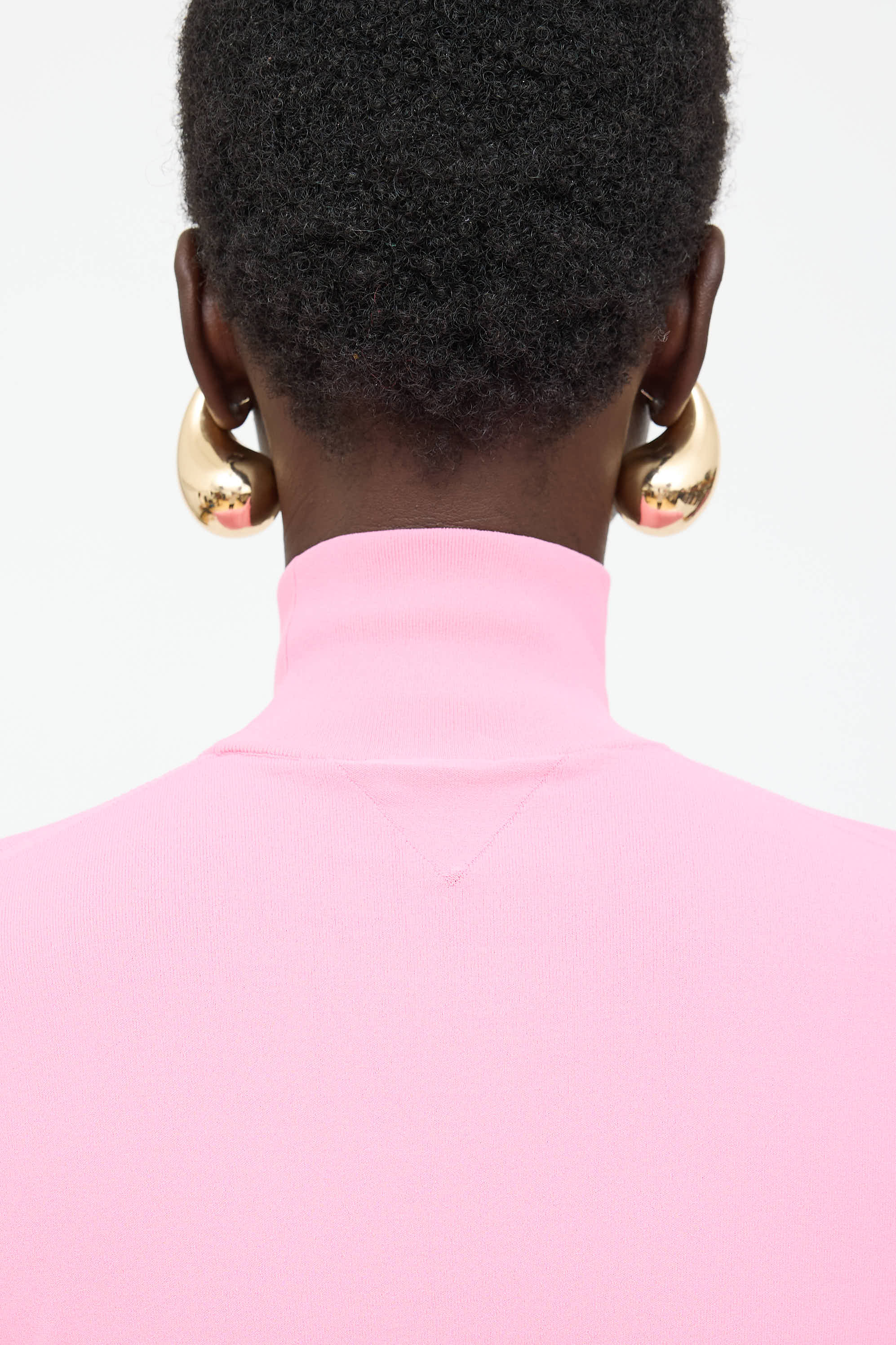 Bottega Veneta Pre Fall 2020 pink Technoskin knit sweater featuring a turtleneck, long sleeves, and ribbed hem.
