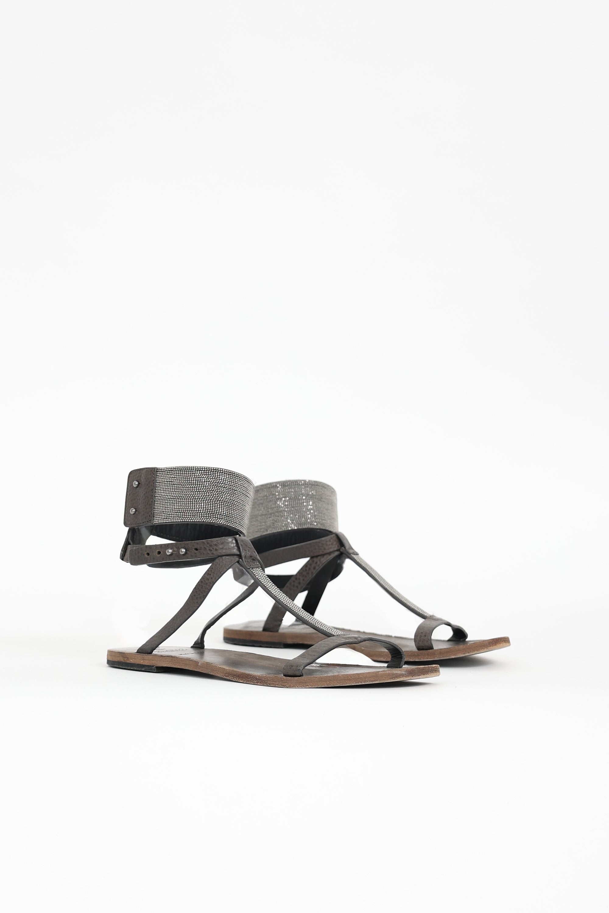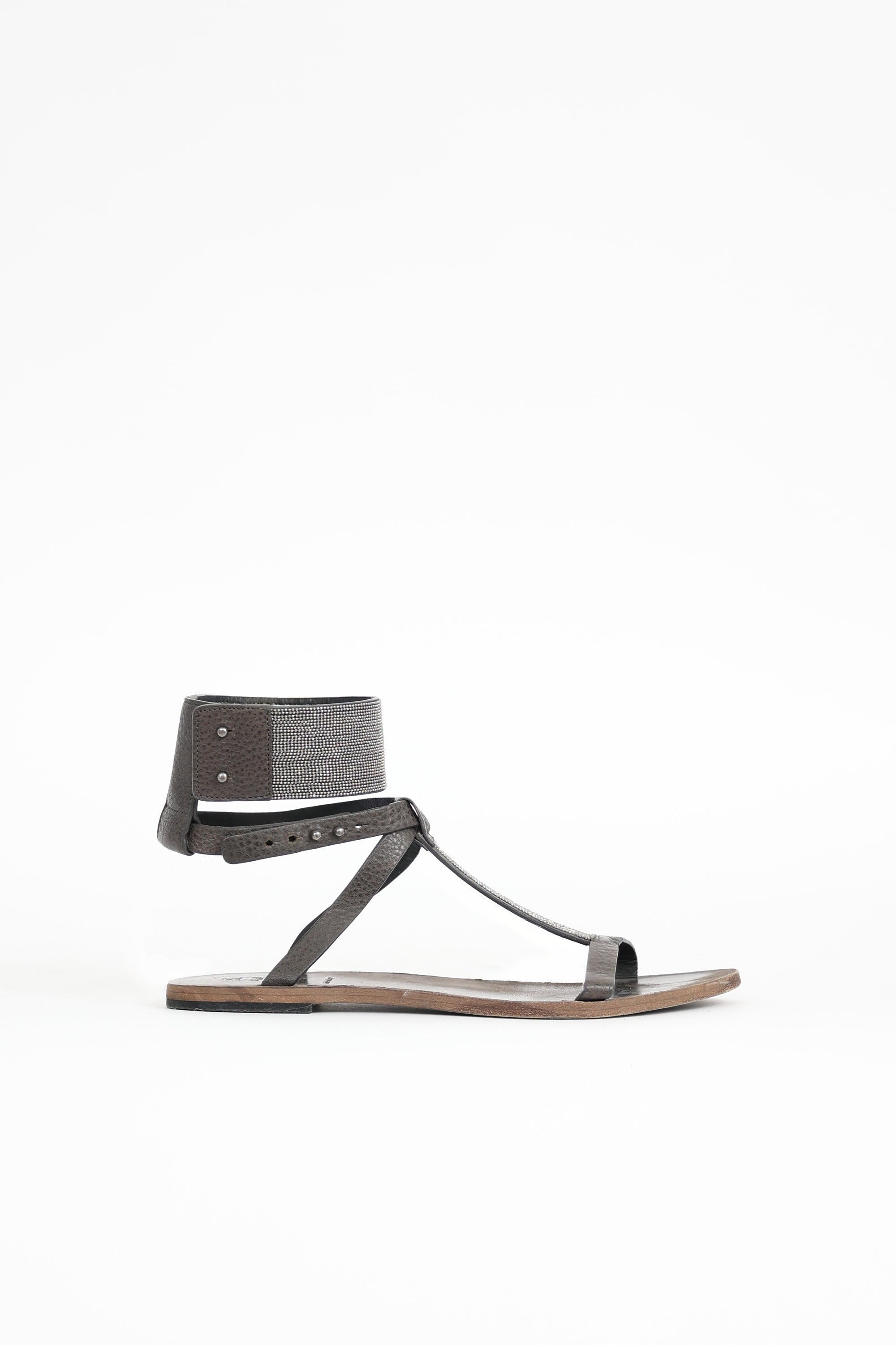 Brunello Cucinelli Leather Monili T-Strap Sandal IT 38