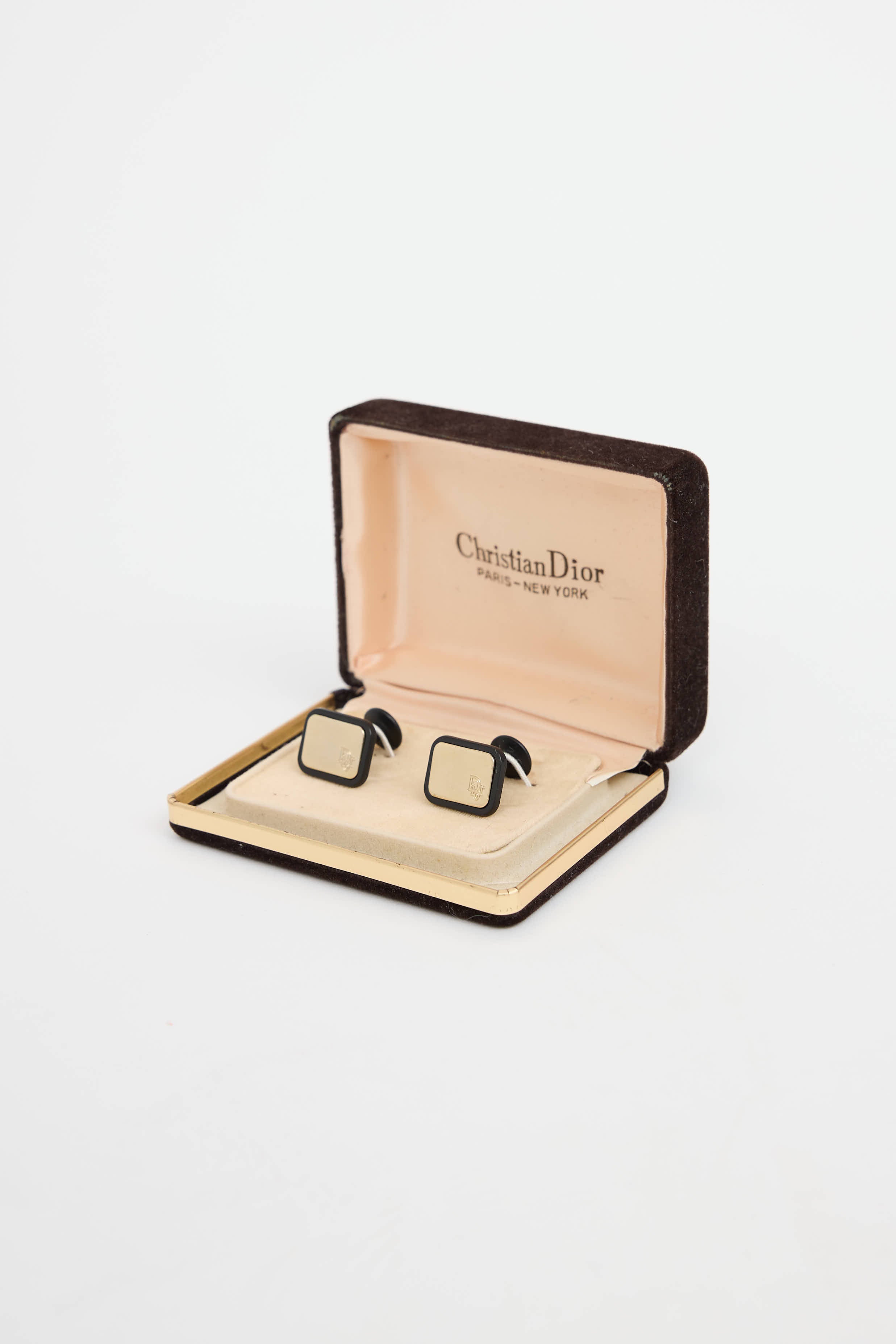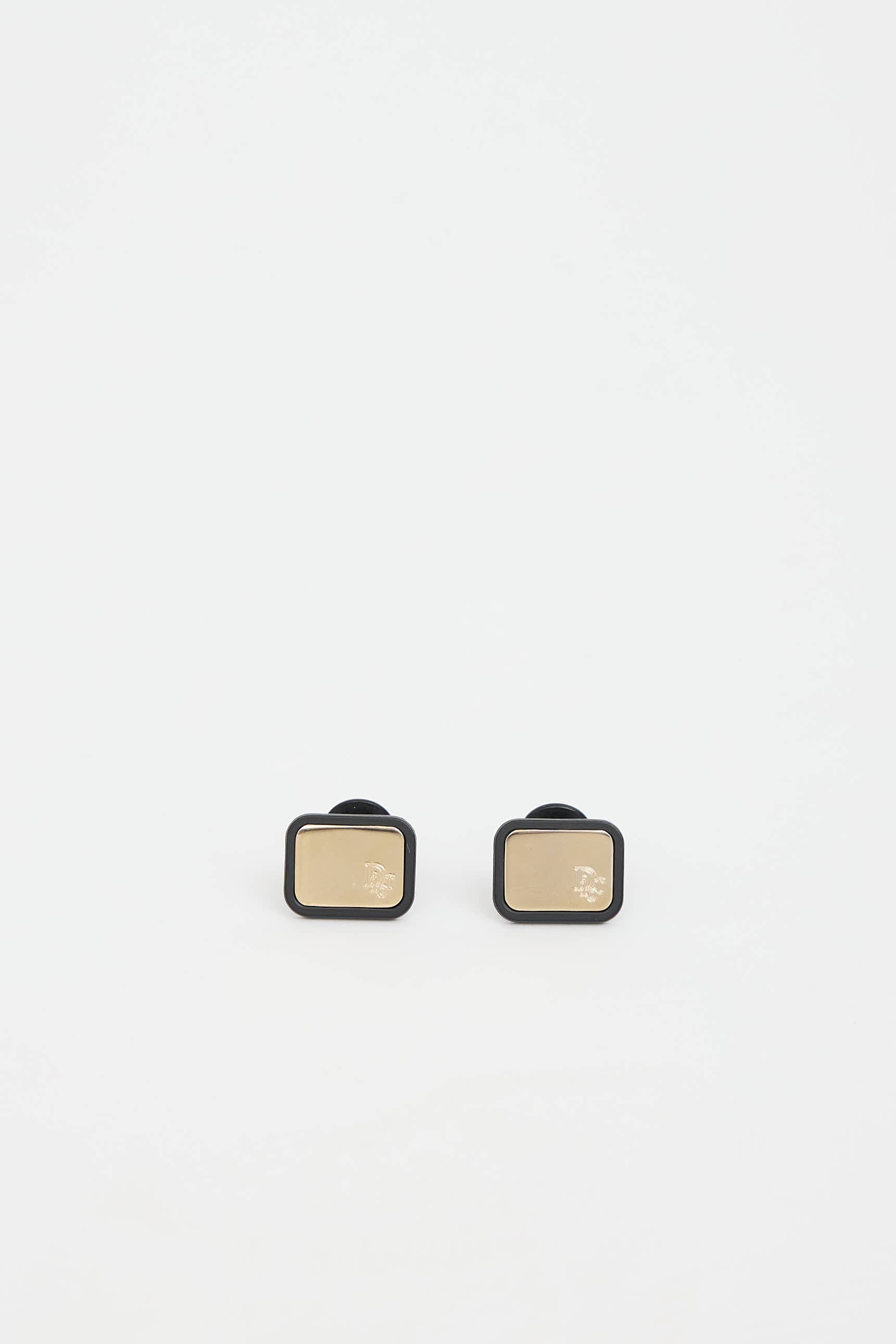 Pre-owned Dior gold and black cufflinks featuring gold tone hardware with stamped logo.