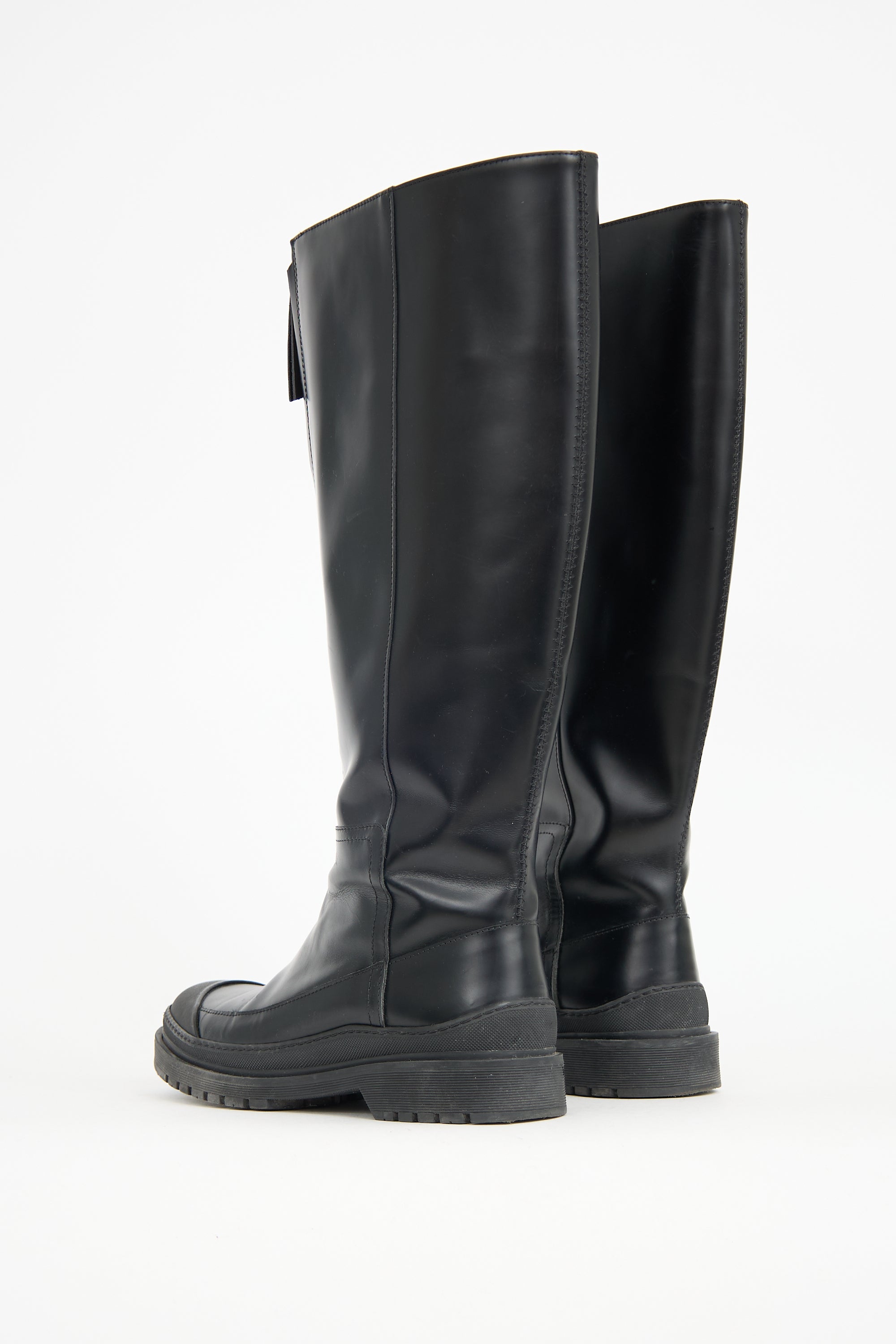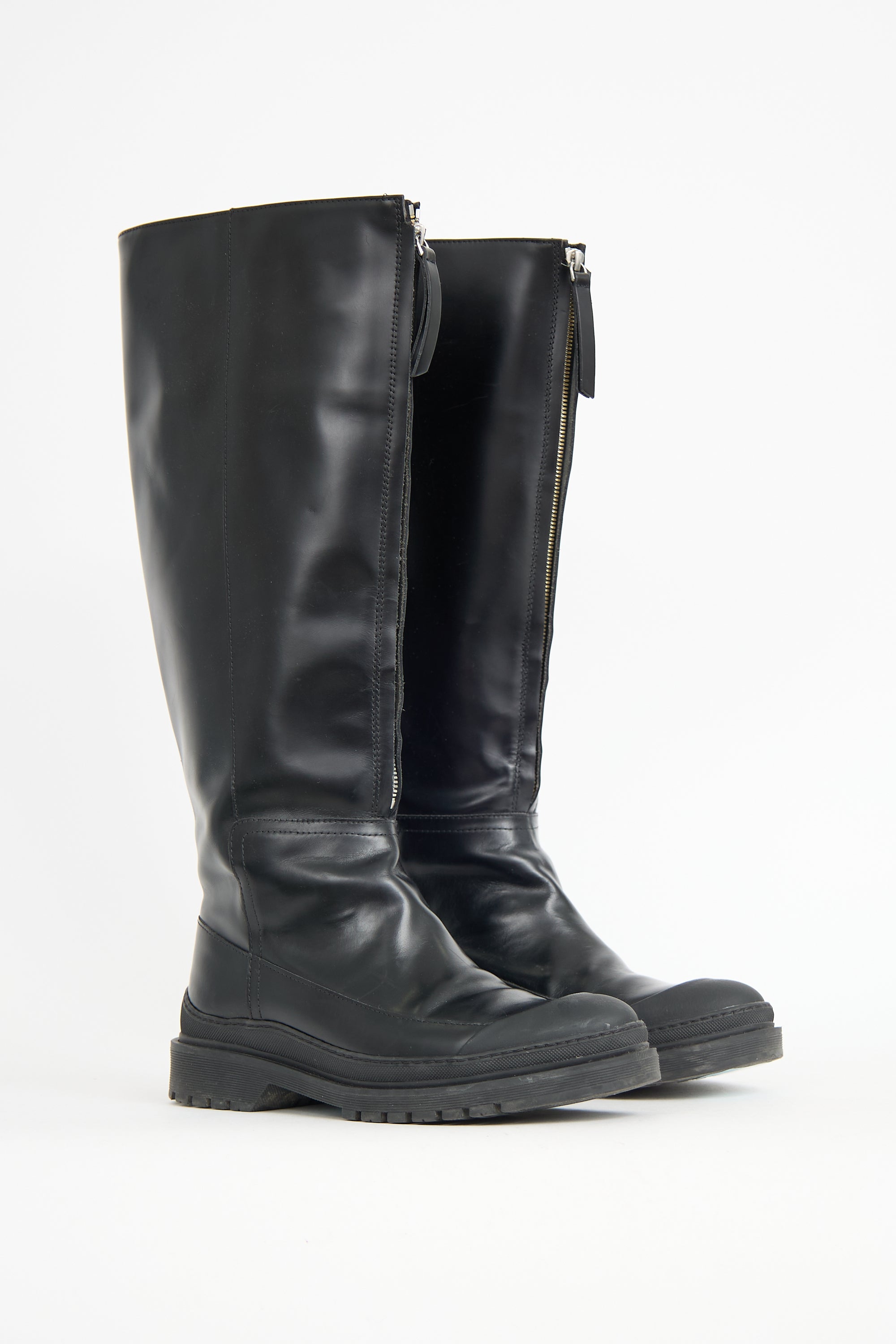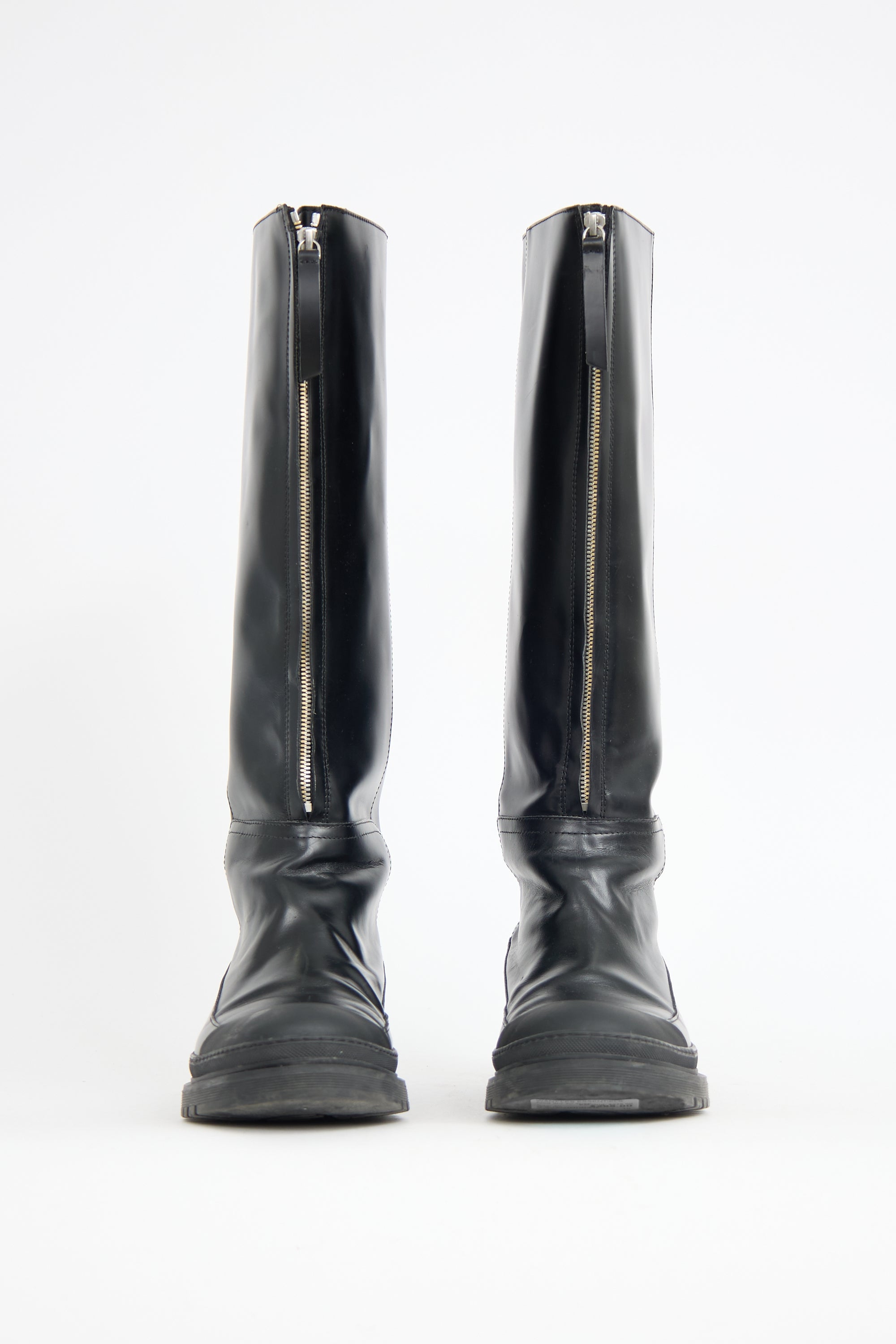 Pre-owned Want Les Essentiels black leather Velasca Tall boot featuring a rounded toe with rubber cap, front shaft zip closure, and a treaded rubber sole.