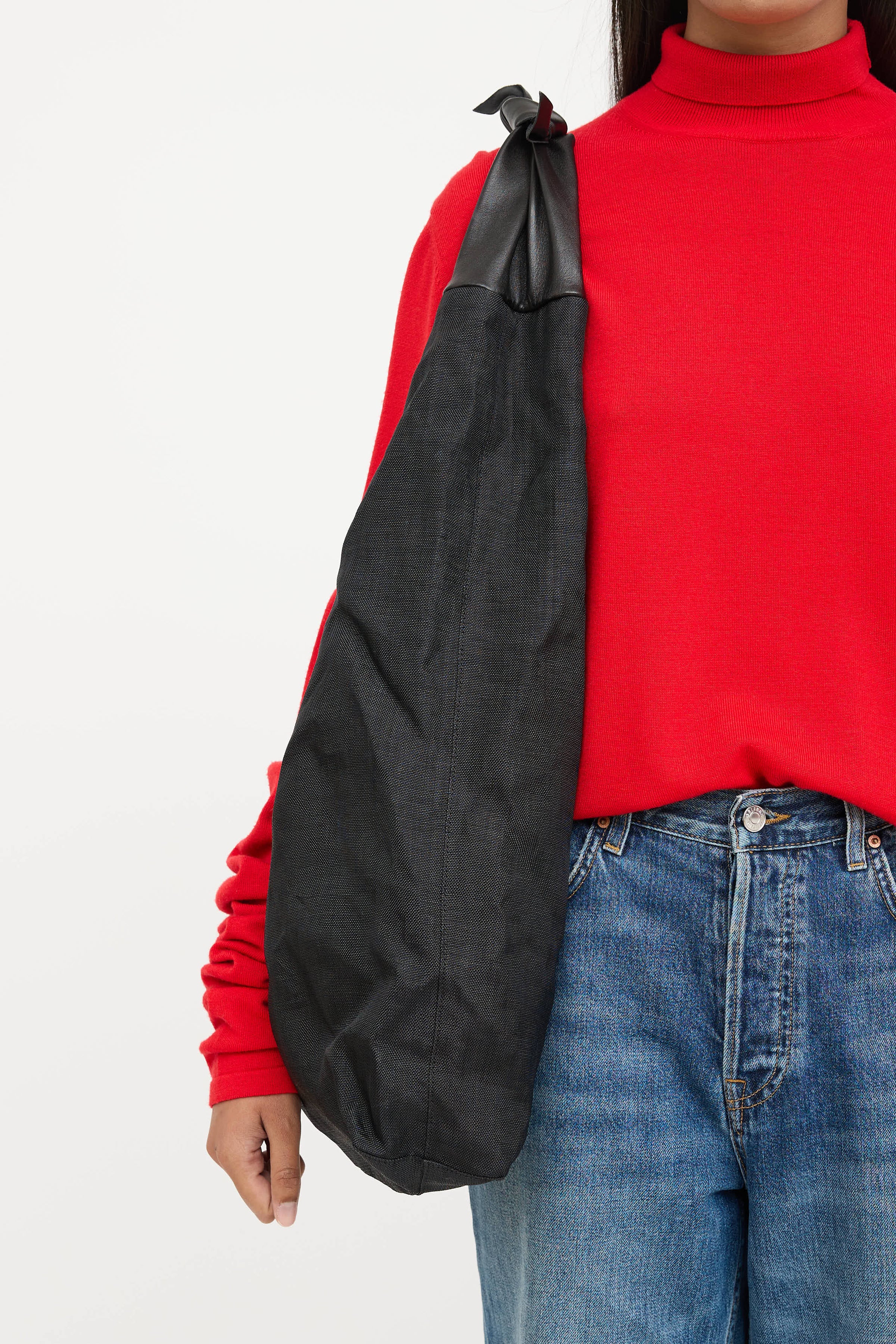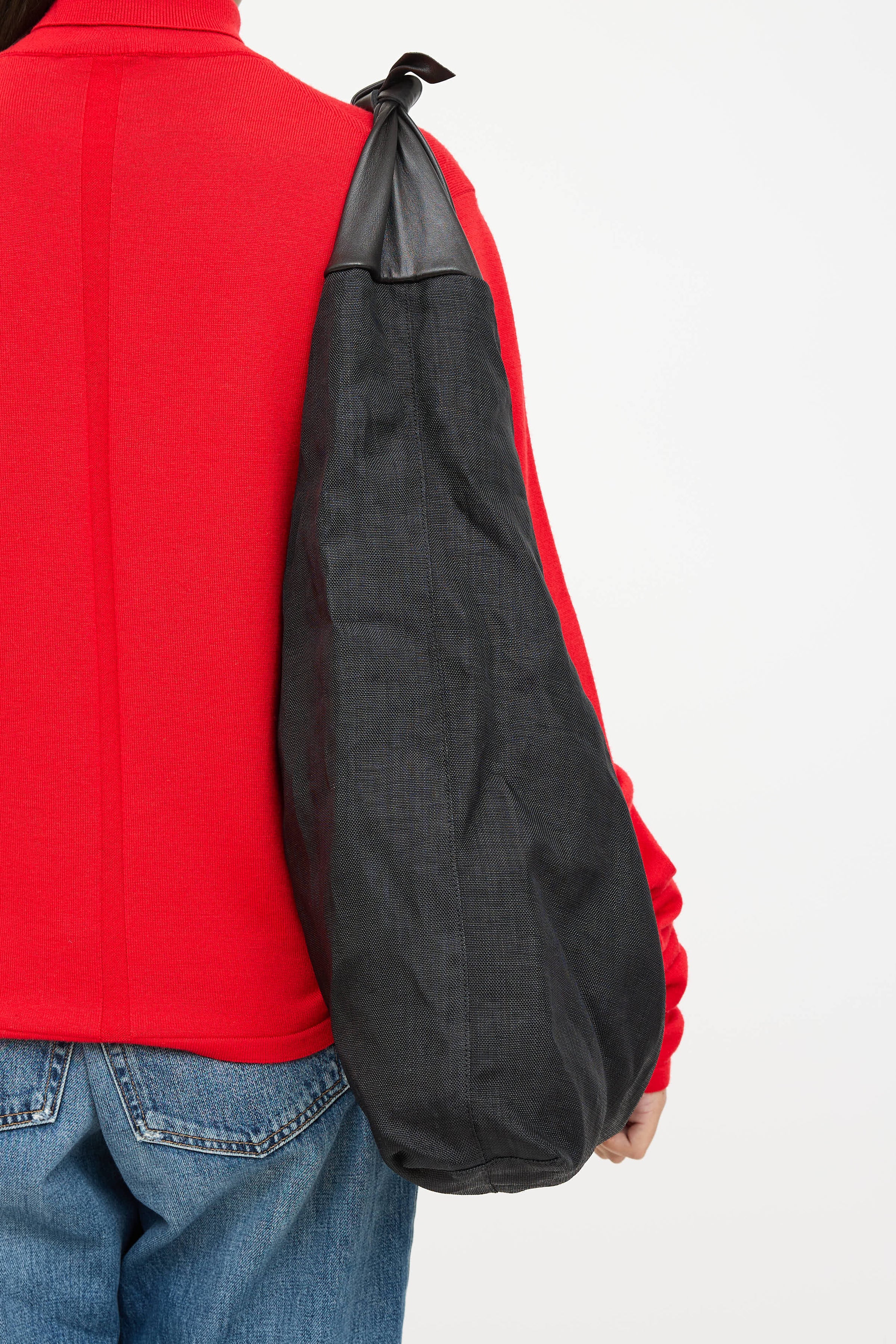 Pre-owned The Row black Bindle woven bag featuring a knotted leather shoulder strap and one main compartment with one zip pocket. Includes original dust bag.