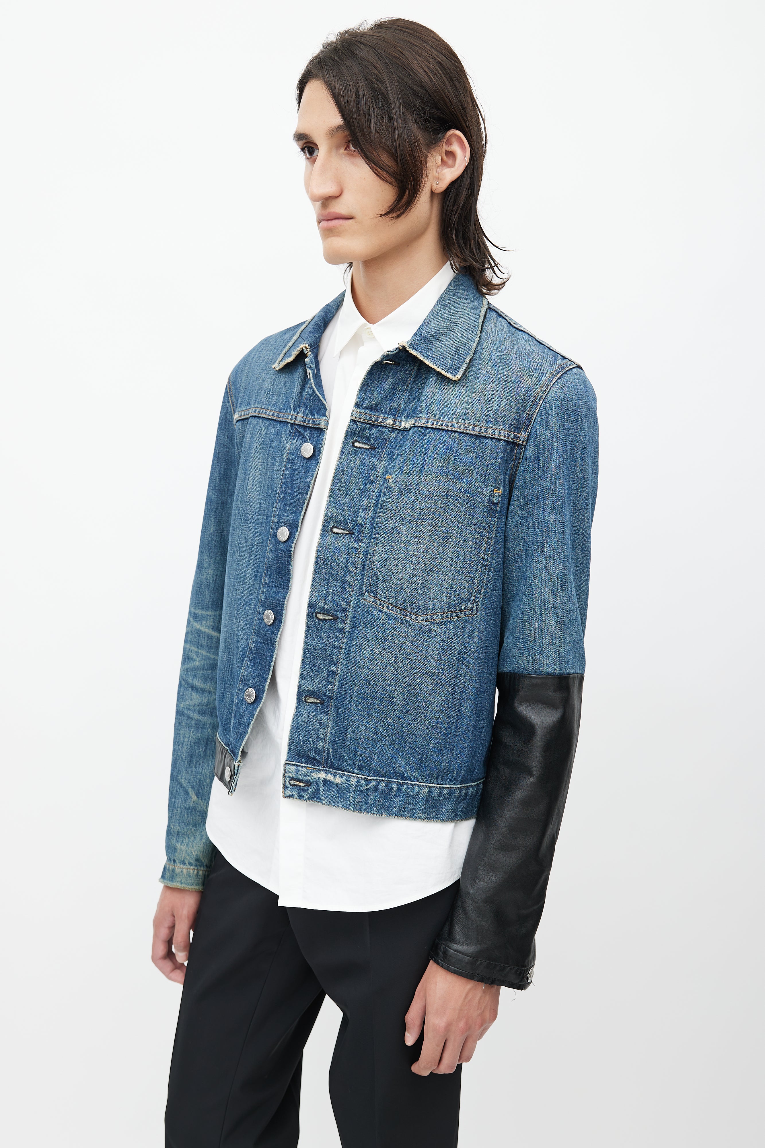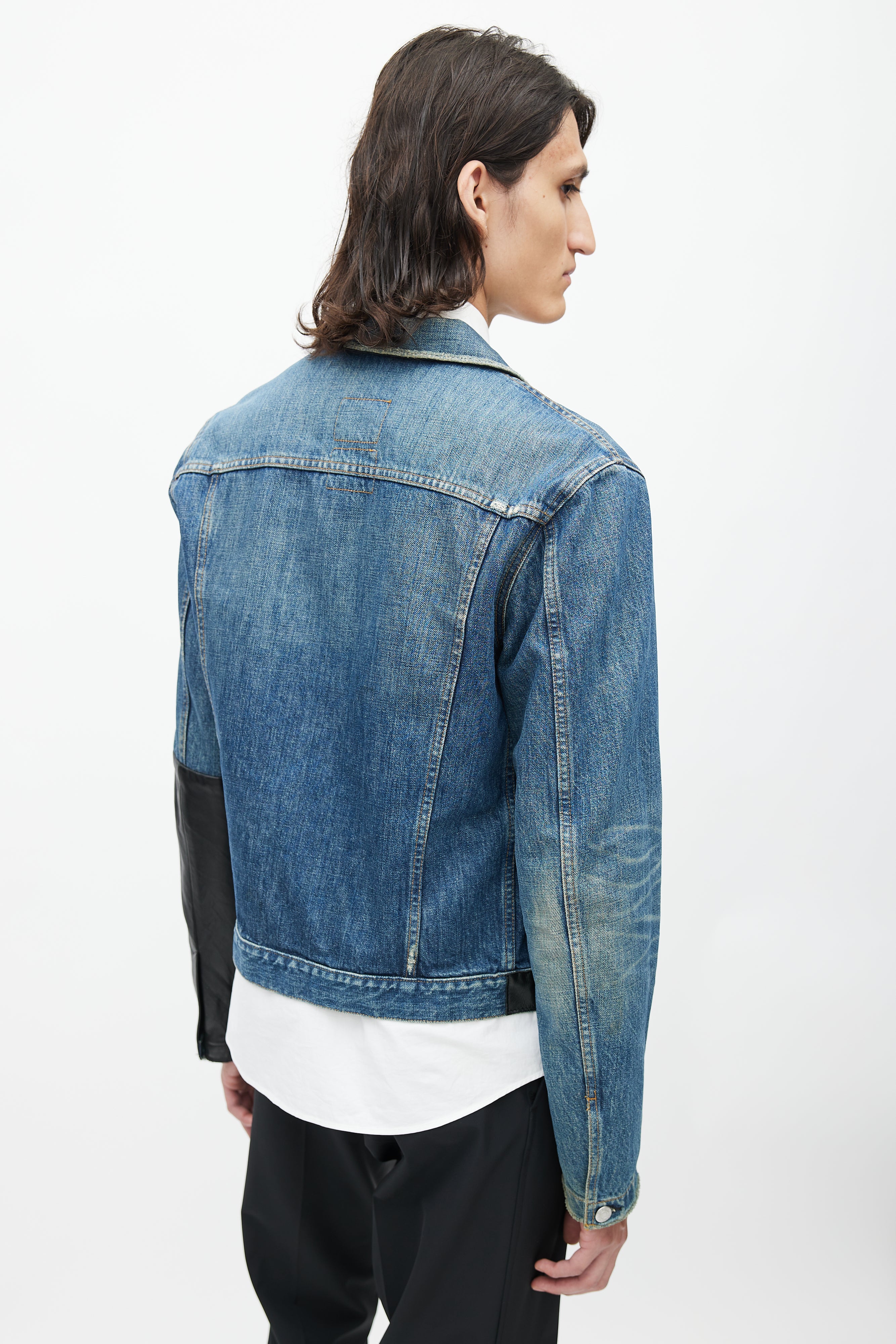 Spring 2003 Blue & Black Leather Denim Jacket IT 48 Size Guide