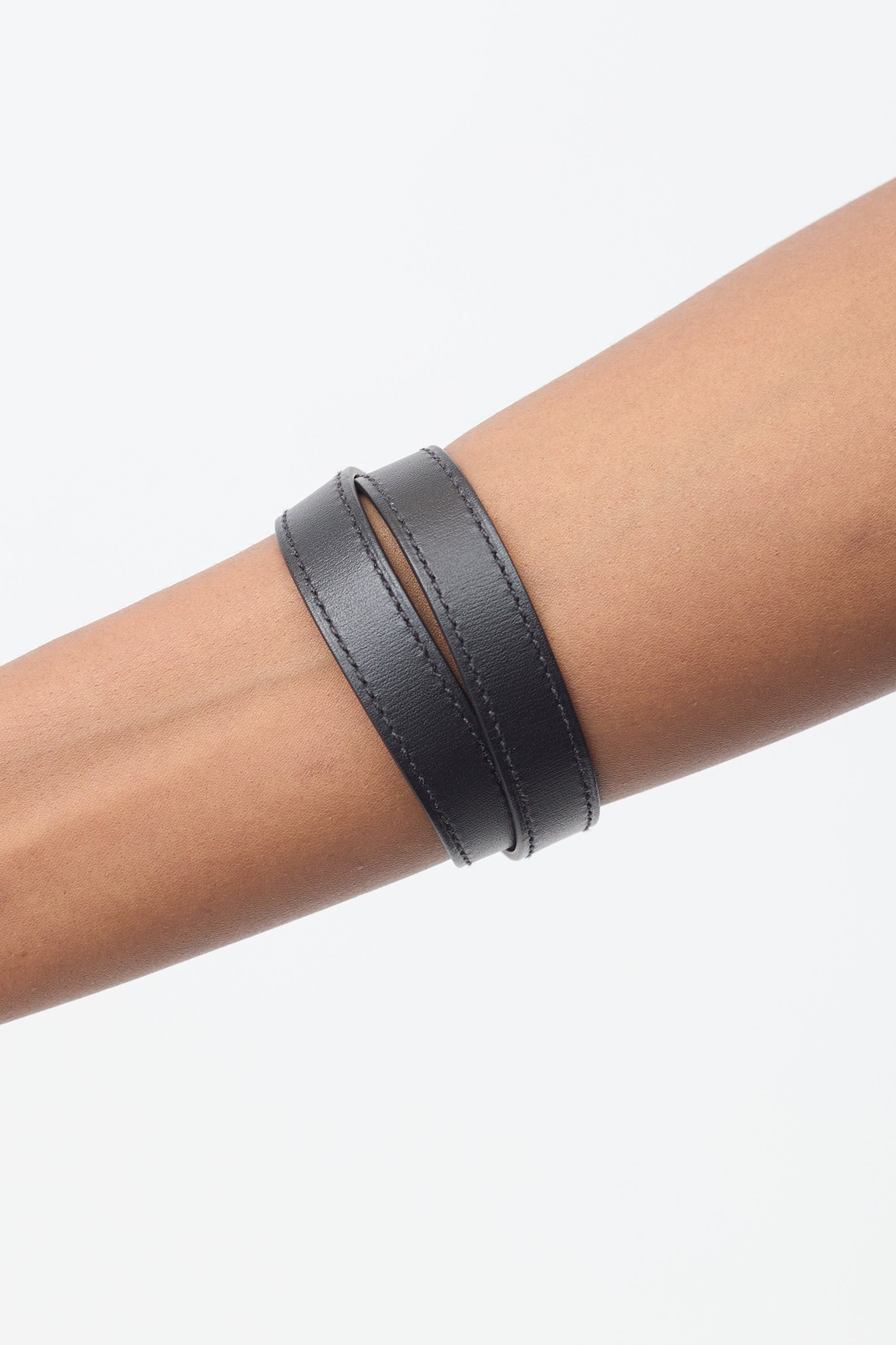 2003 Black & Yellow Gold Leather Kelly Double Tour Bracelet