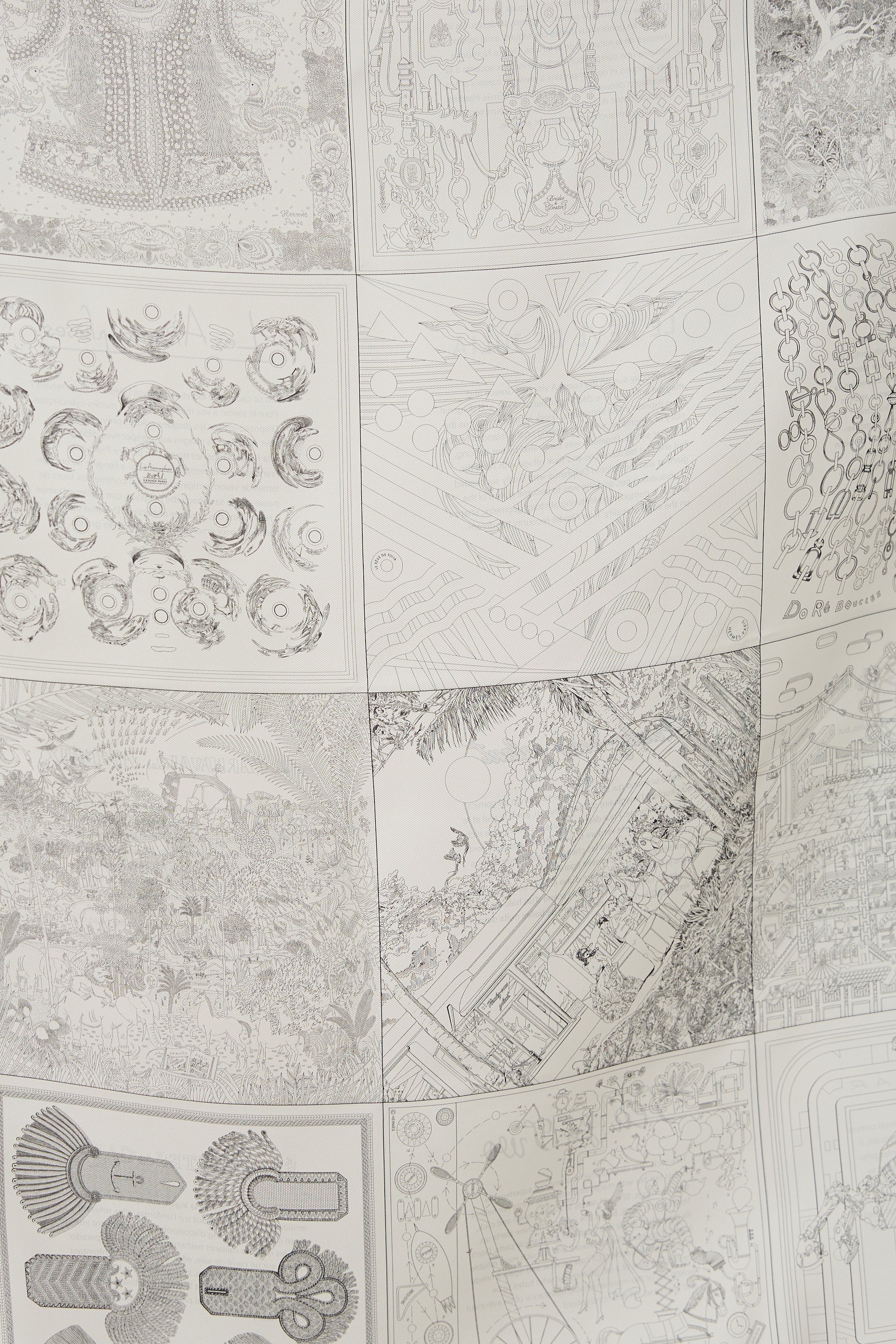 Pre-owned Hermès grey silk 2023 Special Edition 16 Carrés 60 scarf featuring 16 double-sided scarf and label prints and hand rolled trim. Comes with original box.