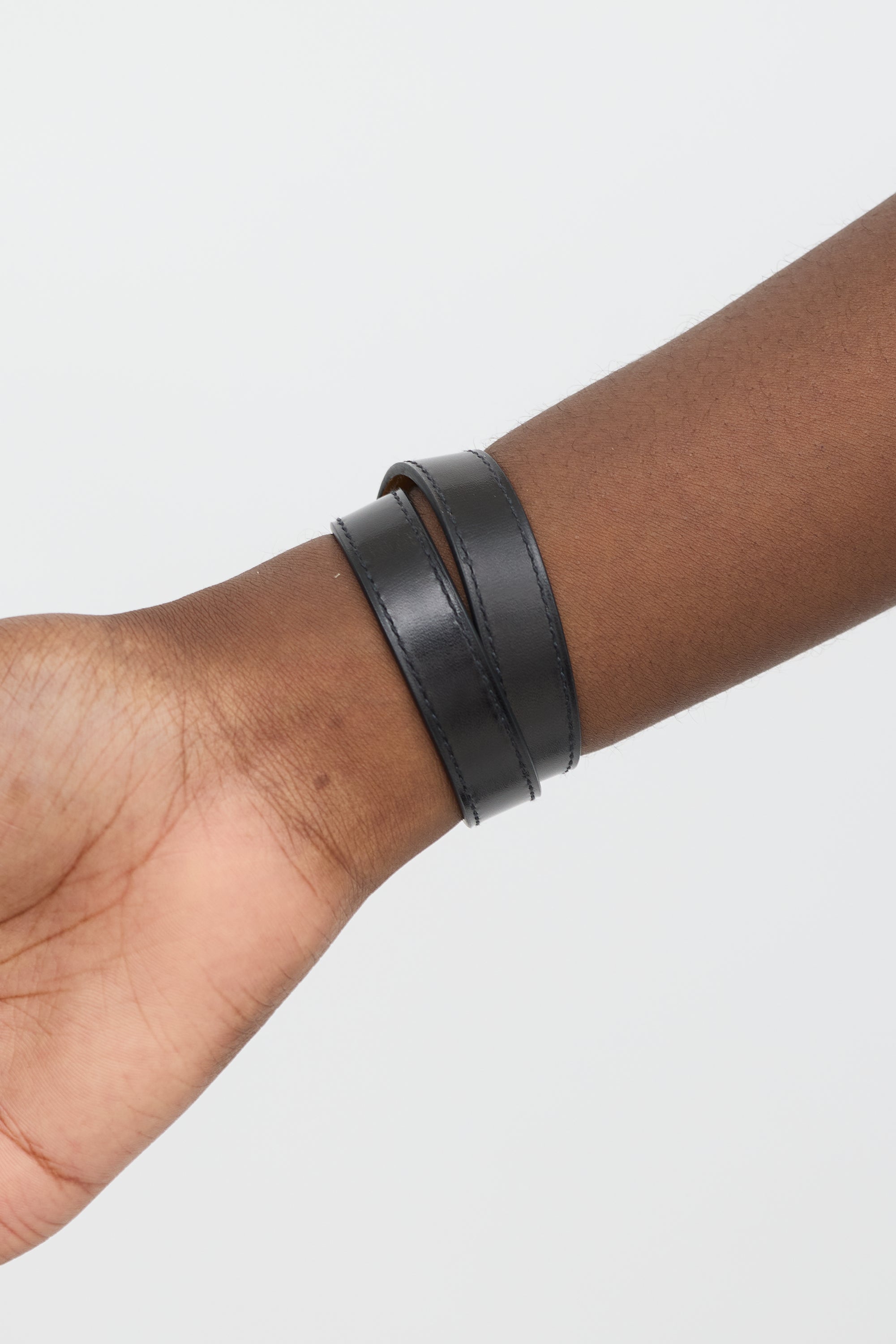 Black & Yellow Gold Leather Kelly Double Tour Bracelet