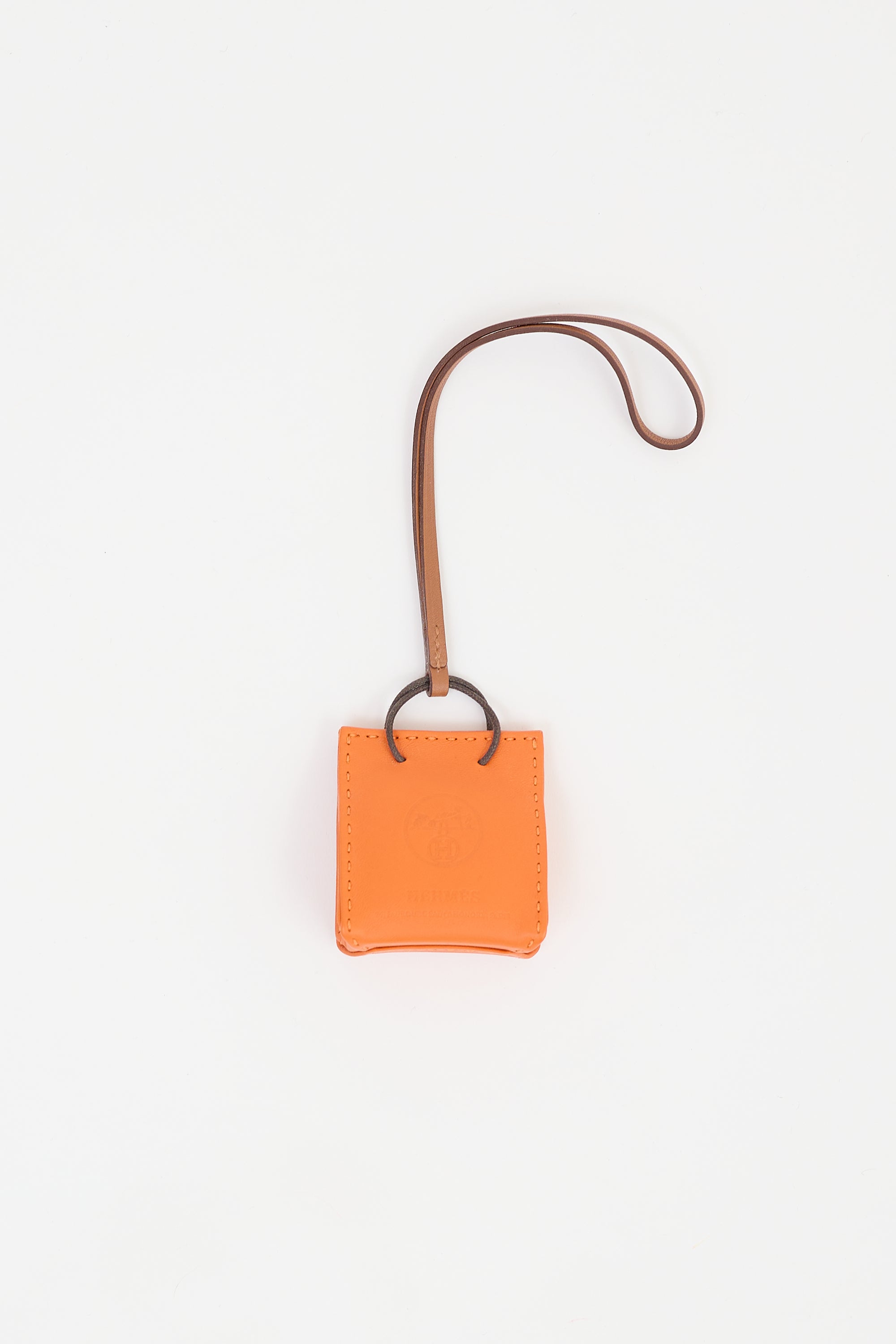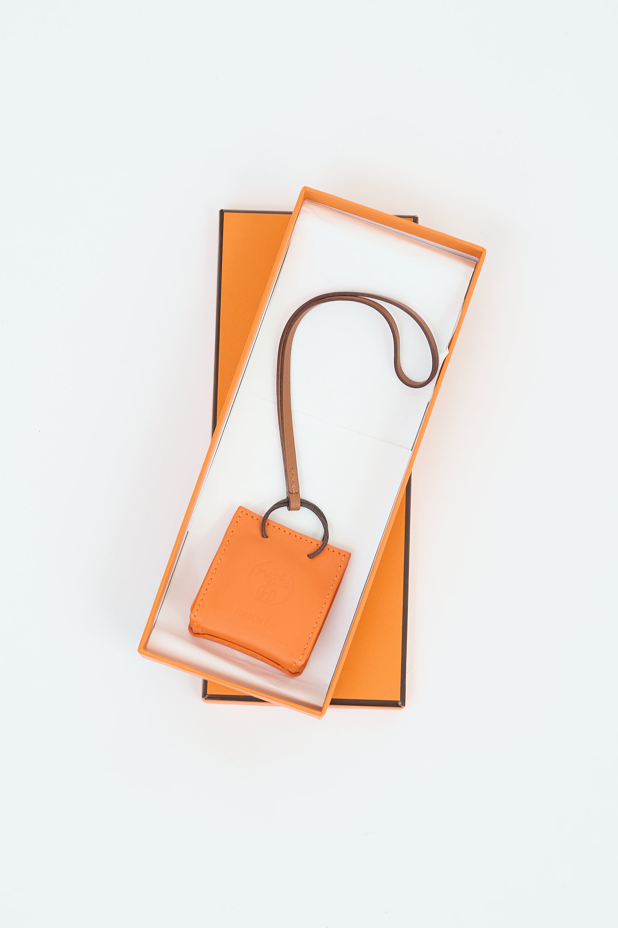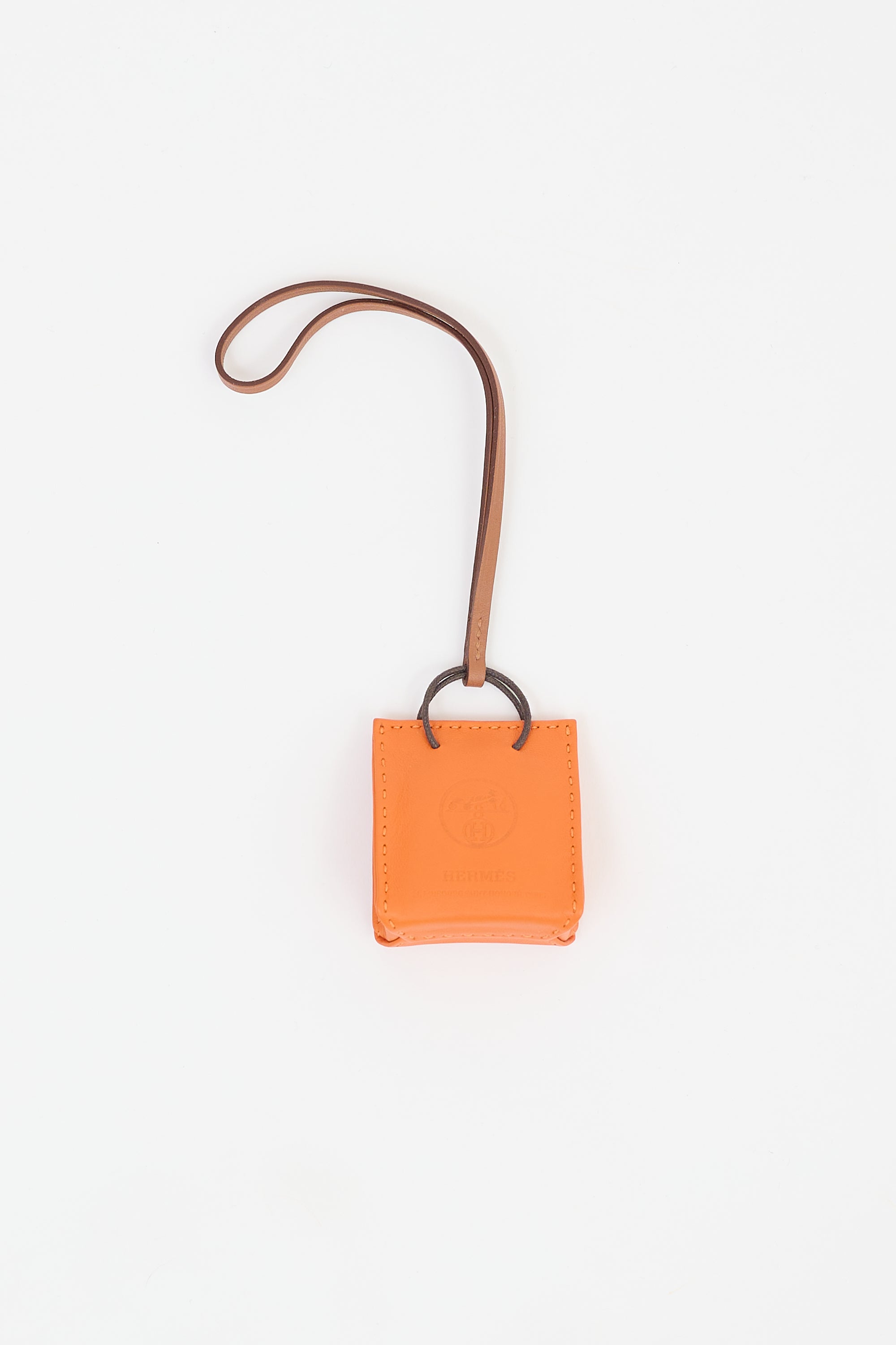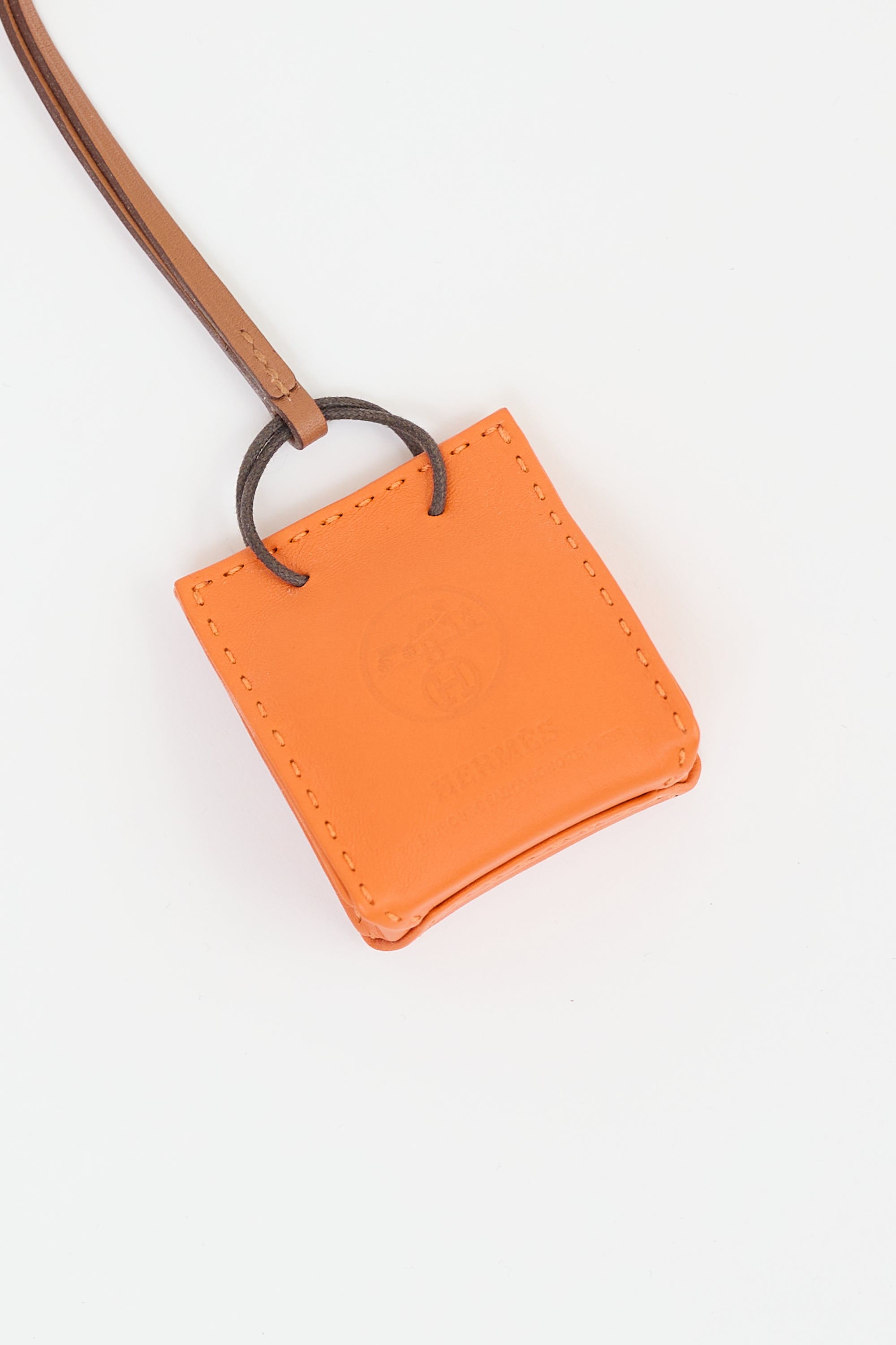 Pre-owned Hermès Feu Milo Shopping Bag charm featuring "Ex-Libris" hot stamped at front and back and Swift calfskin strap in brown. Comes with original box.