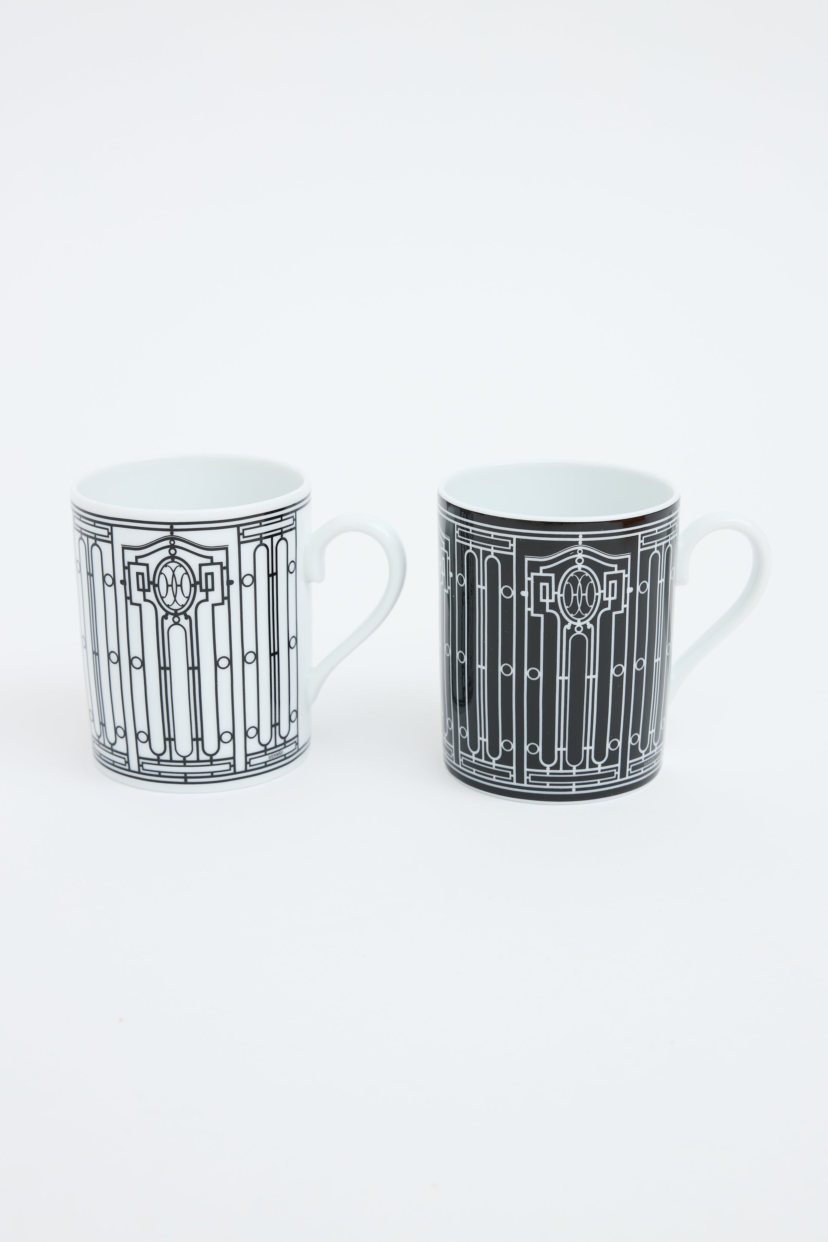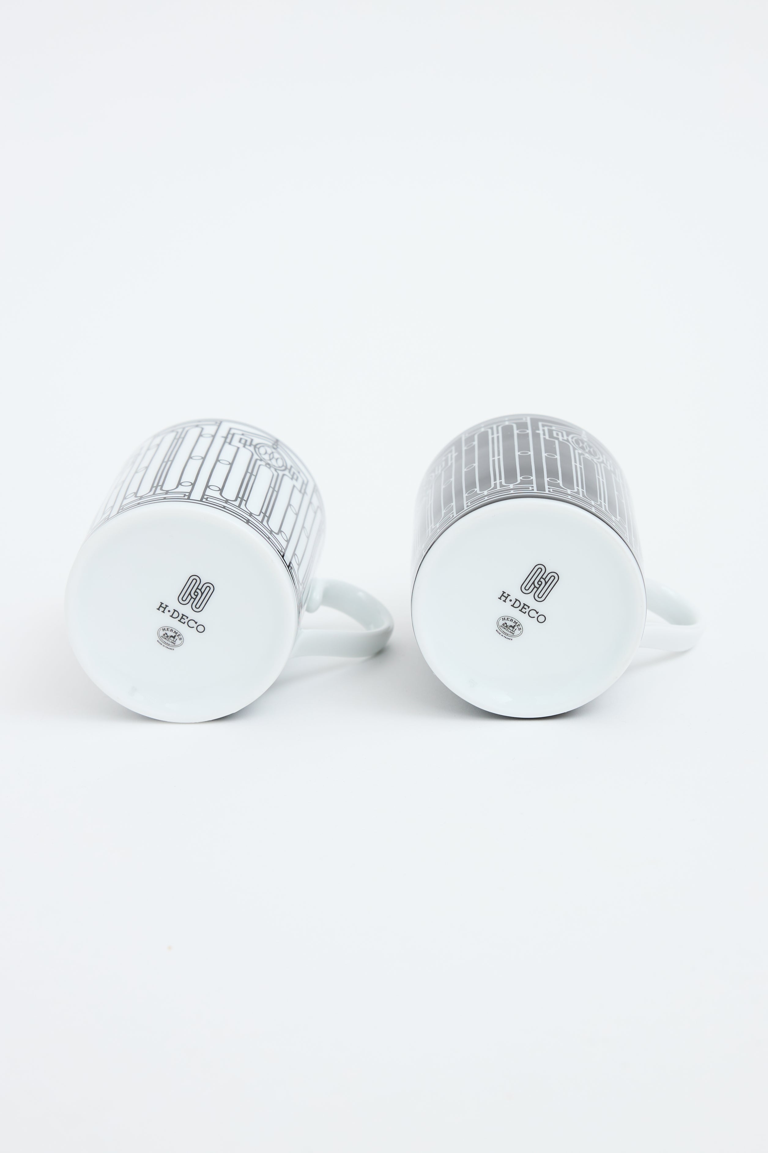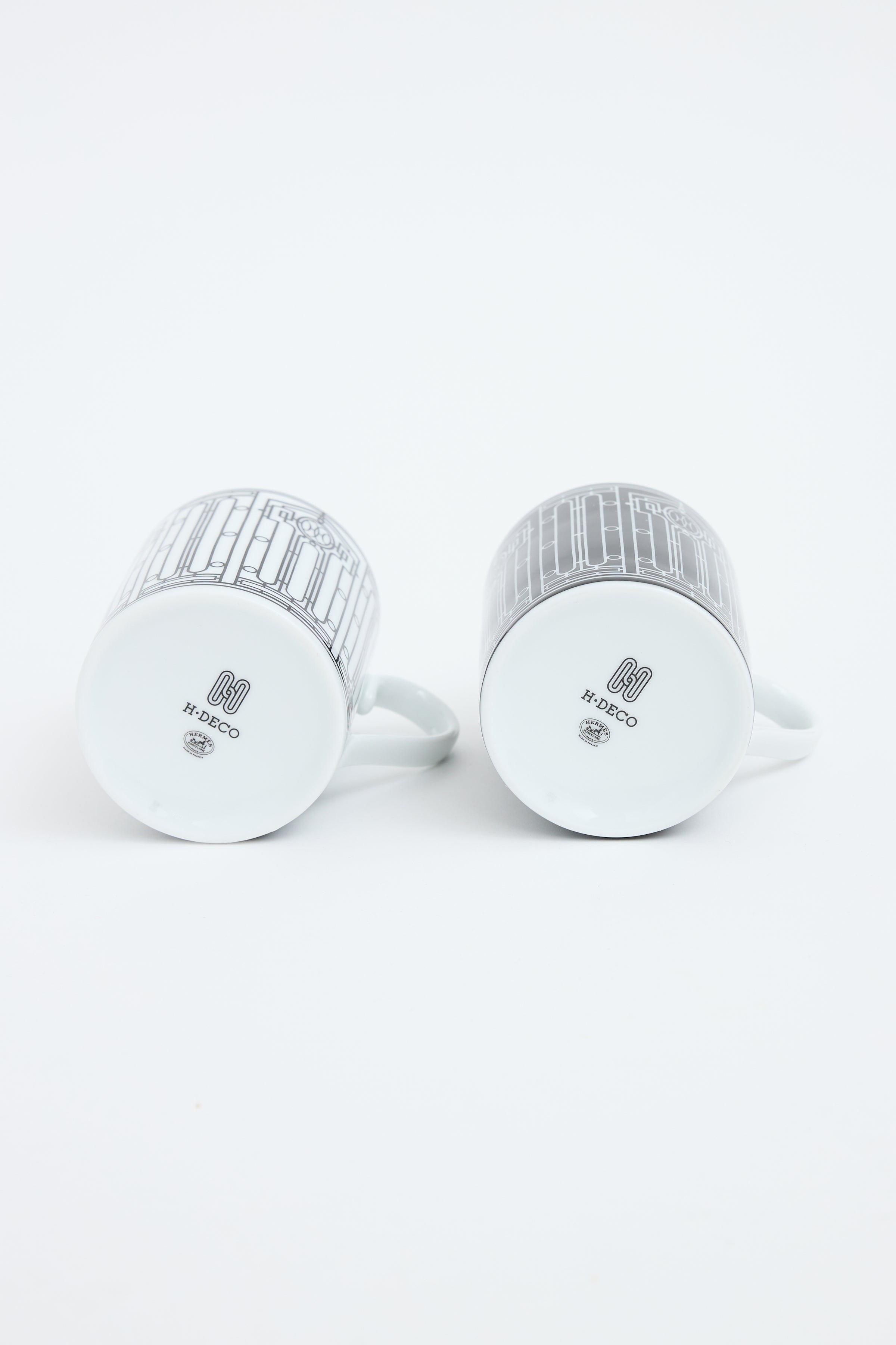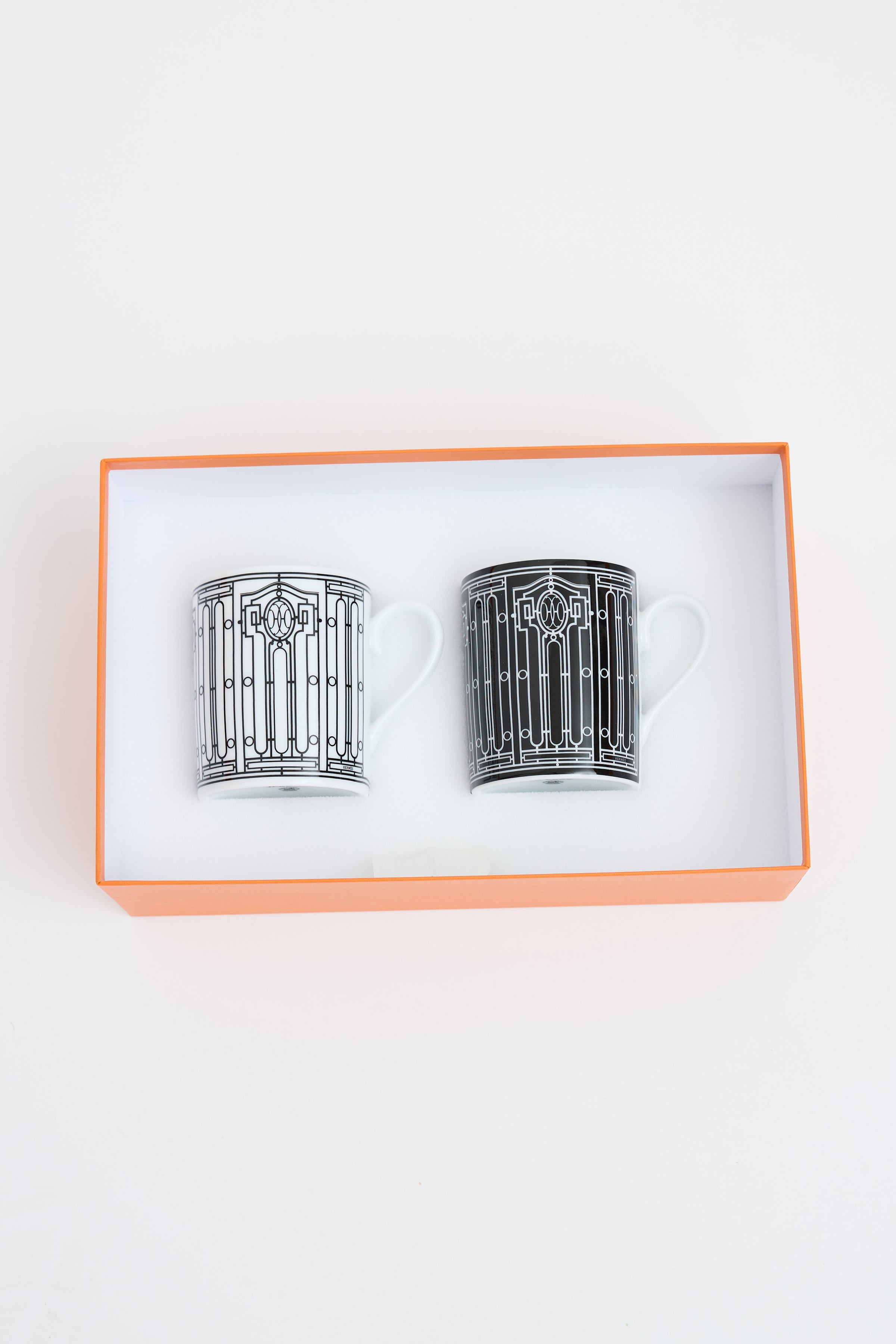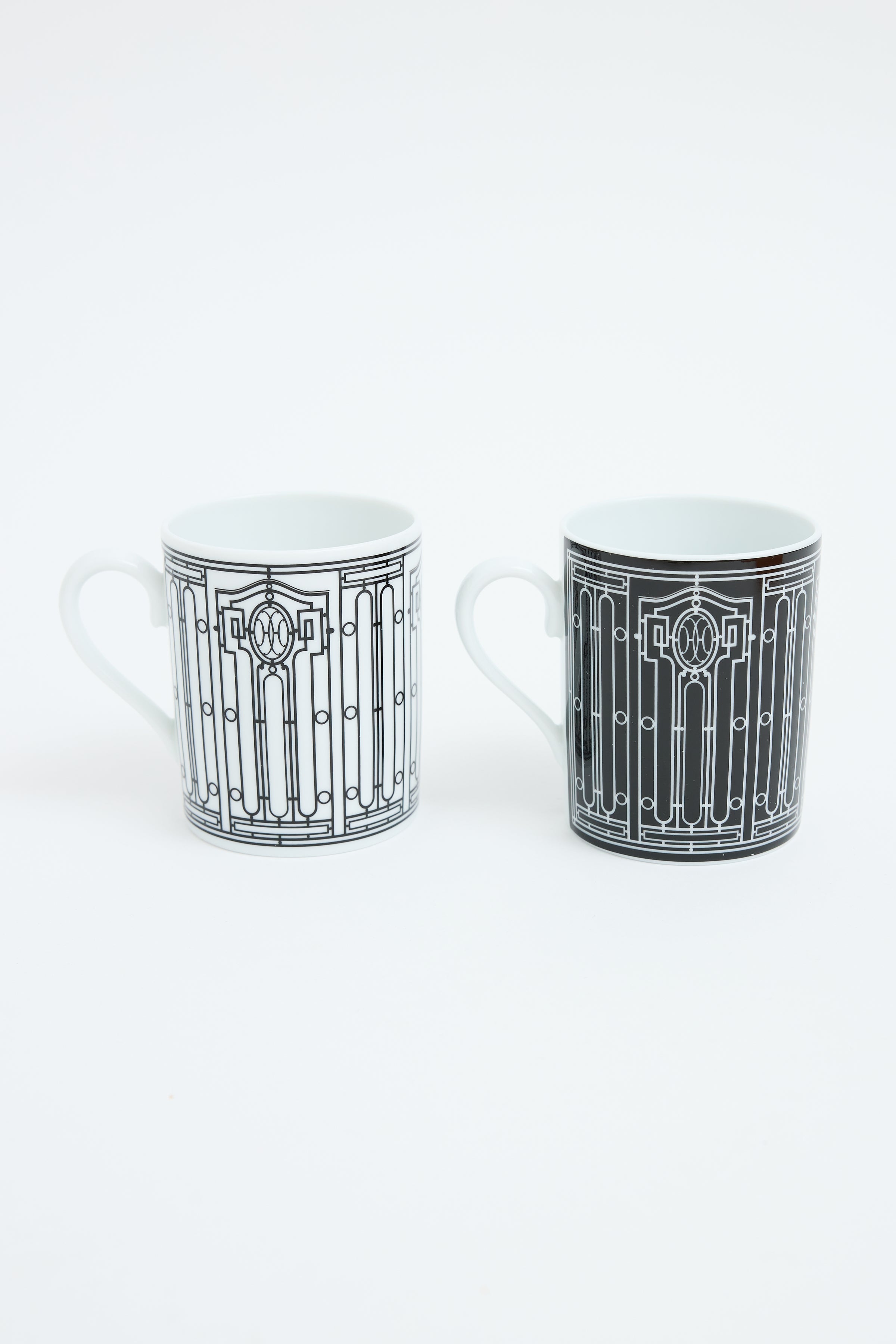Pre-owned Hermès white and black mugs featuring art deco design made of porcelain and stamped with double H initials.