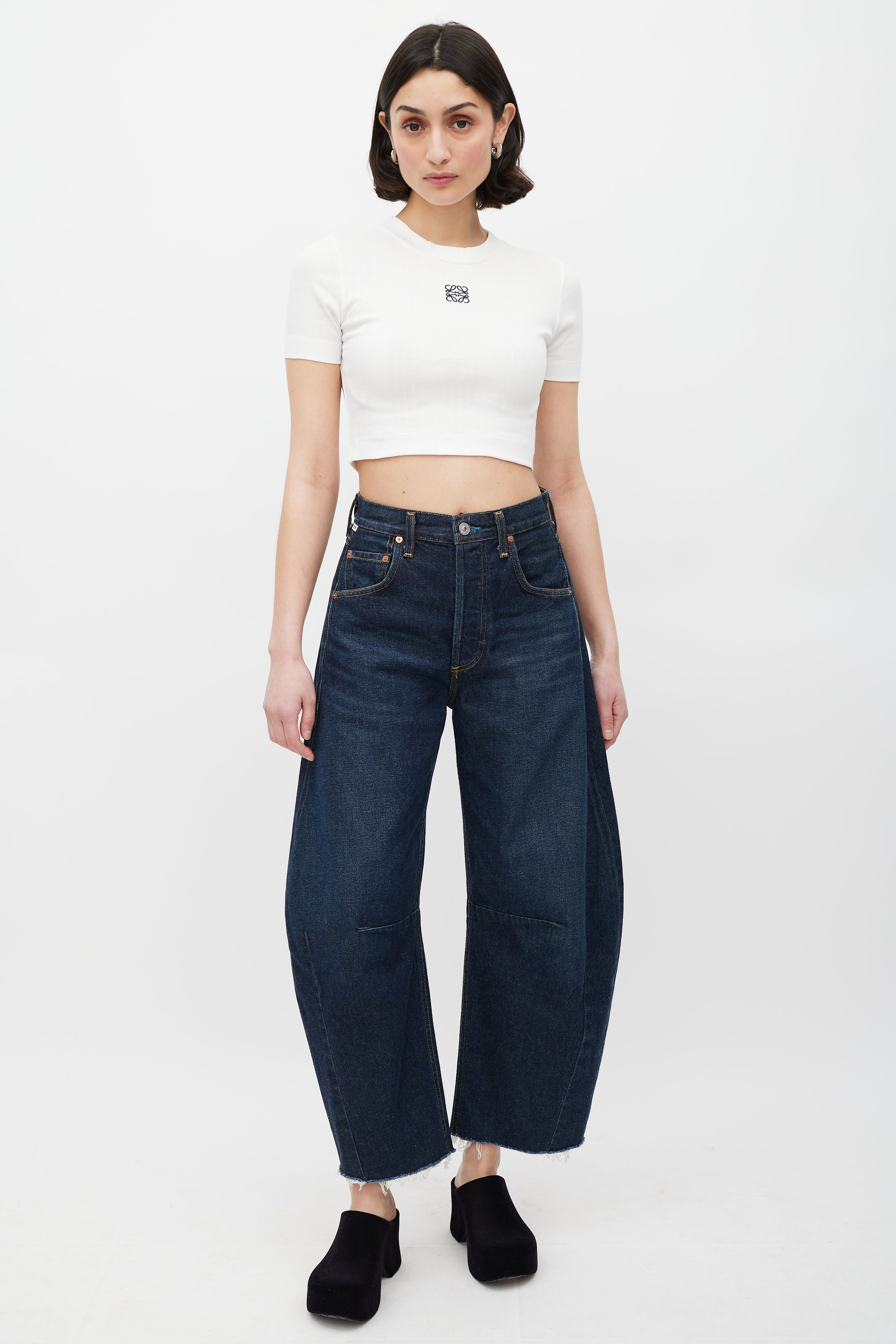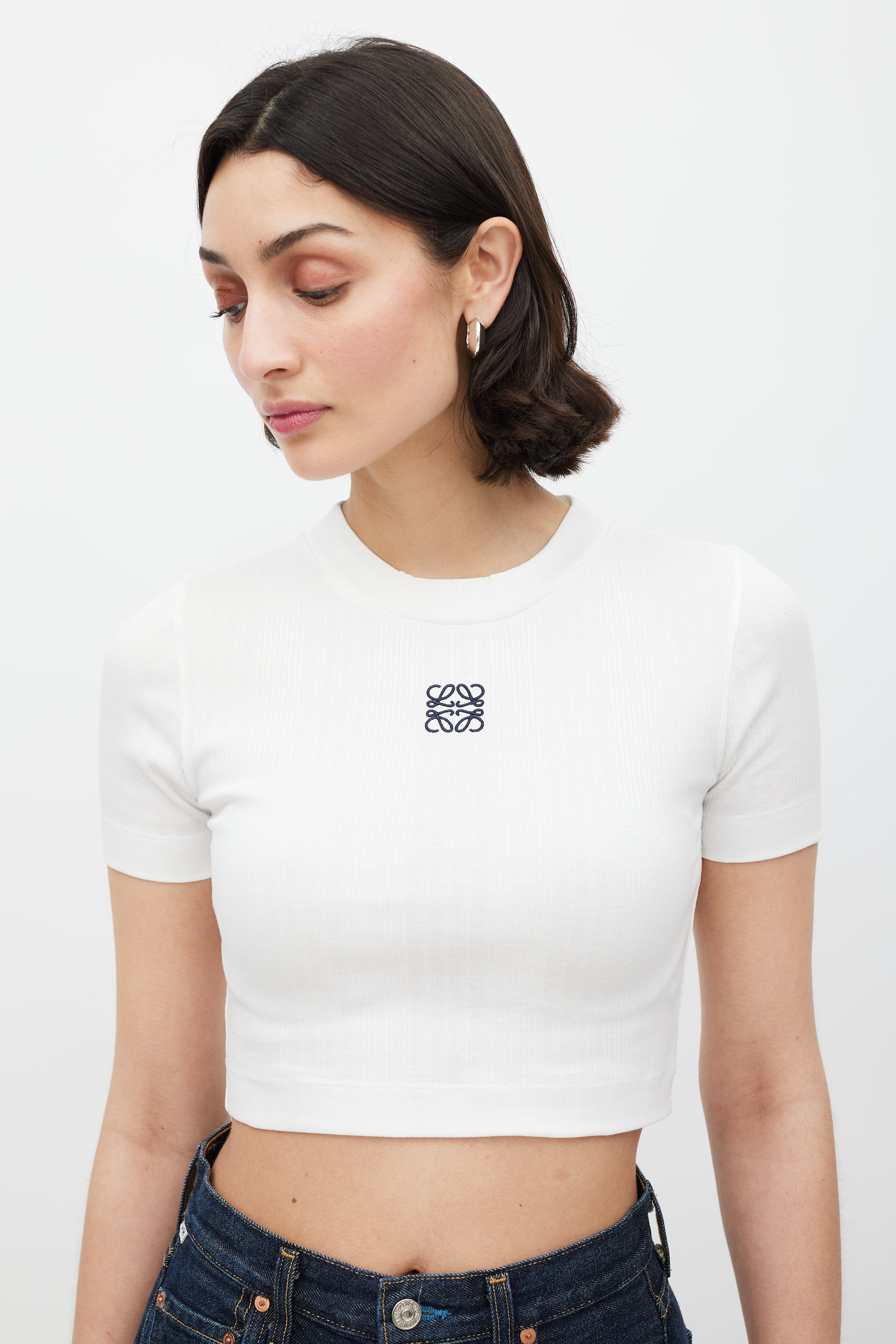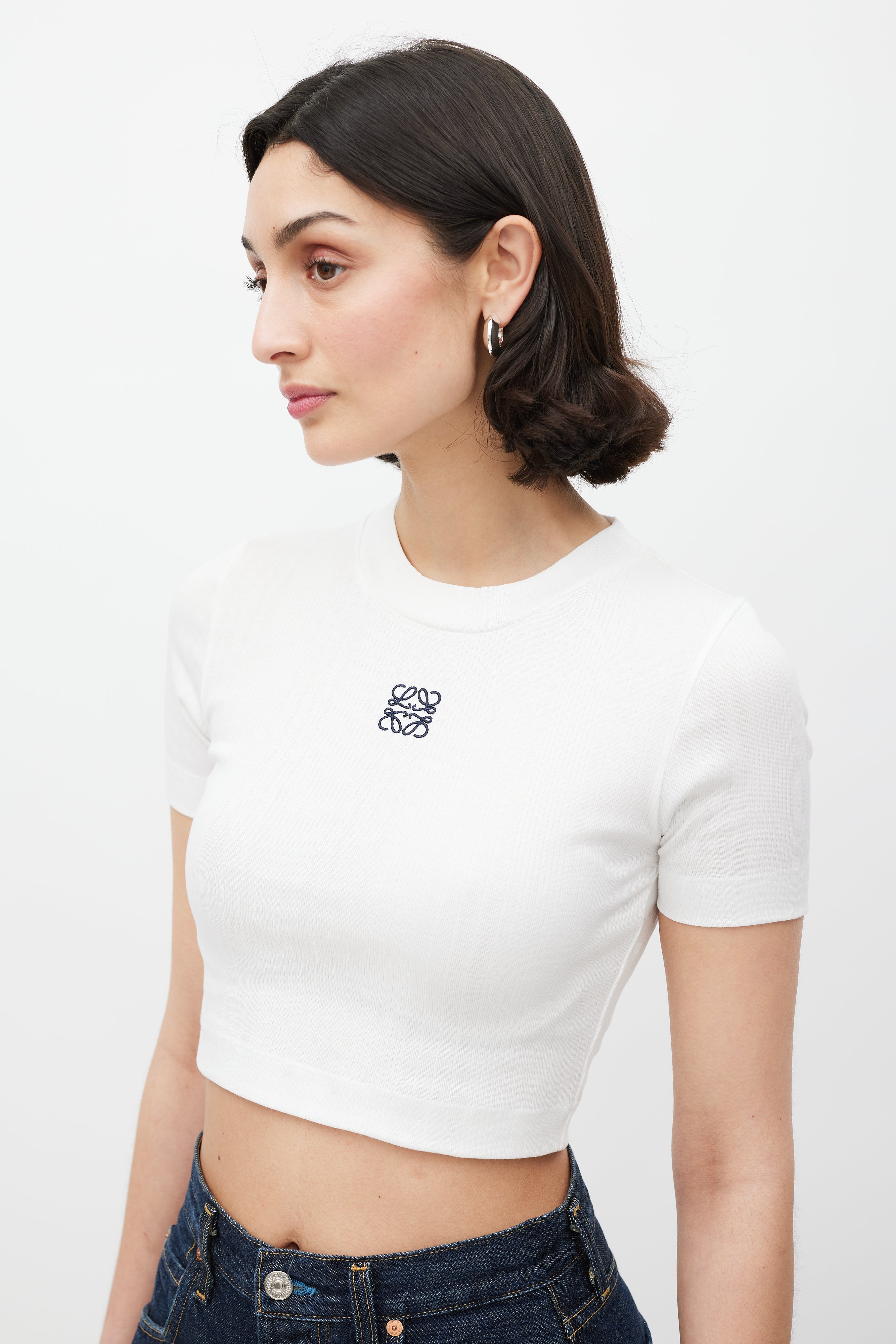 White & Black Embroidered Anagram Logo Cropped T-Shirt Small Size Guide