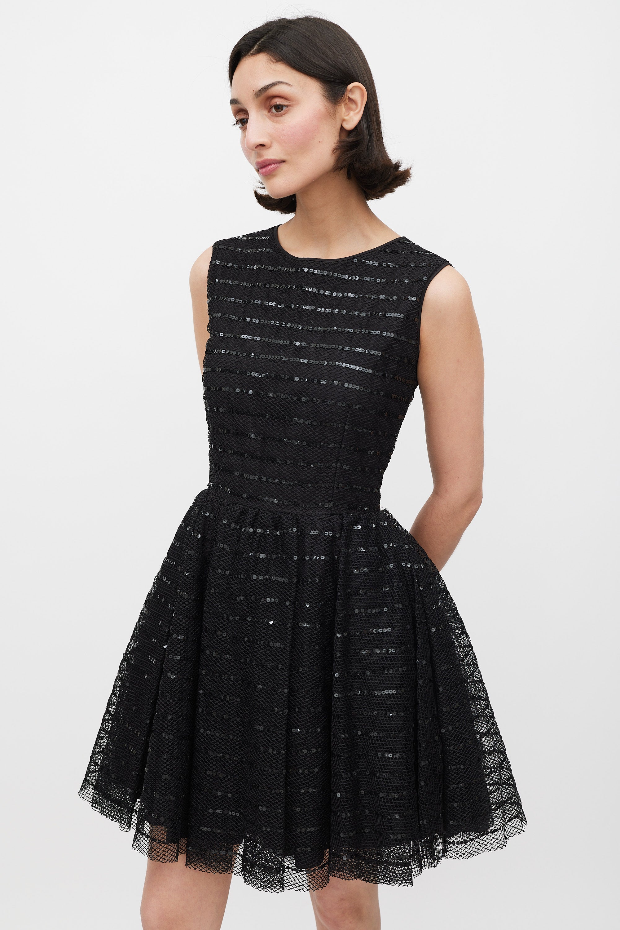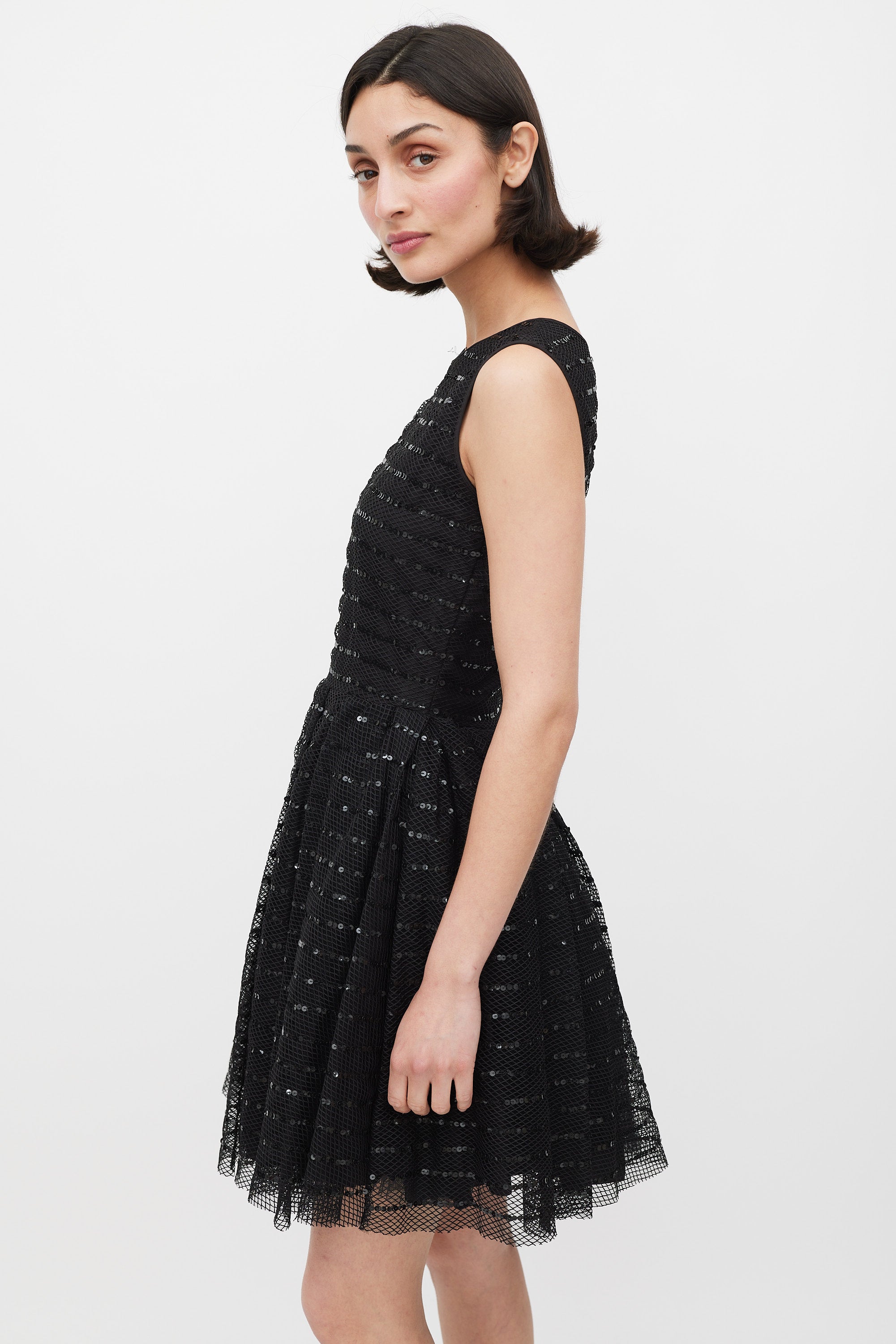Black Mesh Sequinned Stripe A-Line Dress IT 44 Size Guide