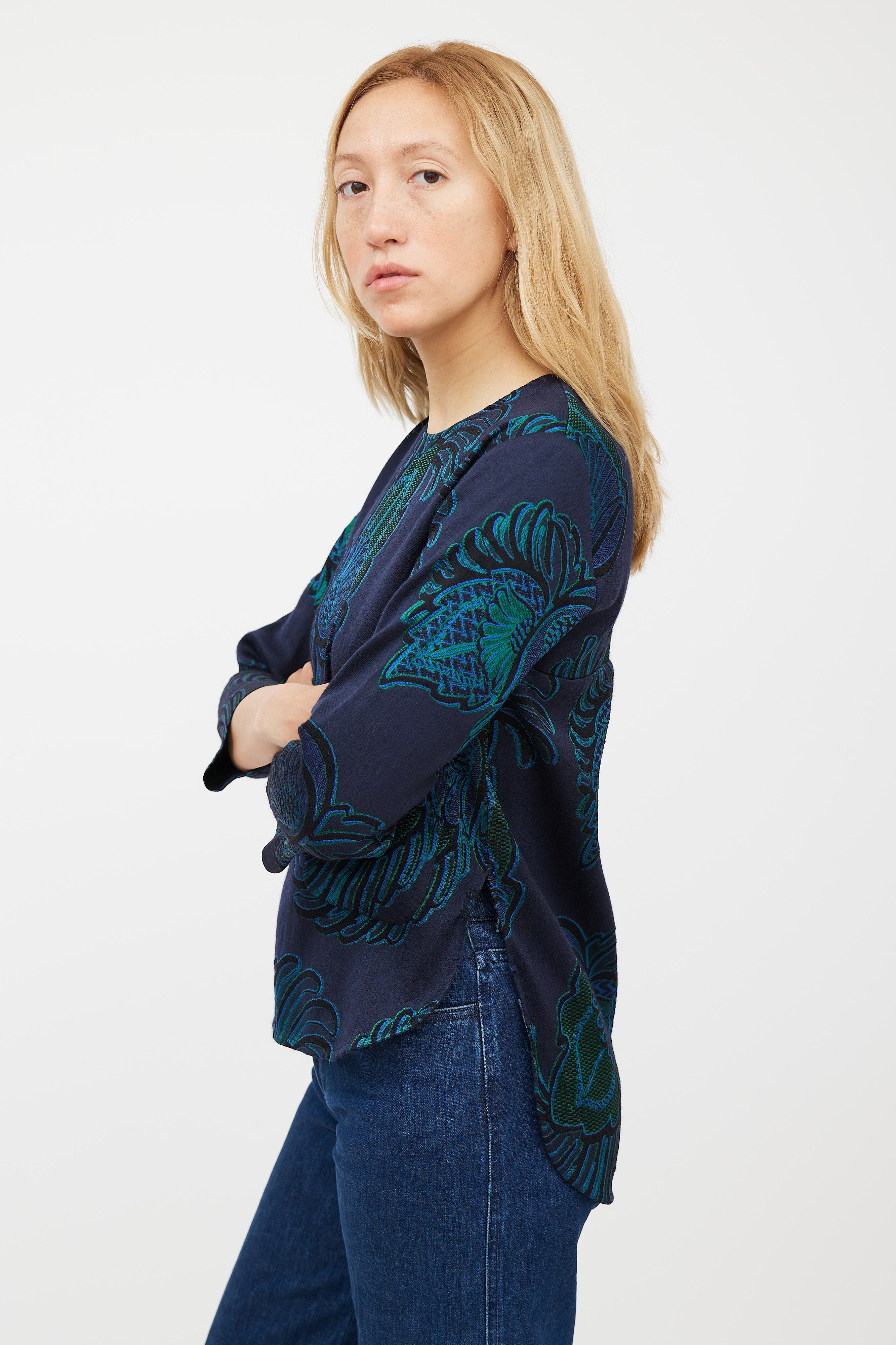 Navy & Green Wool Paisley Jacquard Top IT 36 Size Guide