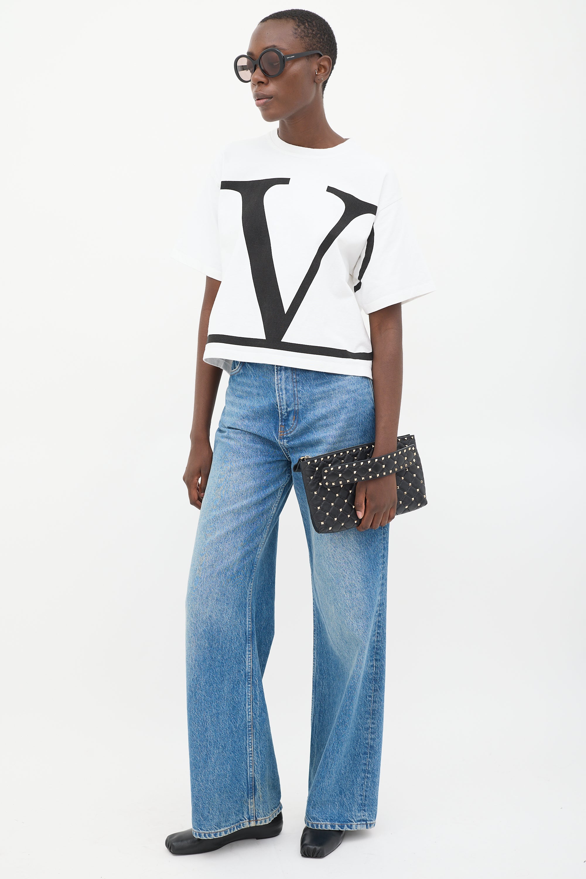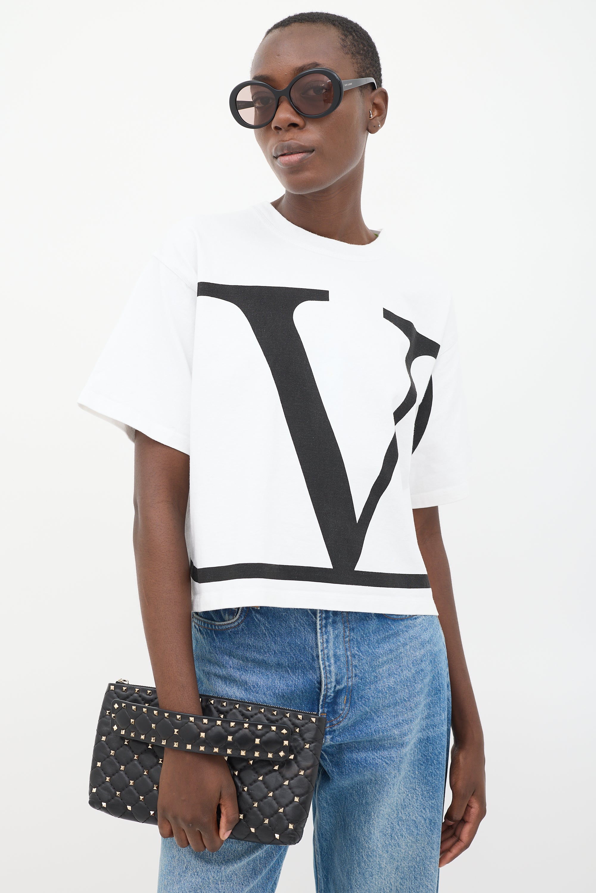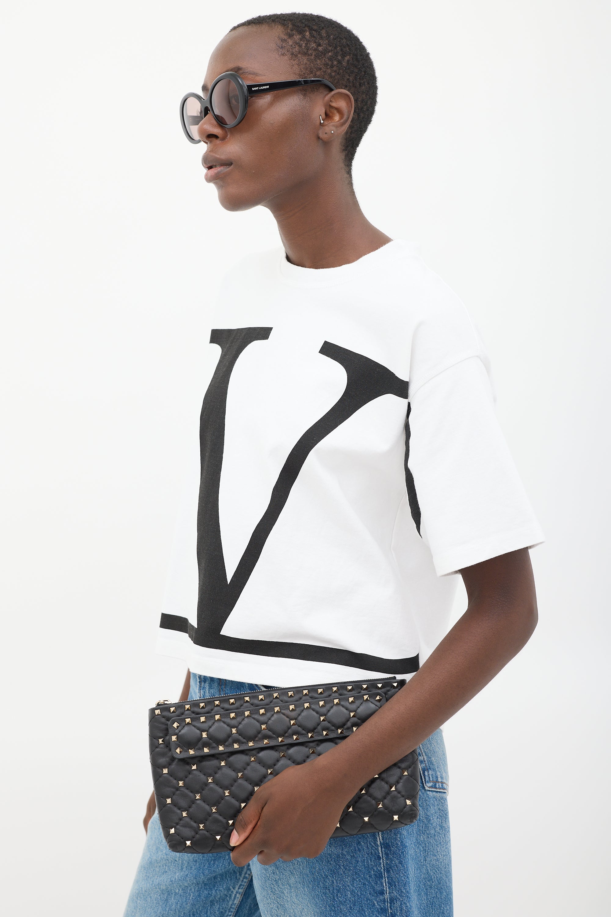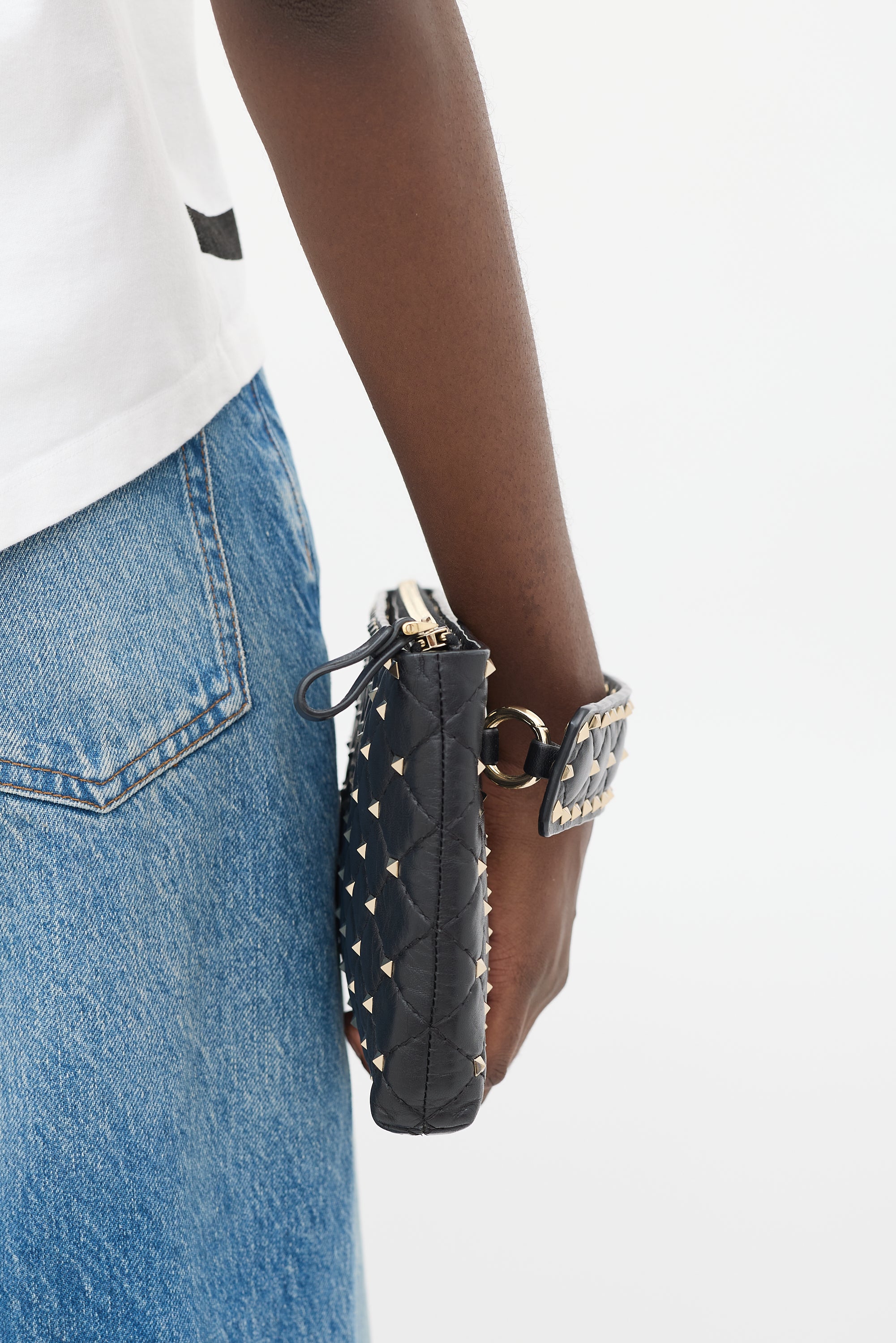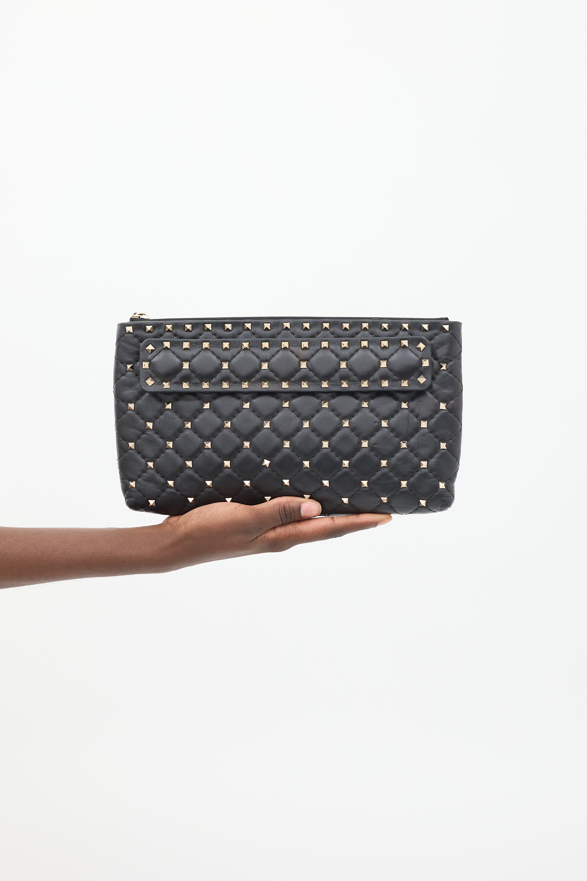 Black Quilted Leather Rockstud Clutch