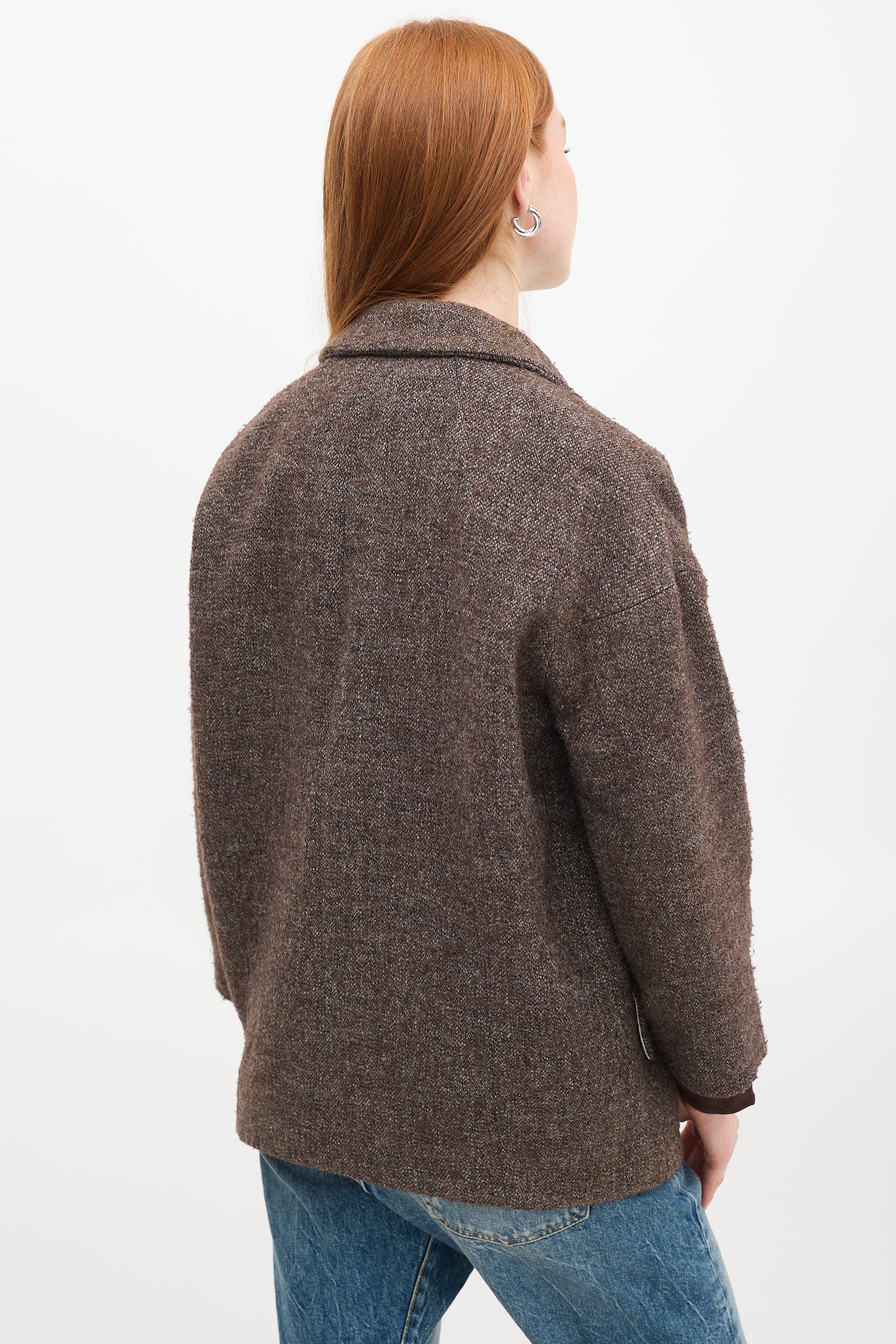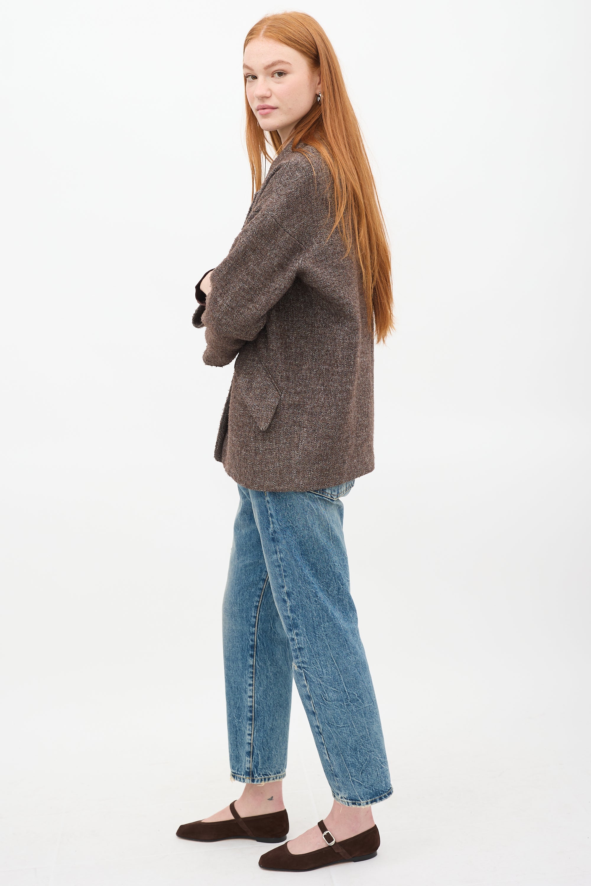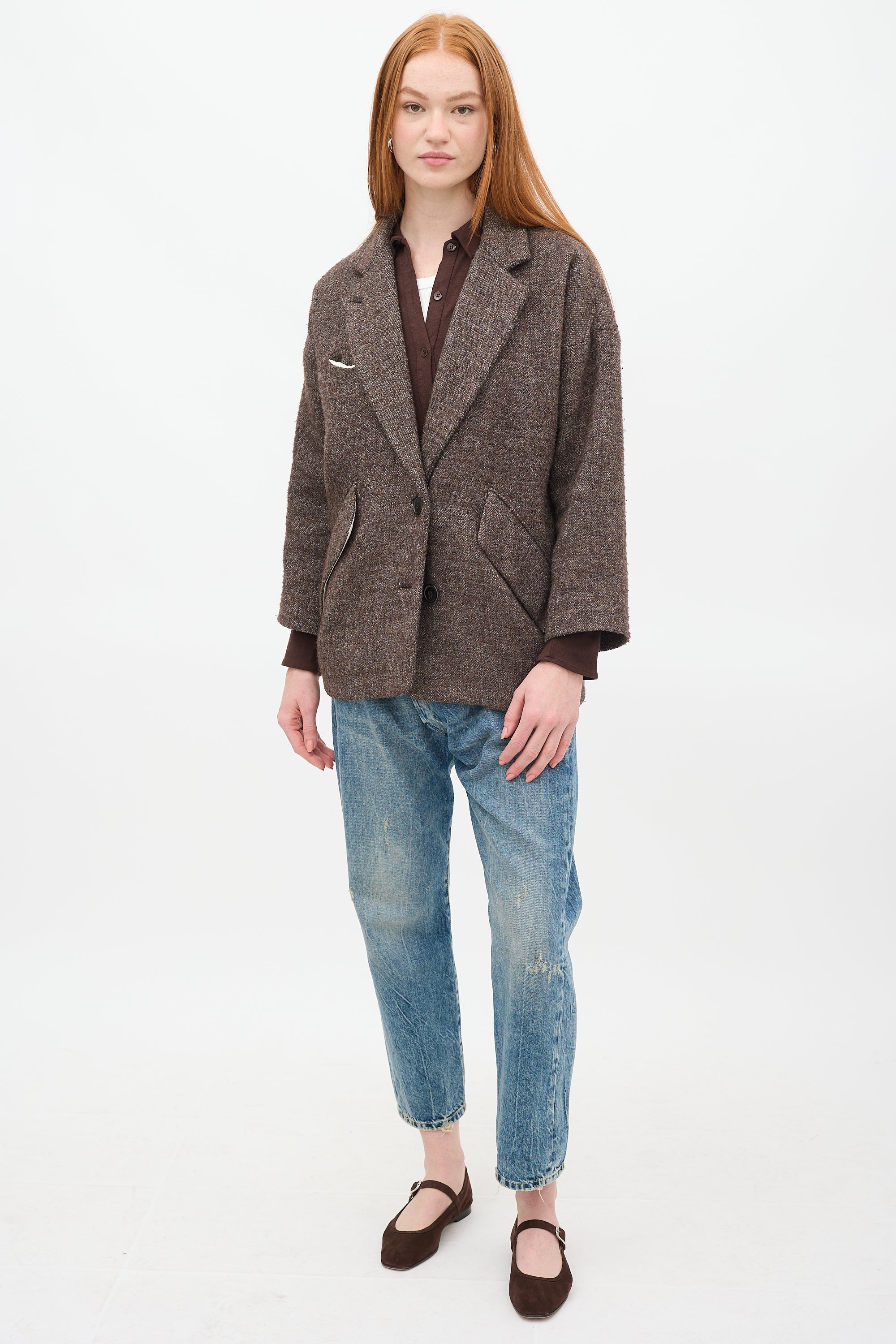 Pre-owned Isabel Marant Étoile brown and cream wool blazer featuring notched lapel, button up front, one chest welt pocket, and two flap pockets at hips. Lined.