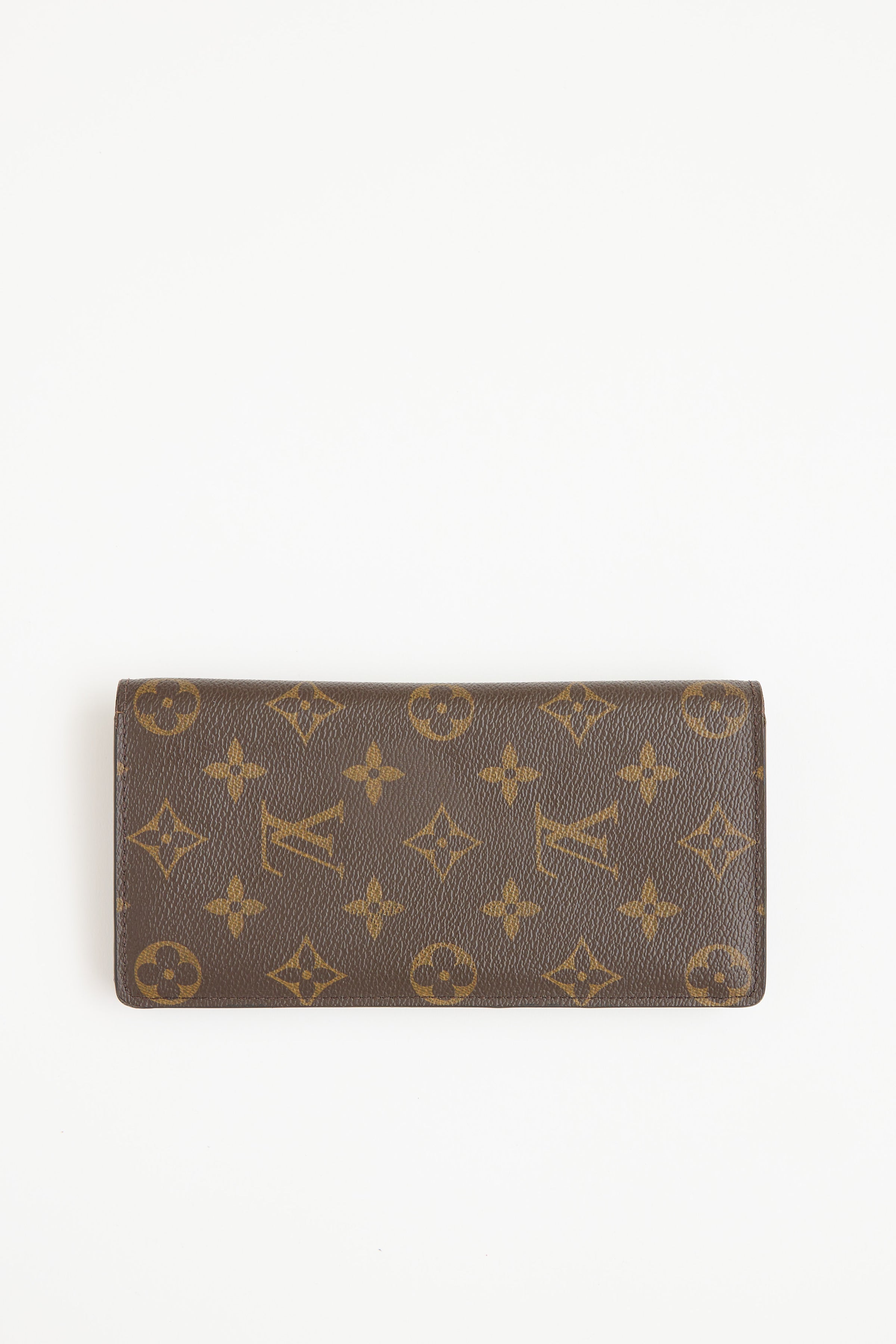 Pre-owned Louis Vuitton brown 2020 Brazza wallet featuring coated canvas monogram, open styling, engraved TMB initials at lining, five slip pockets on interior, one zip pocket, 16 card slots.