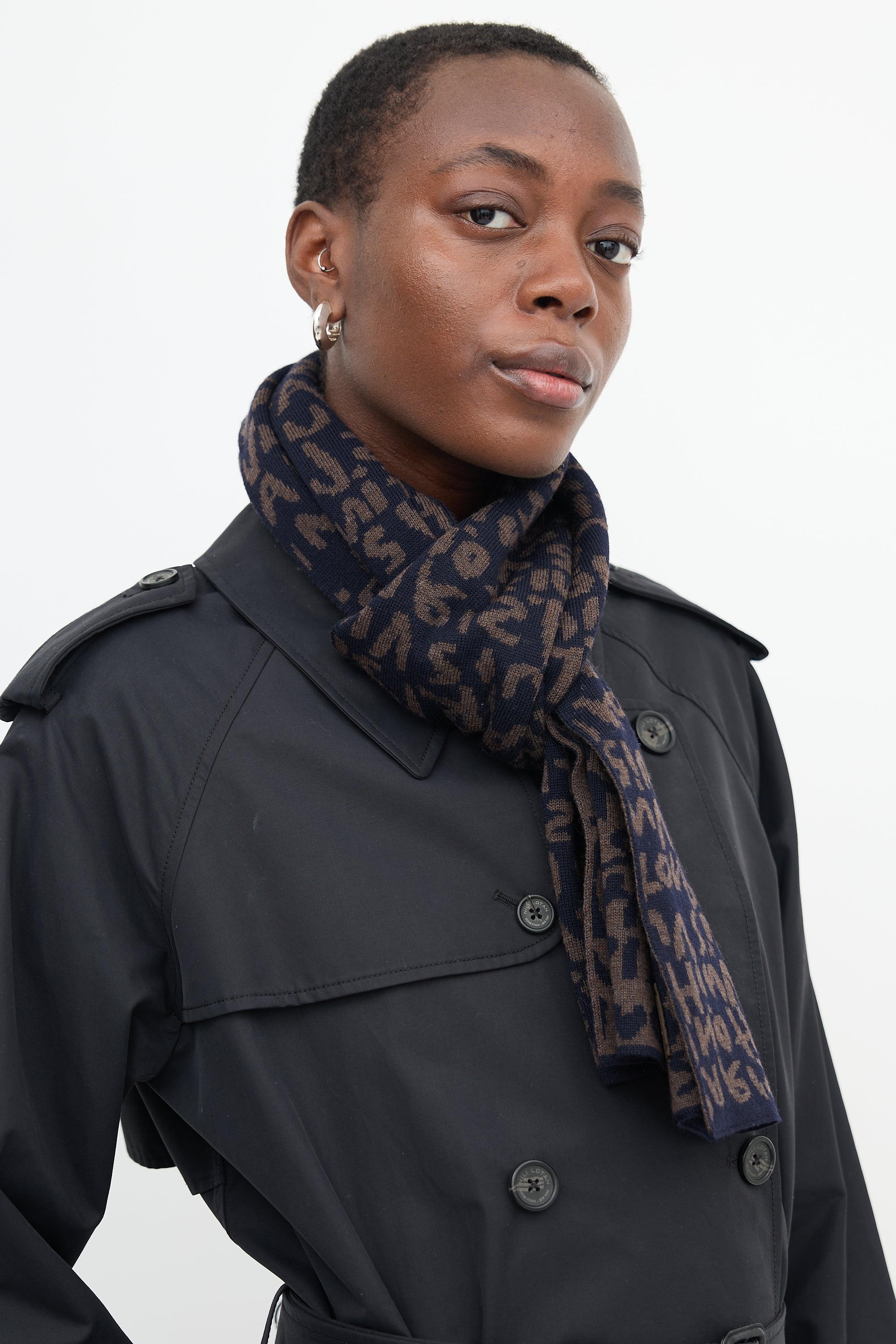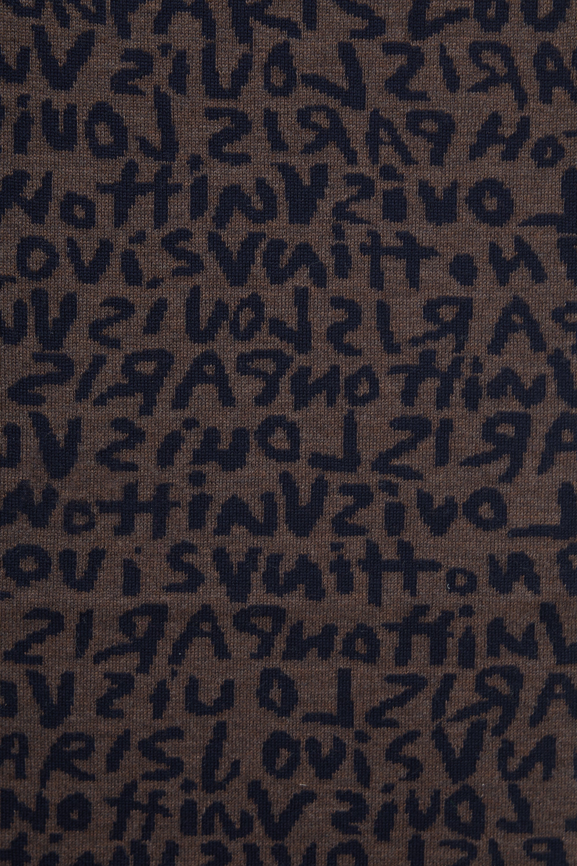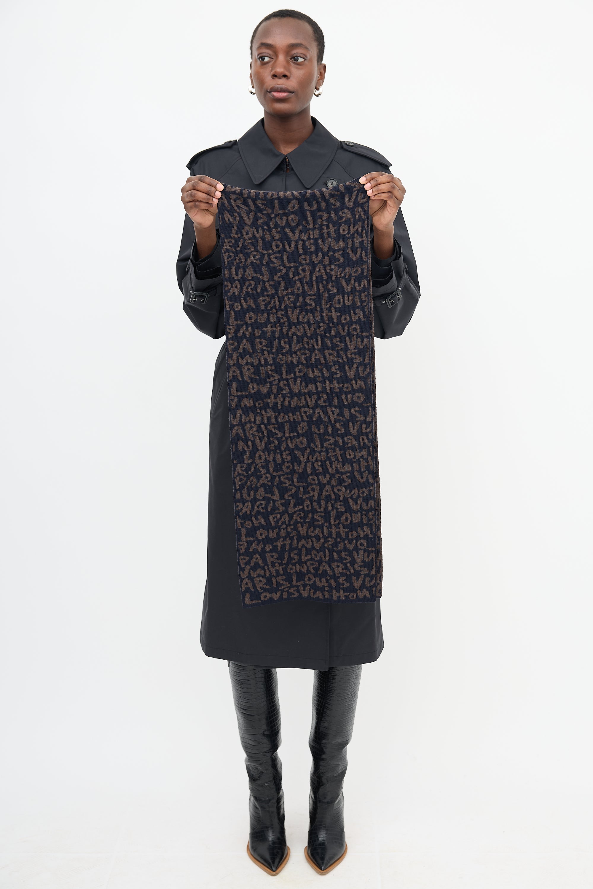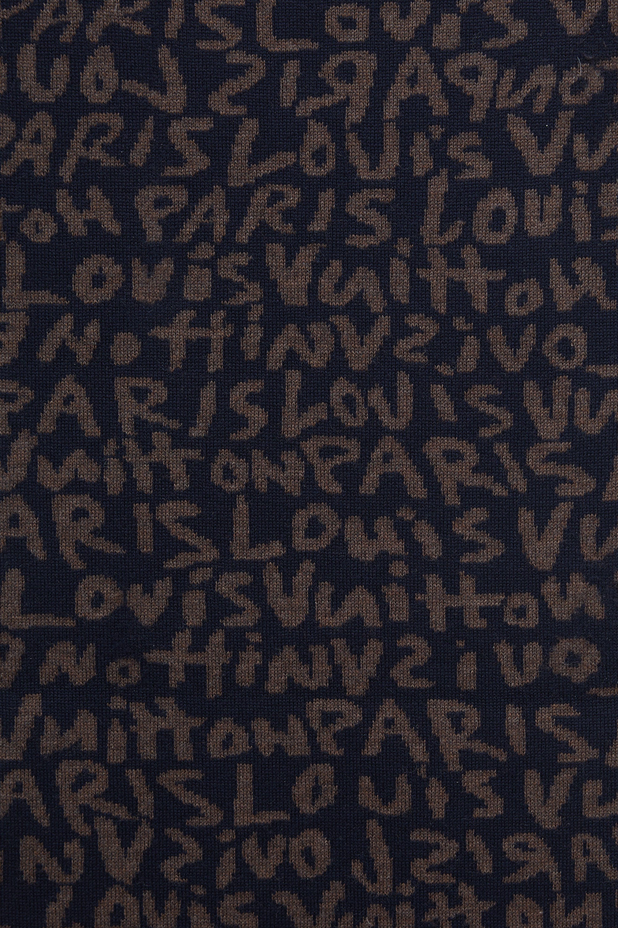 Pre-owned Louis Vuitton x Stephen Sprouse navy and grey scarf featuring reversible graffiti logo intarsia.