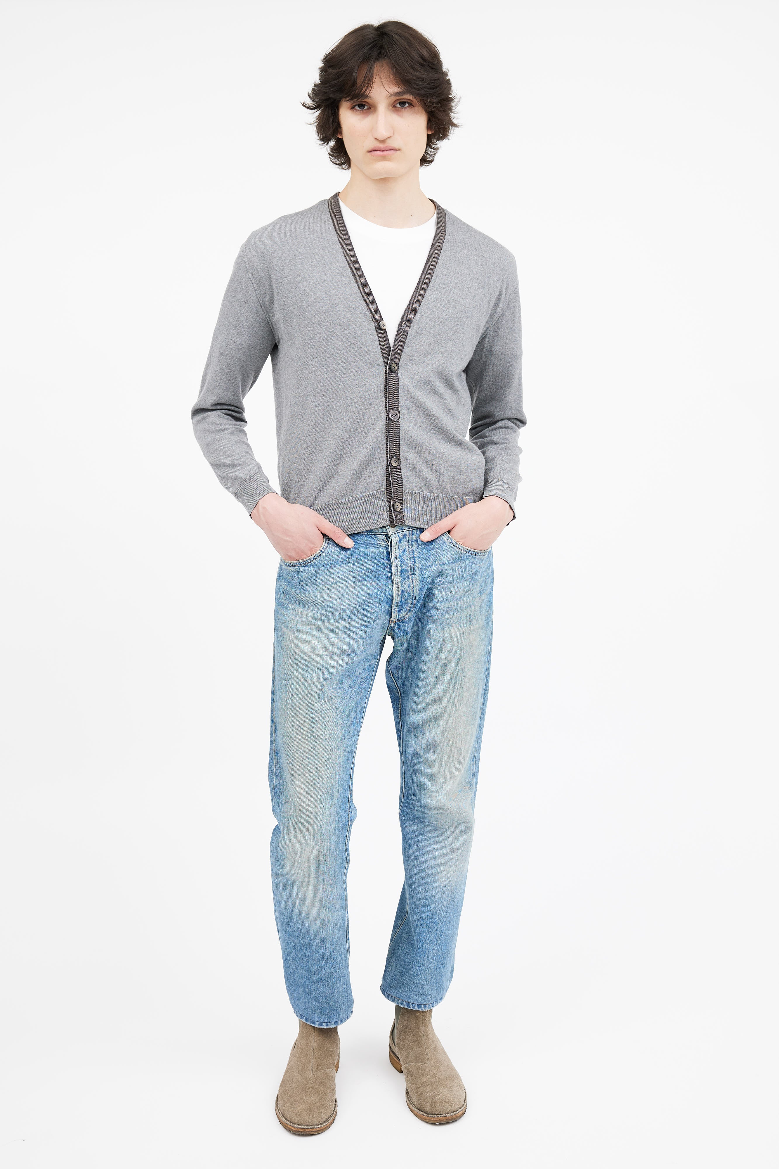 Grey Wool V-Neck Cardigan Medium Size Guide