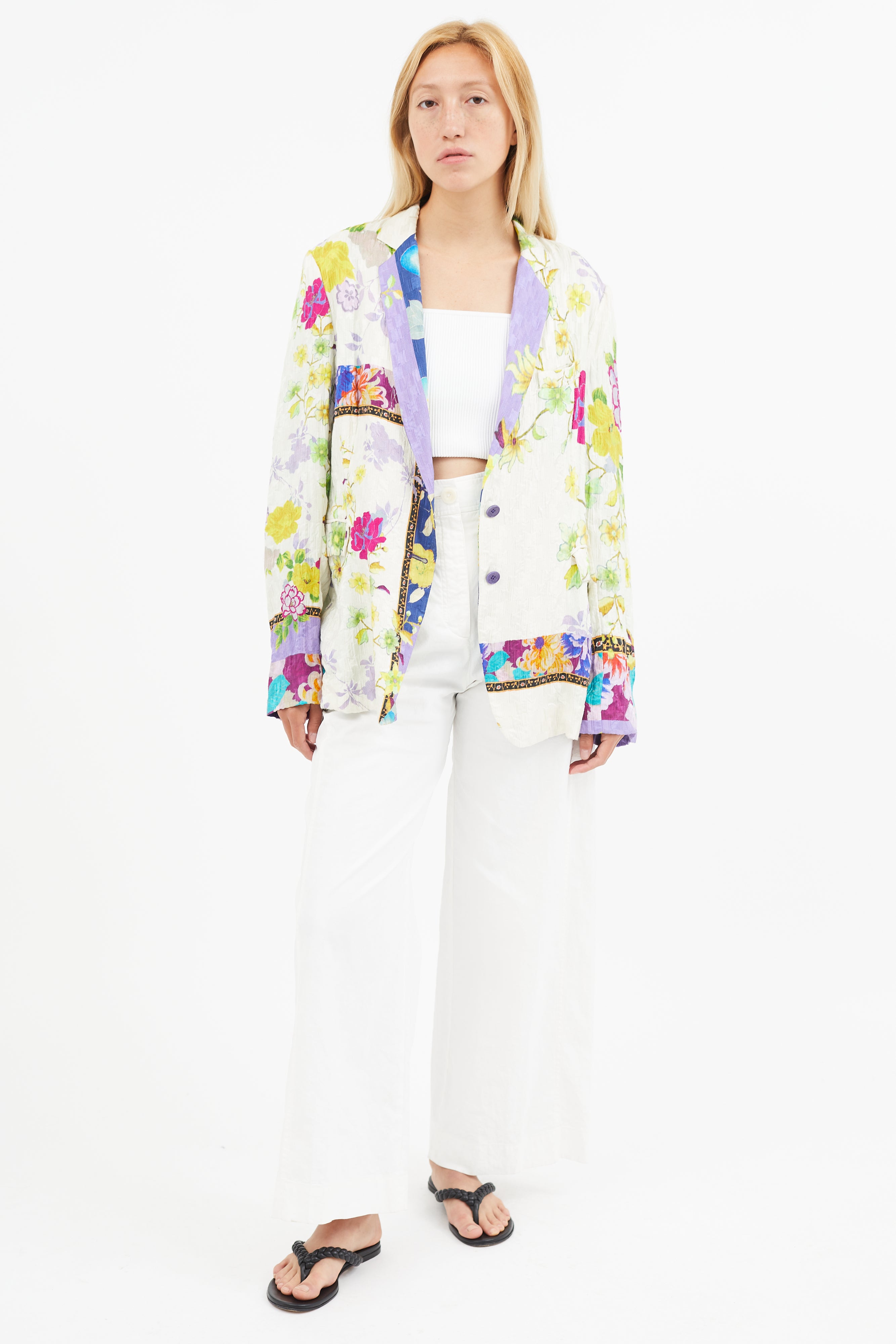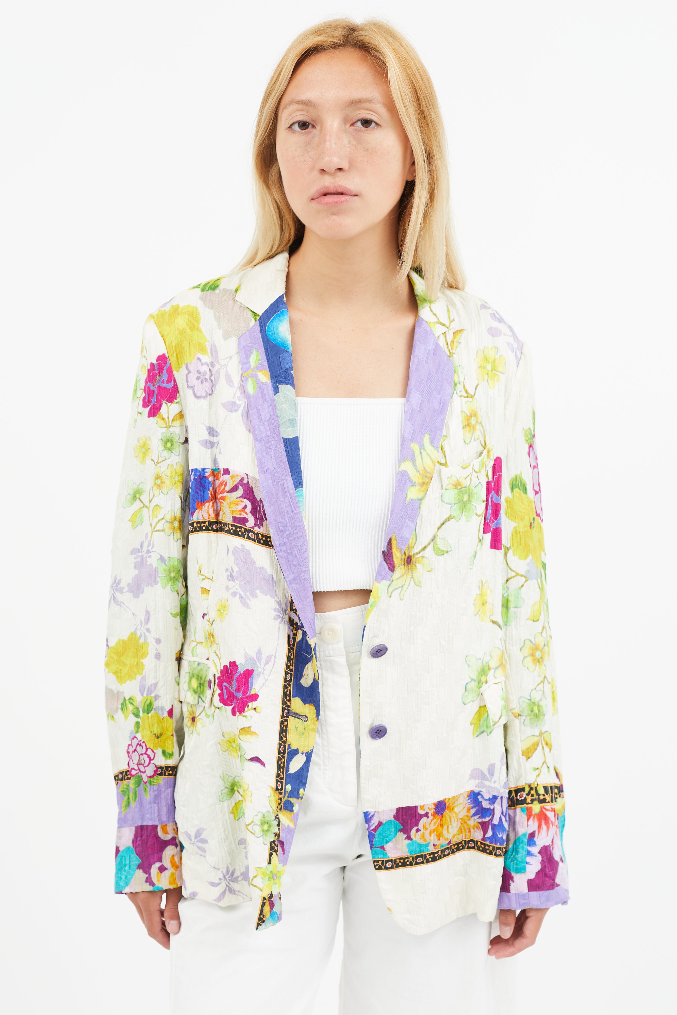 White & Multi Silk Floral Blazer IT 50 Size Guide