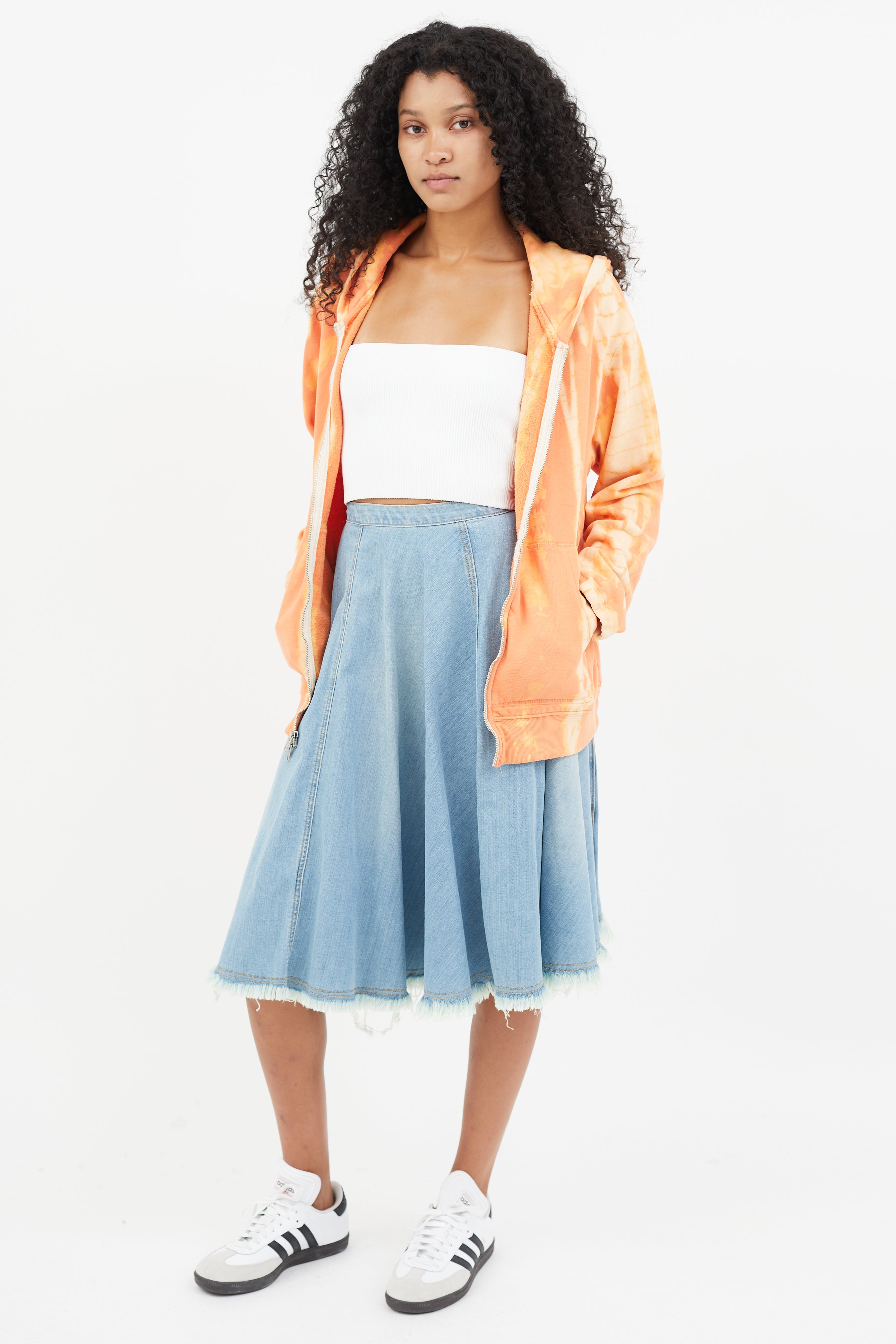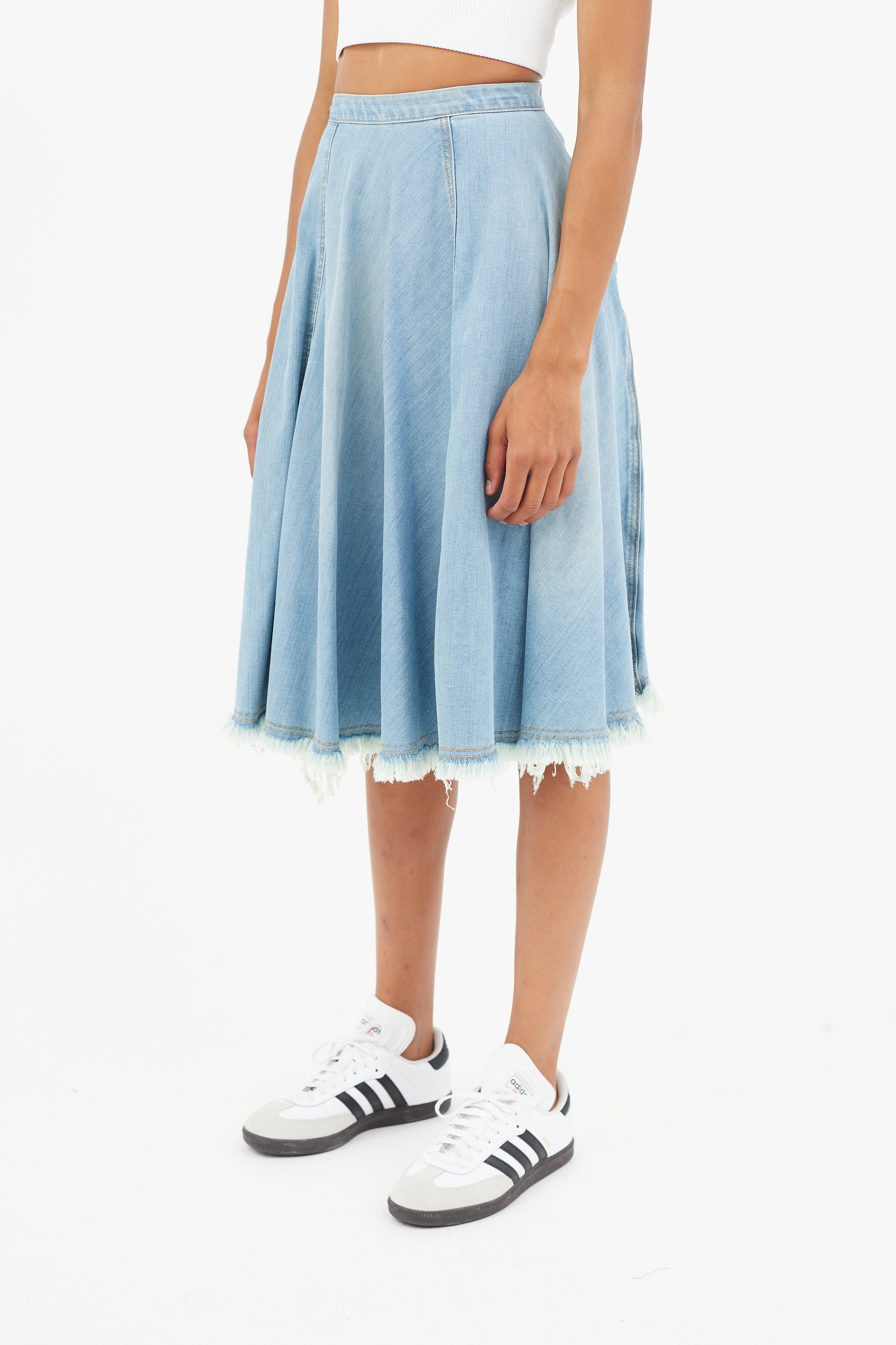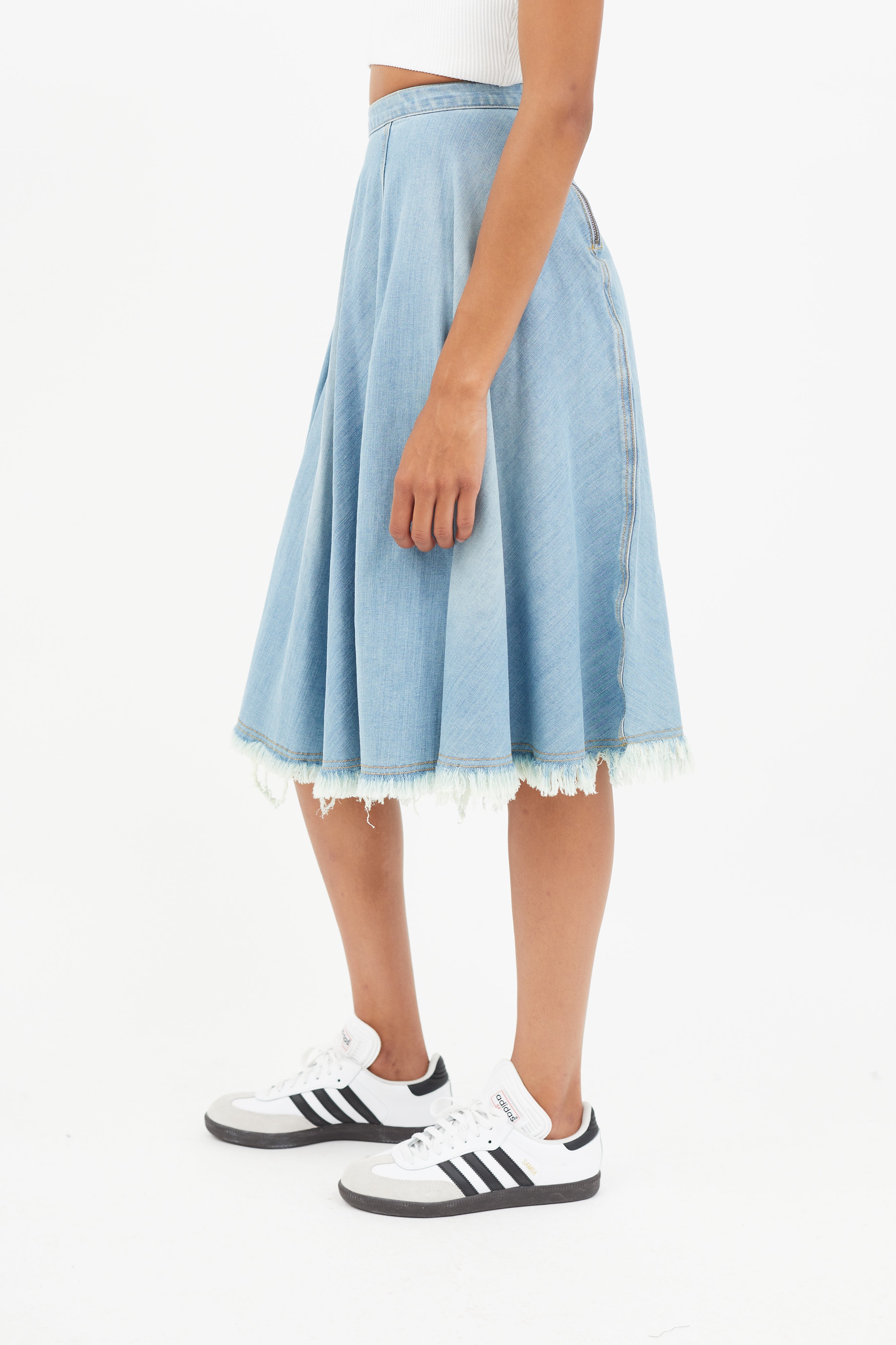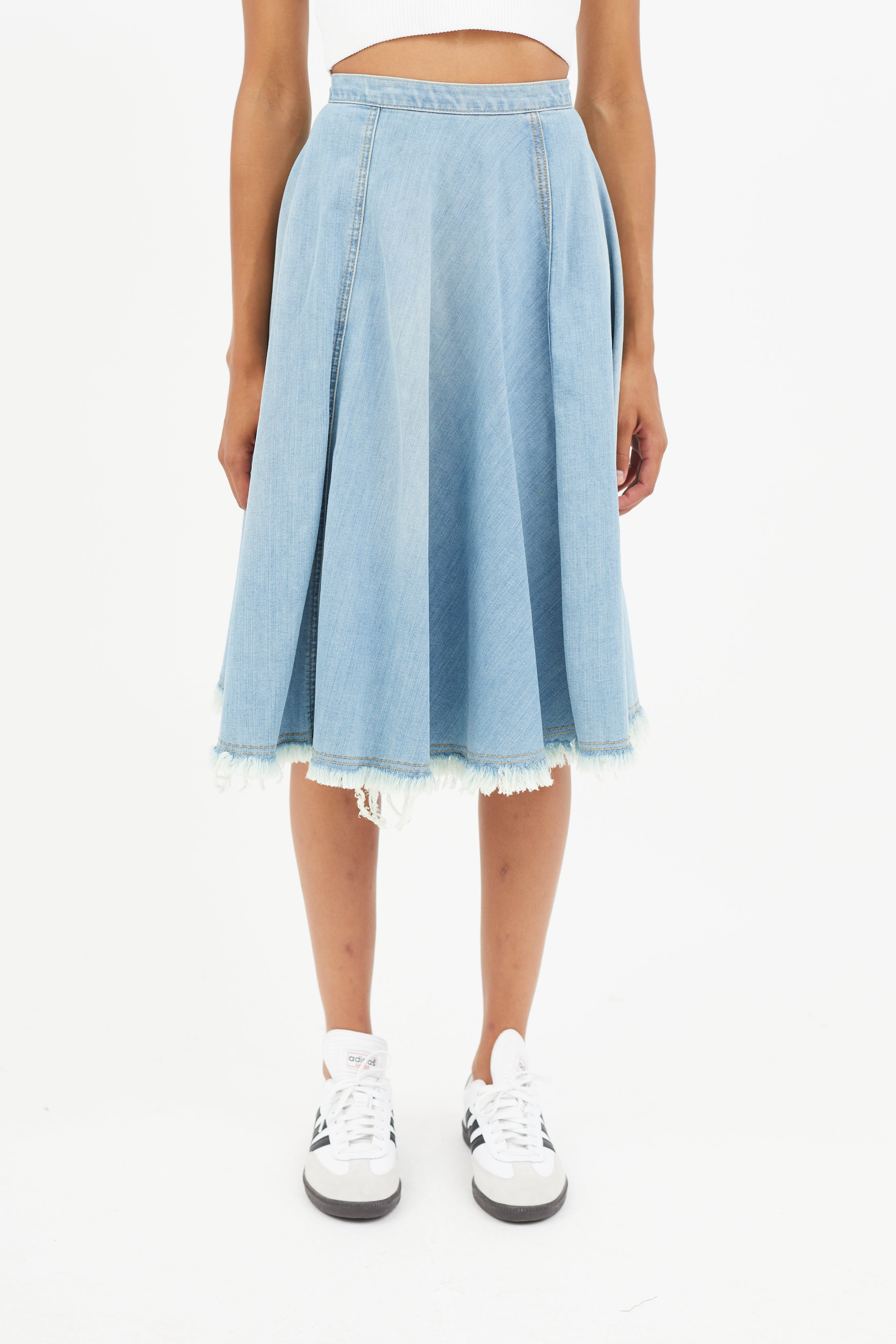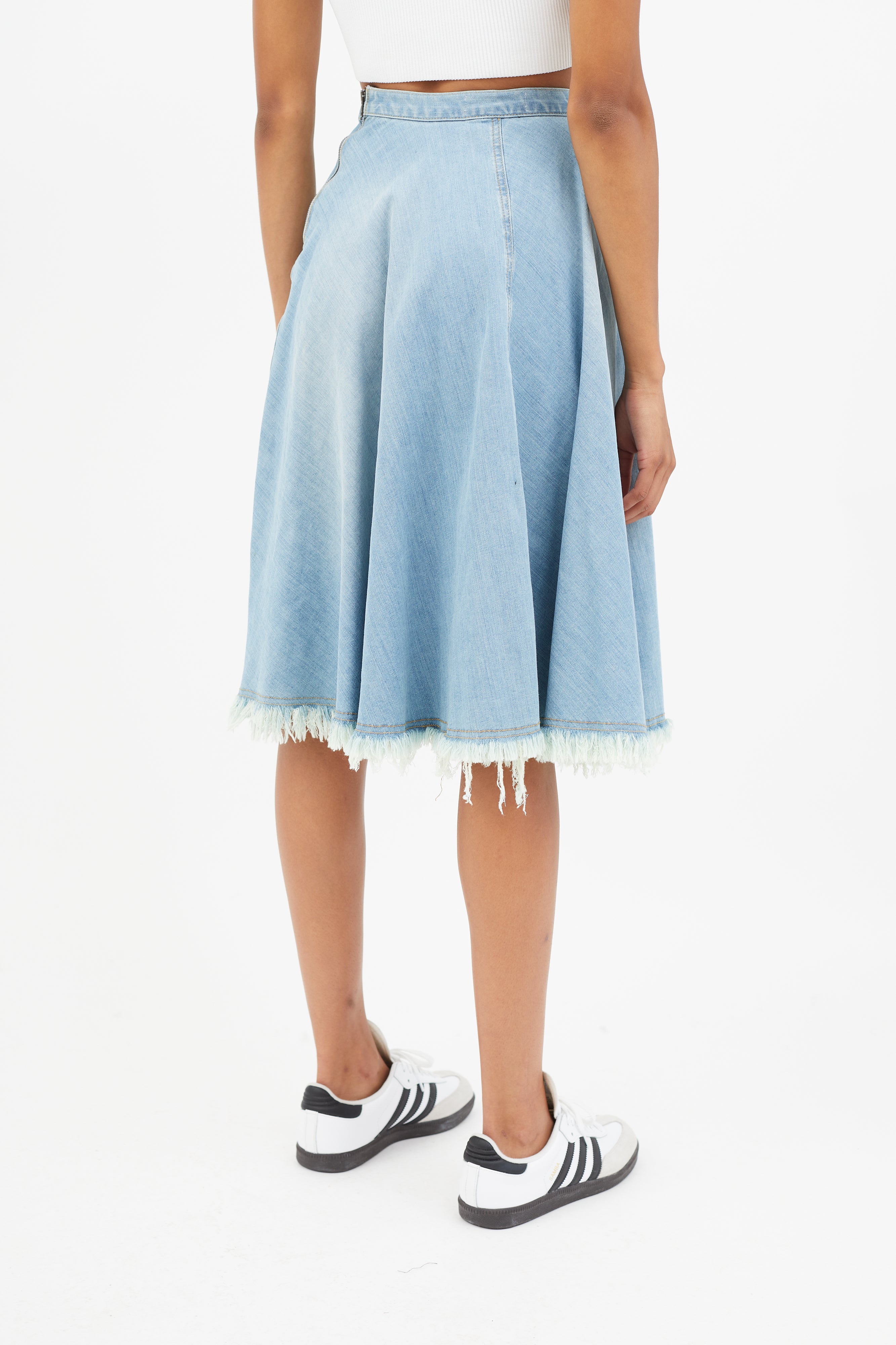 Blue Distressed Denim Skirt US 0 Size Guide