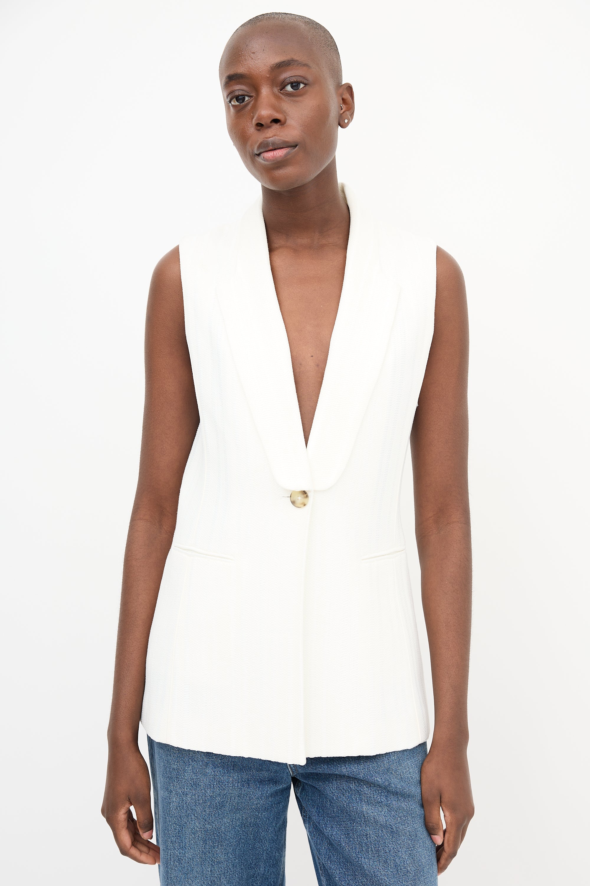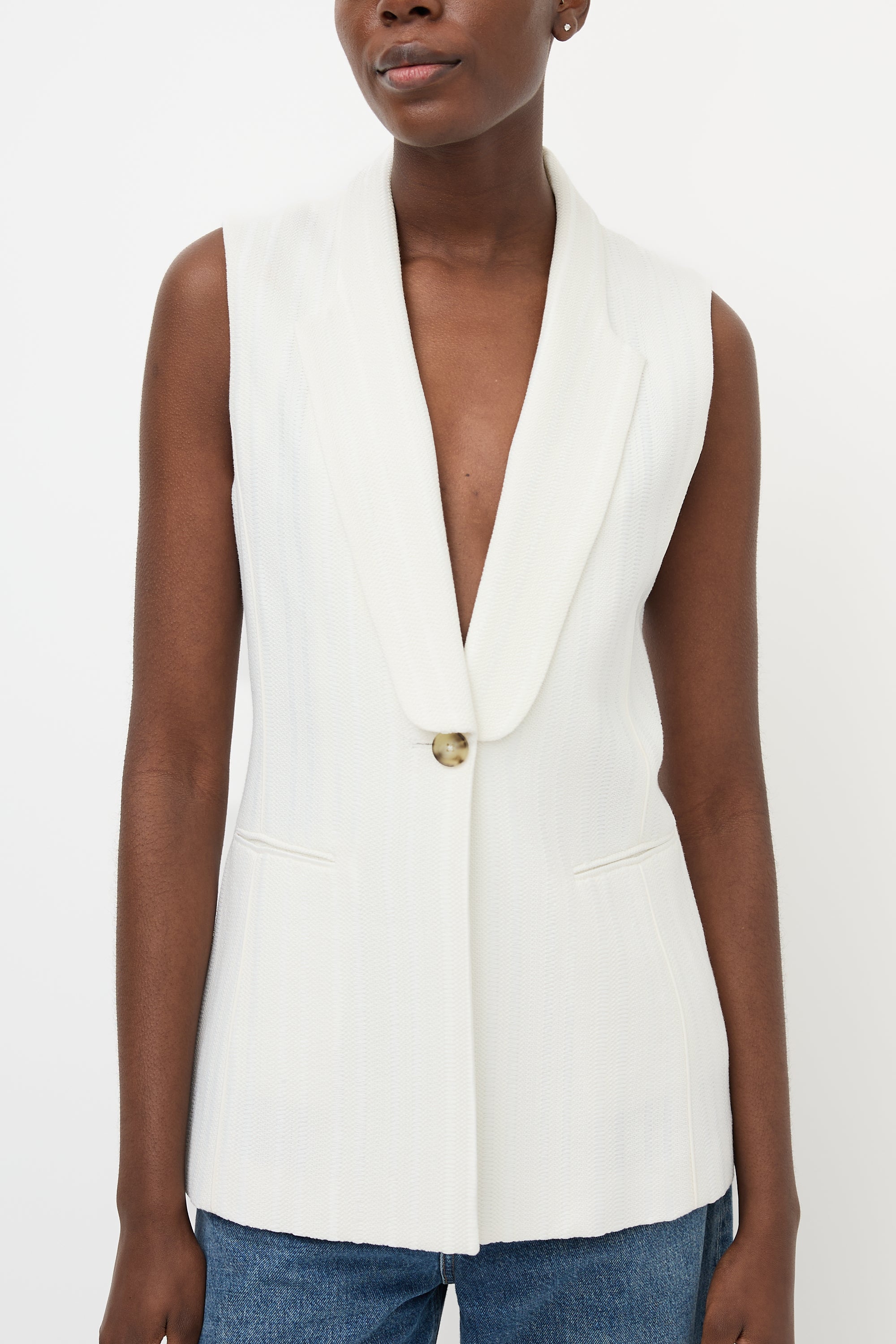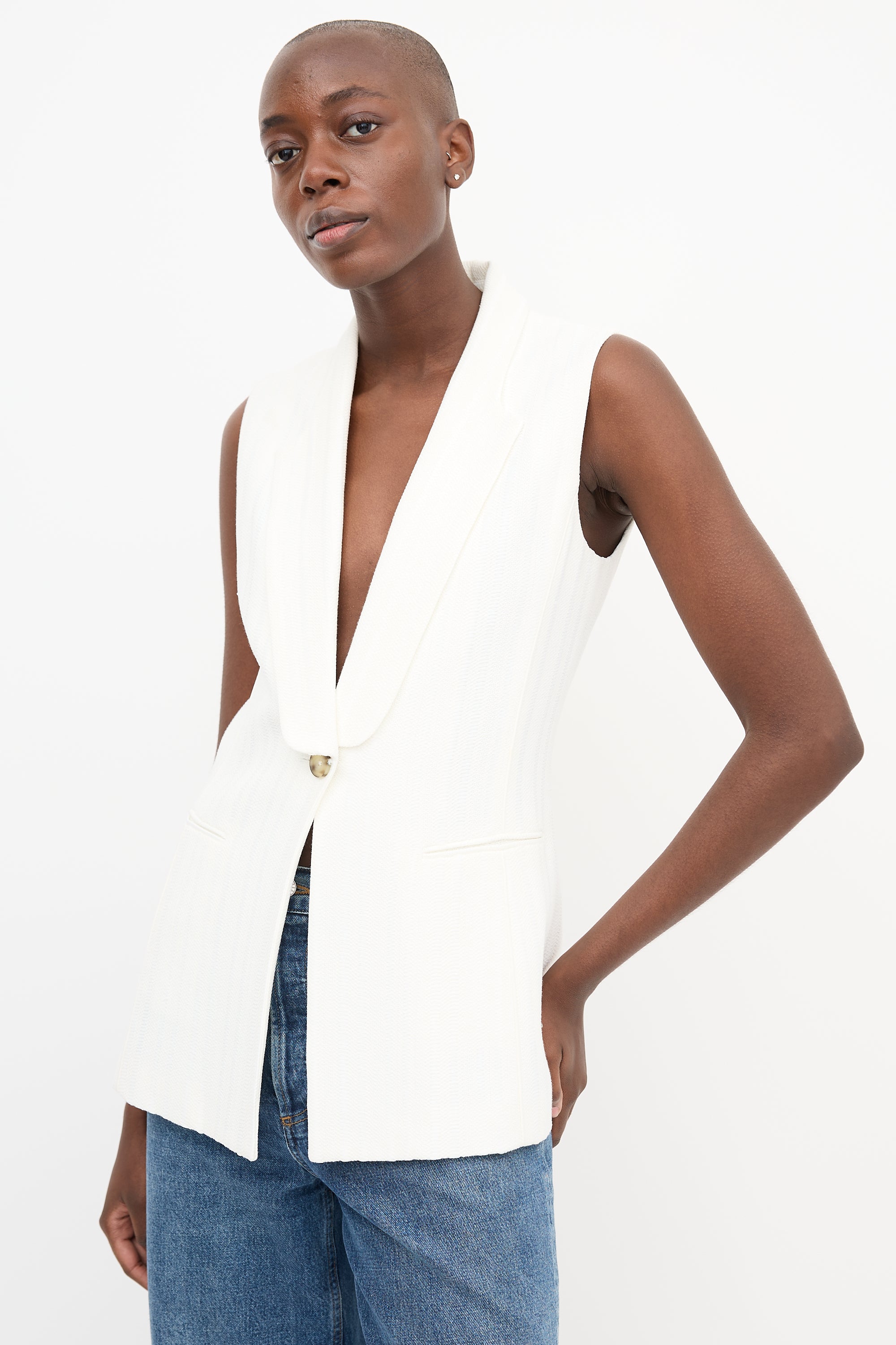 Pre-owned Veronica Beard Spring 2016 cream vest featuring a notched lapel, single button front, two welt pockets at hip, and a back vent. Lined.