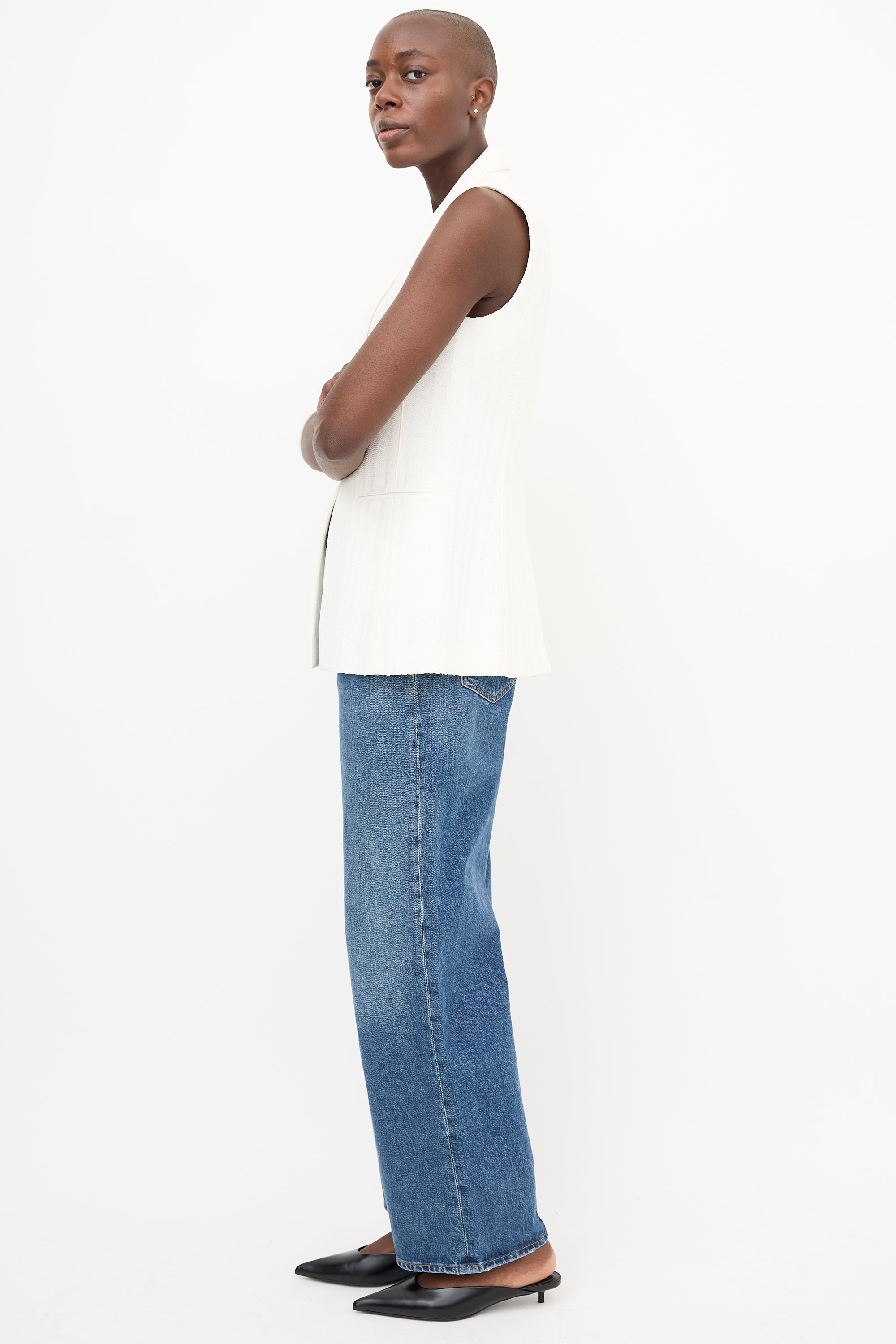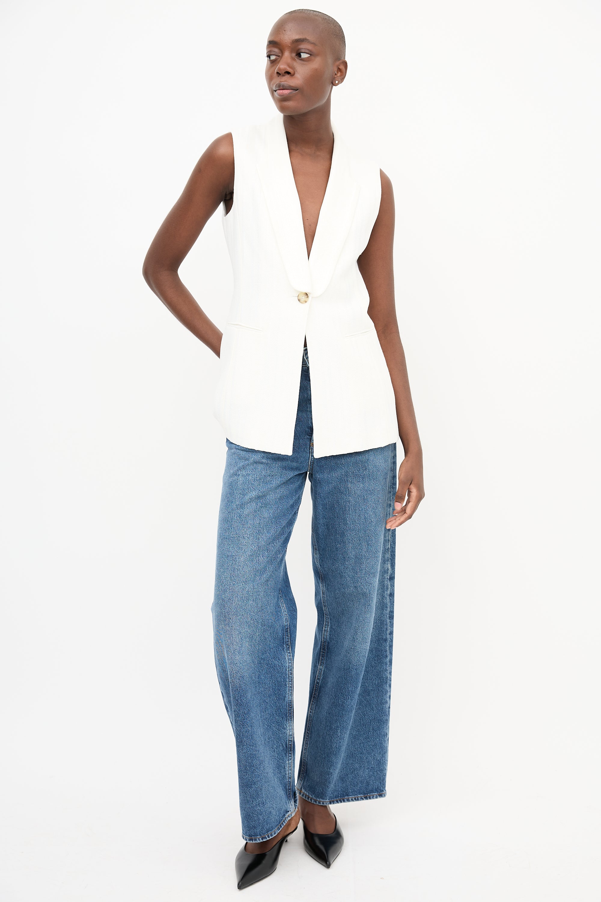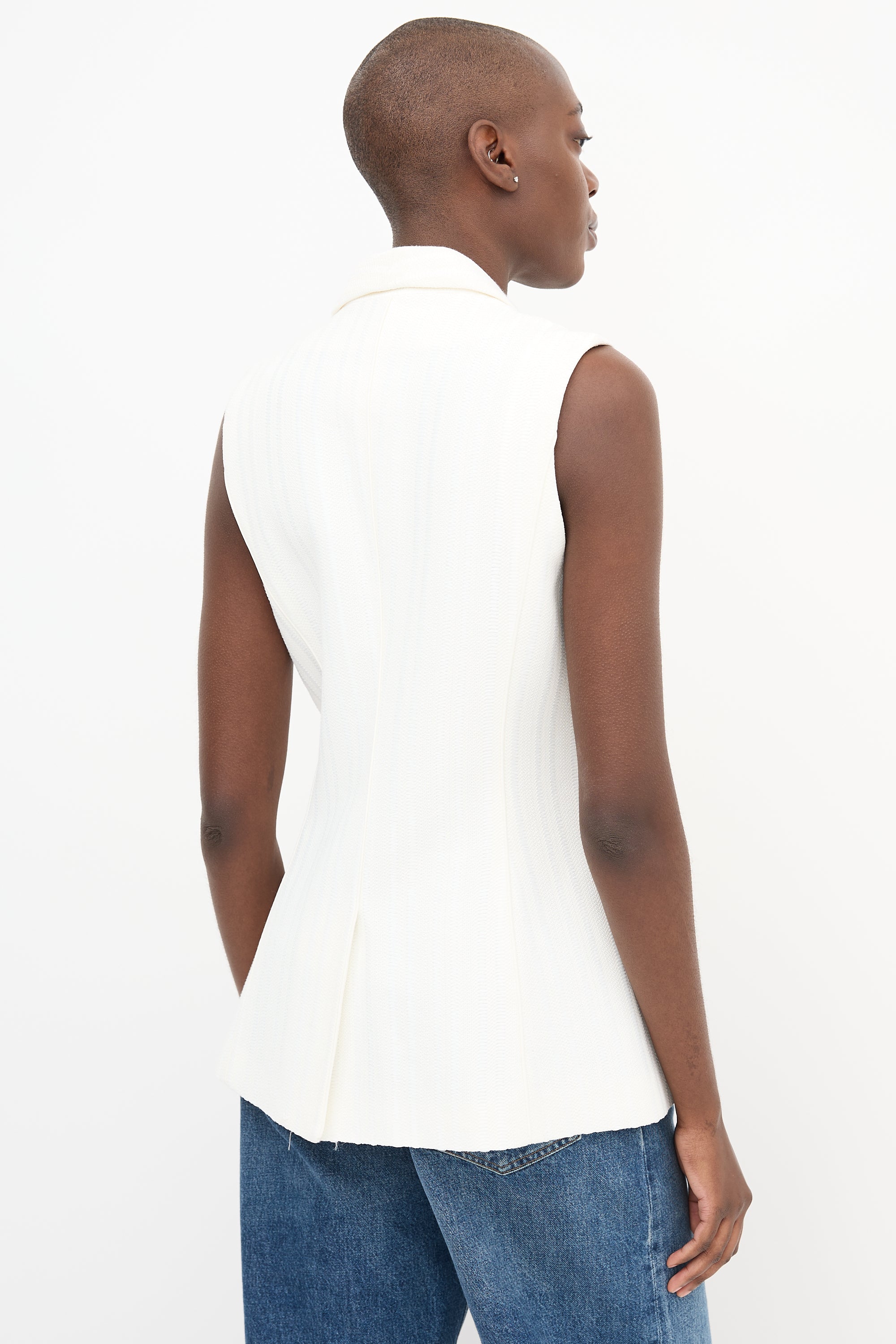 Pre-owned Veronica Beard Spring 2016 cream vest featuring a notched lapel, single button front, two welt pockets at hip, and a back vent. Lined.