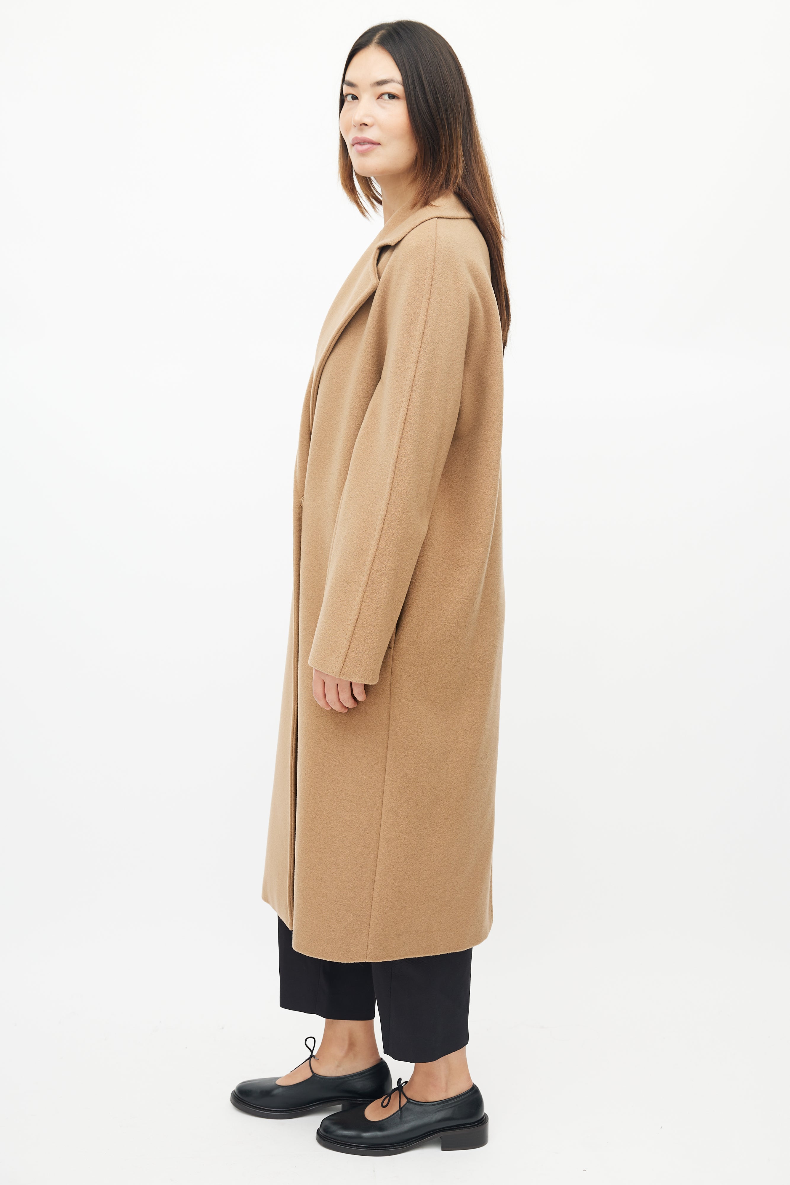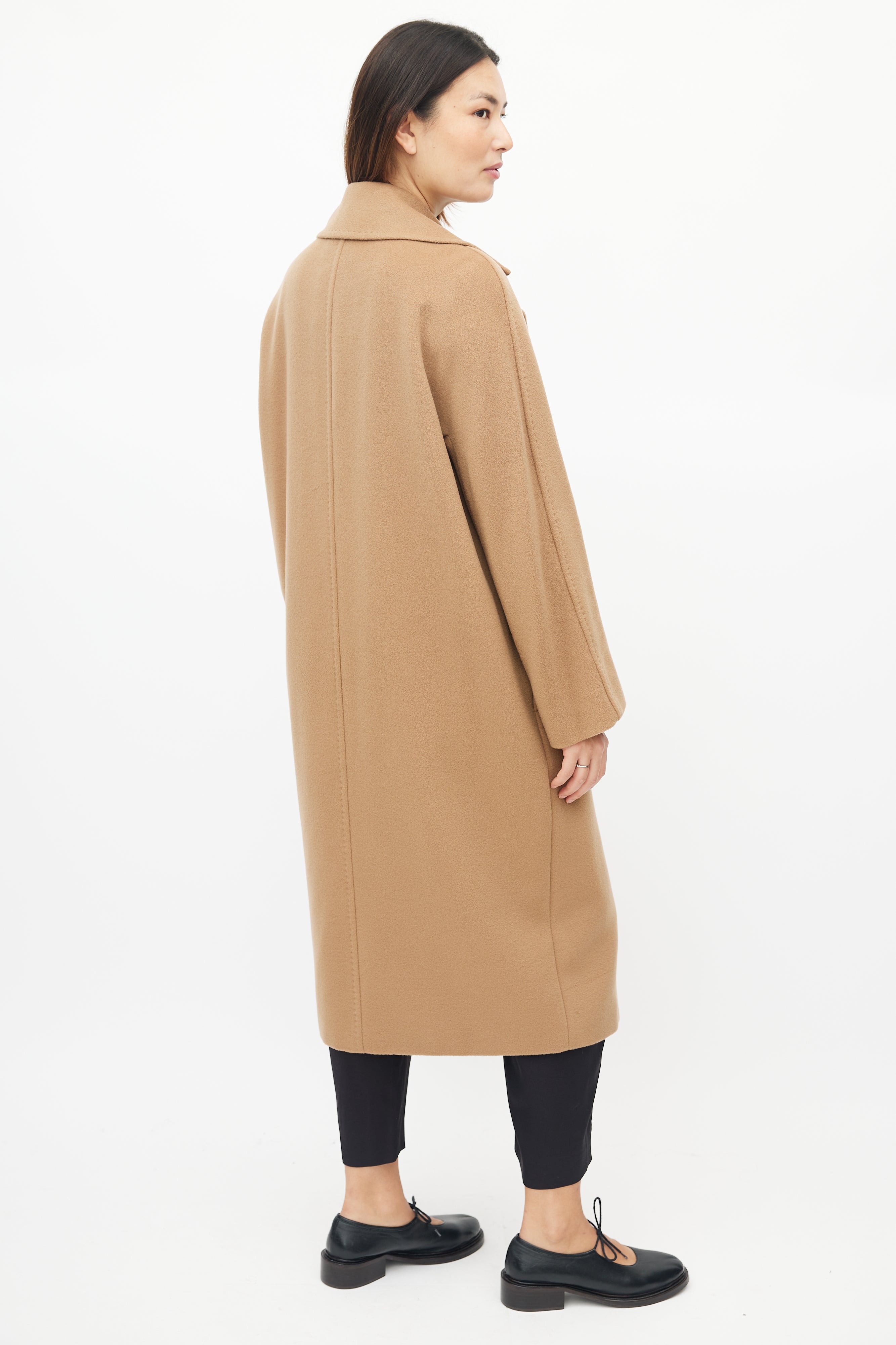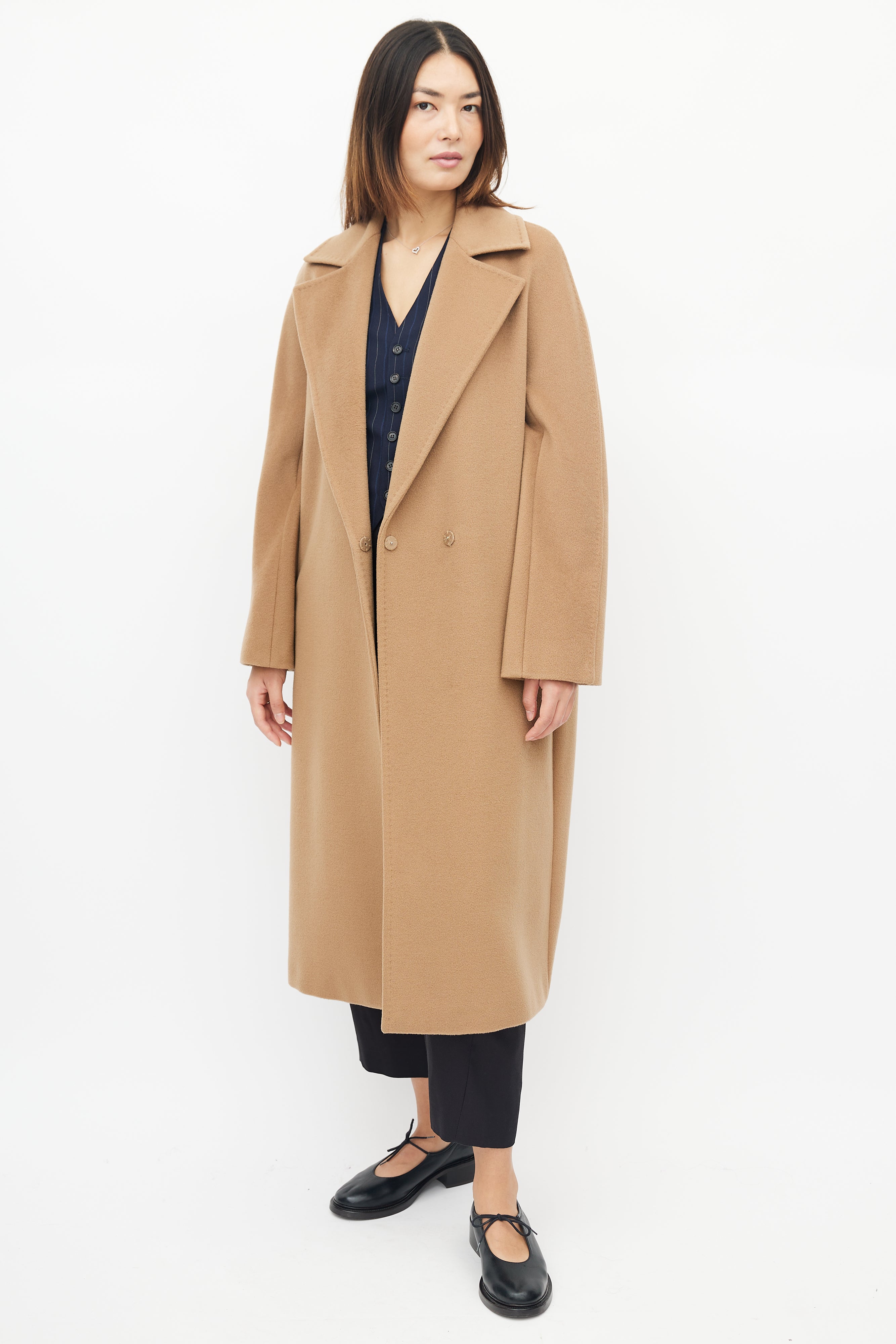 Pre-owned Max Mara brown wool coat featuring a notched lapel, two slip pockets at hip, and double breasted snap closure. Lined.