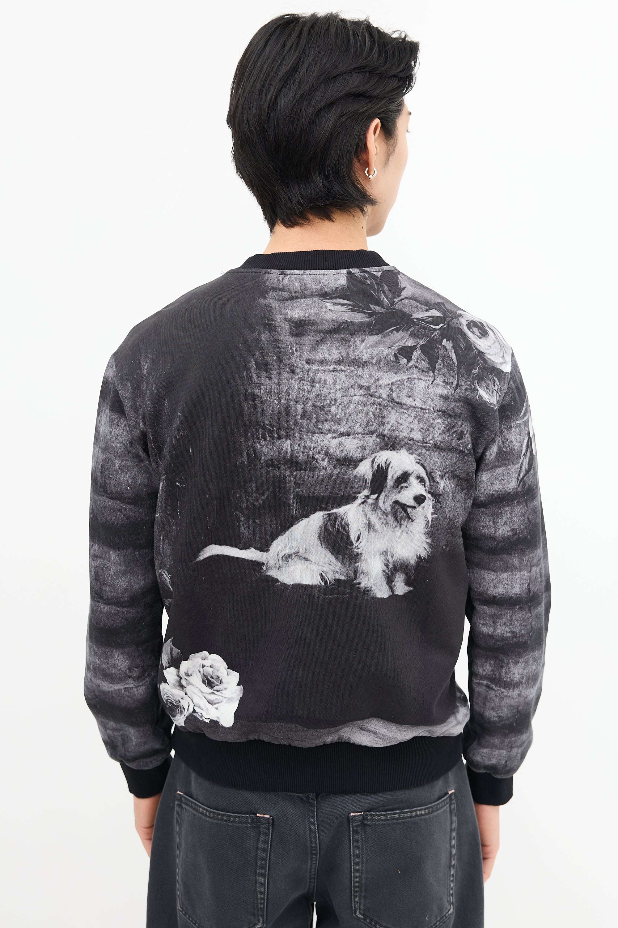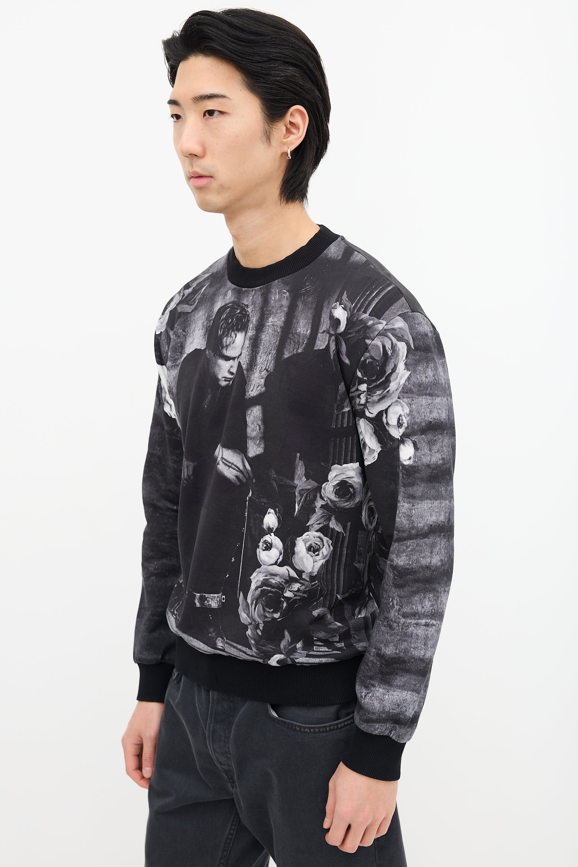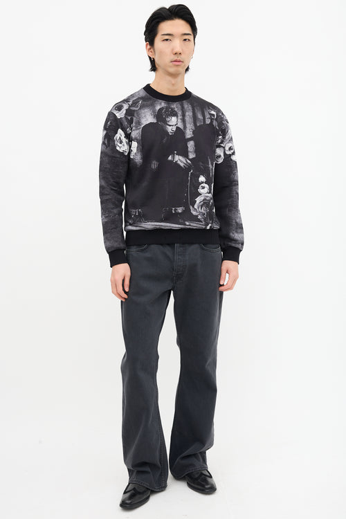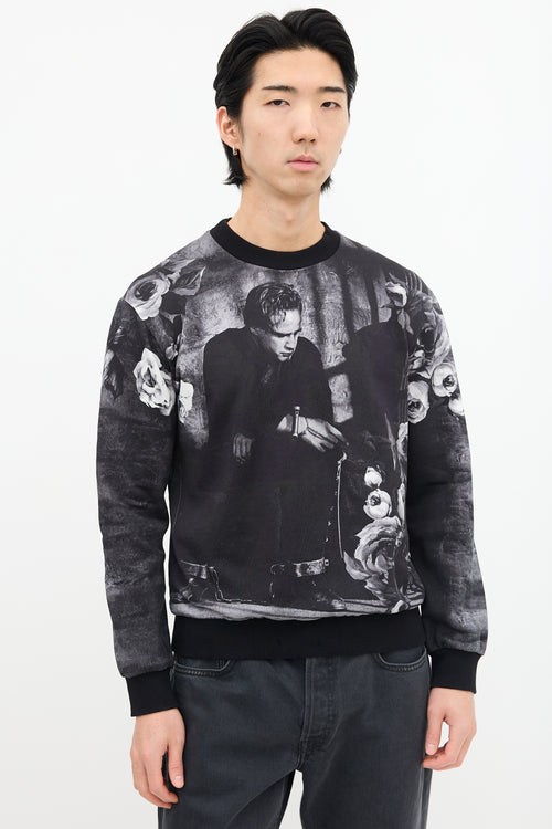 Pre-owned Dolce & Gabbana dark grey sweatshirt featuring Marlon Brando and rose motif print, crew neck, and ribbed collar, hem, and cuffs.
