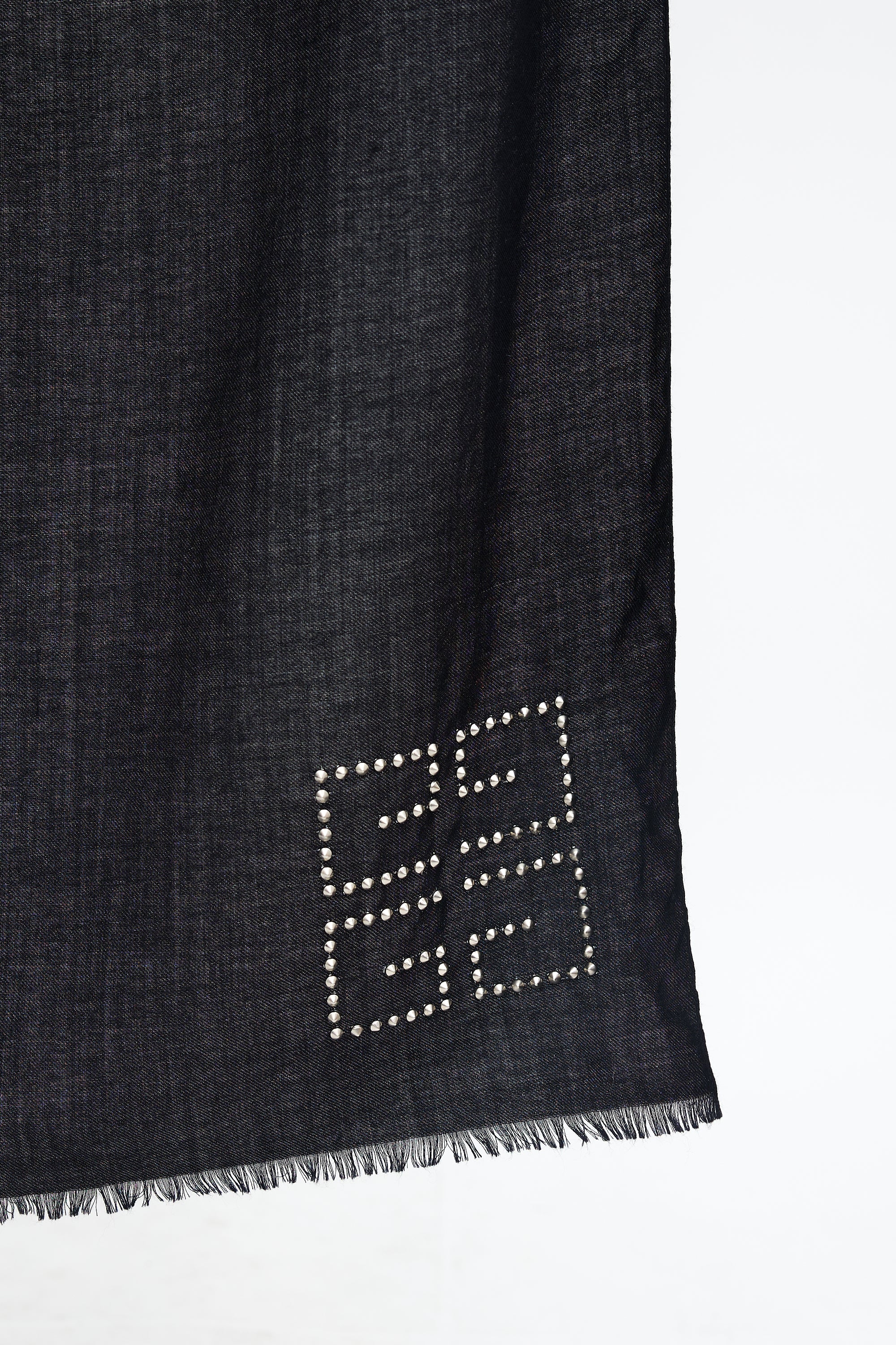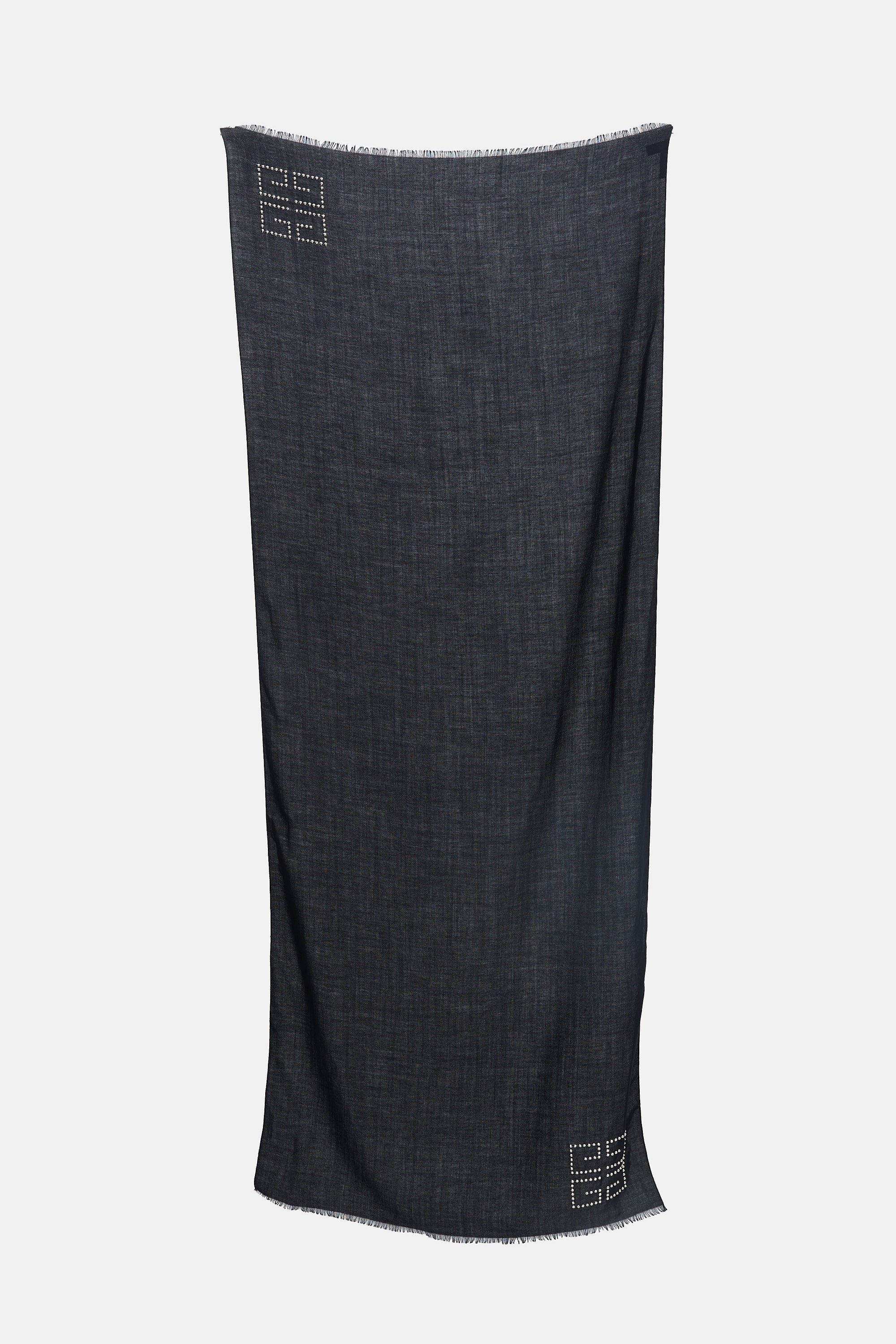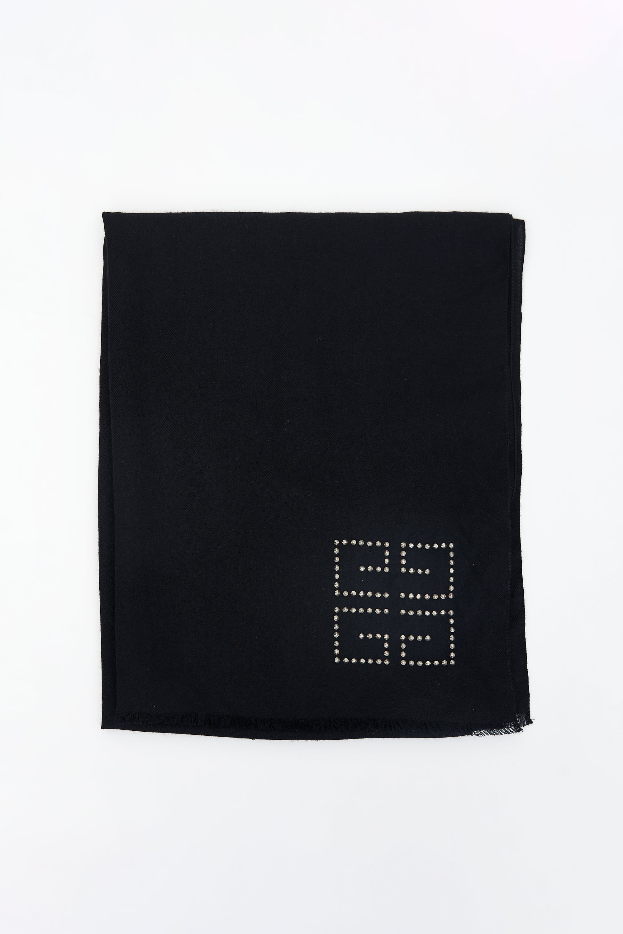 Pre-owned Givenchy black cashmere and silk scarf featuring silver tone studded 4G logo and fringe ends.