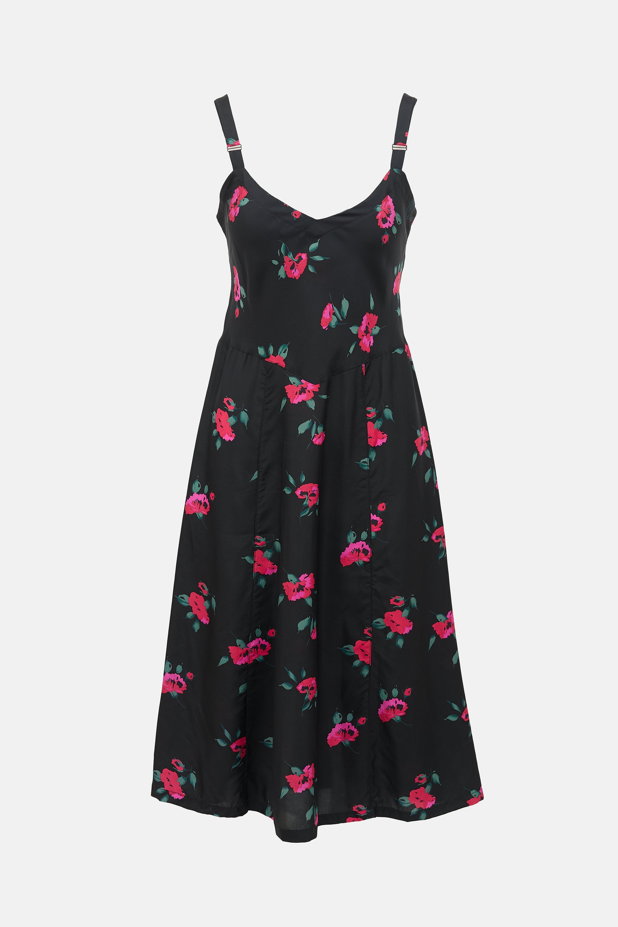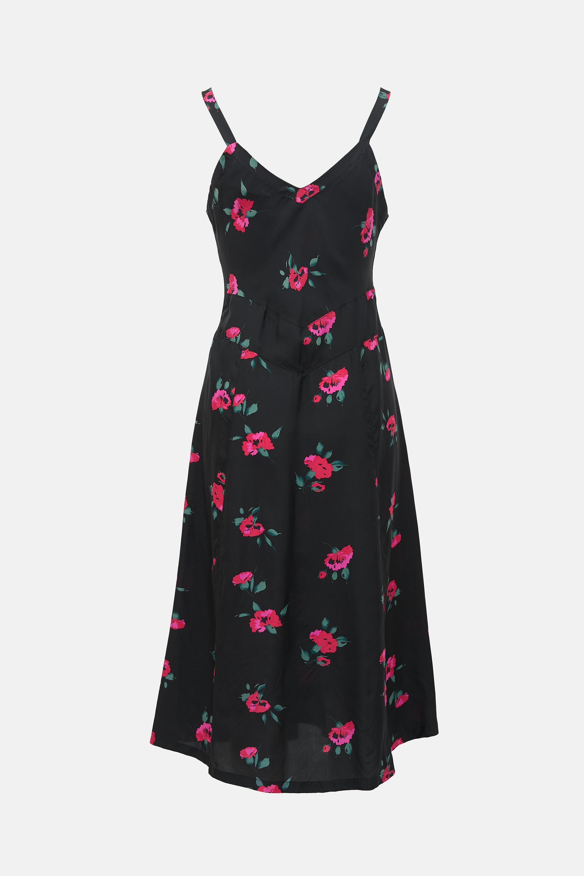 Pre-owned Horses Atelier black silk slip dress featuring a pink floral print throughout, adjustable shoulder straps, V-neckline and back, and panelled construction.