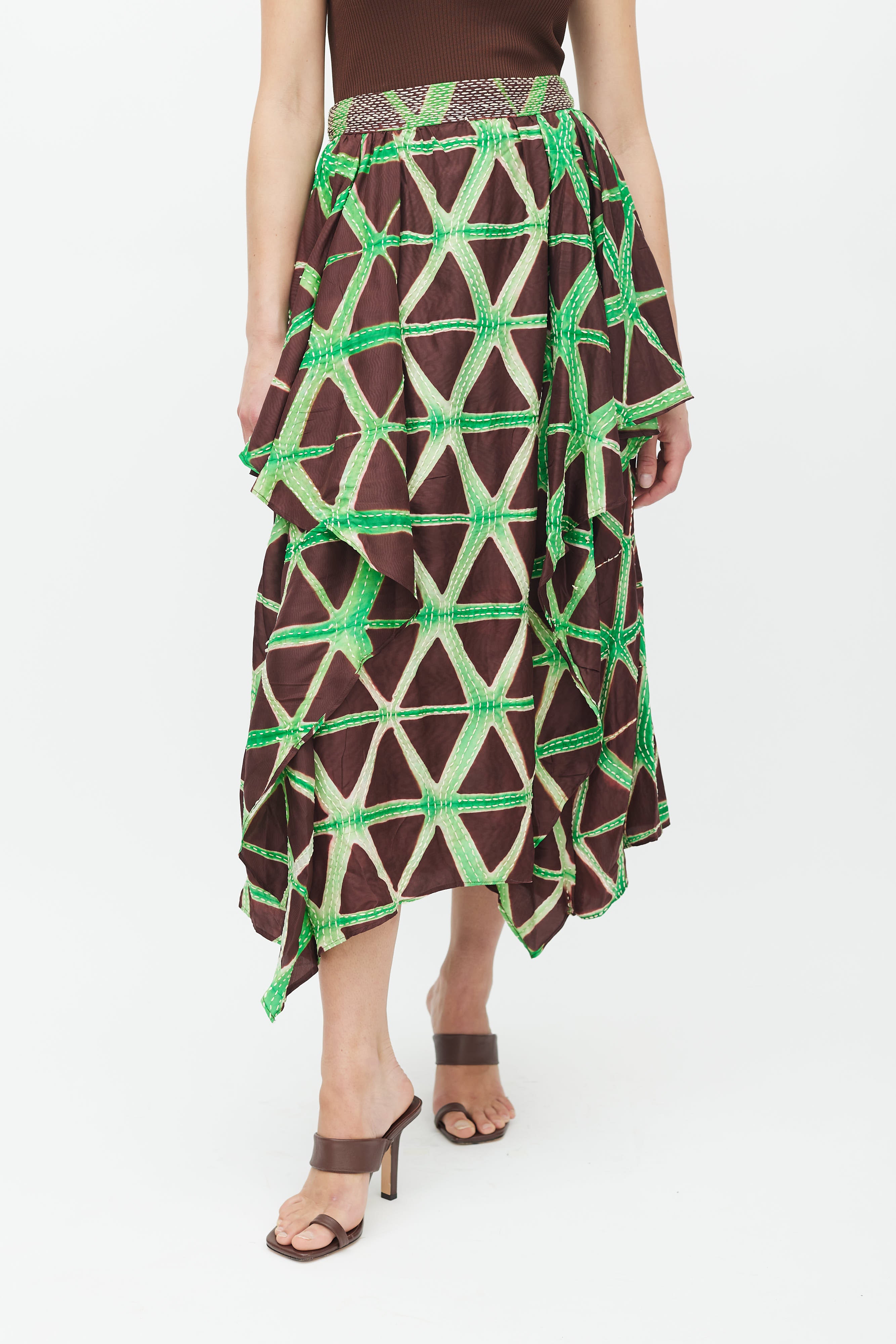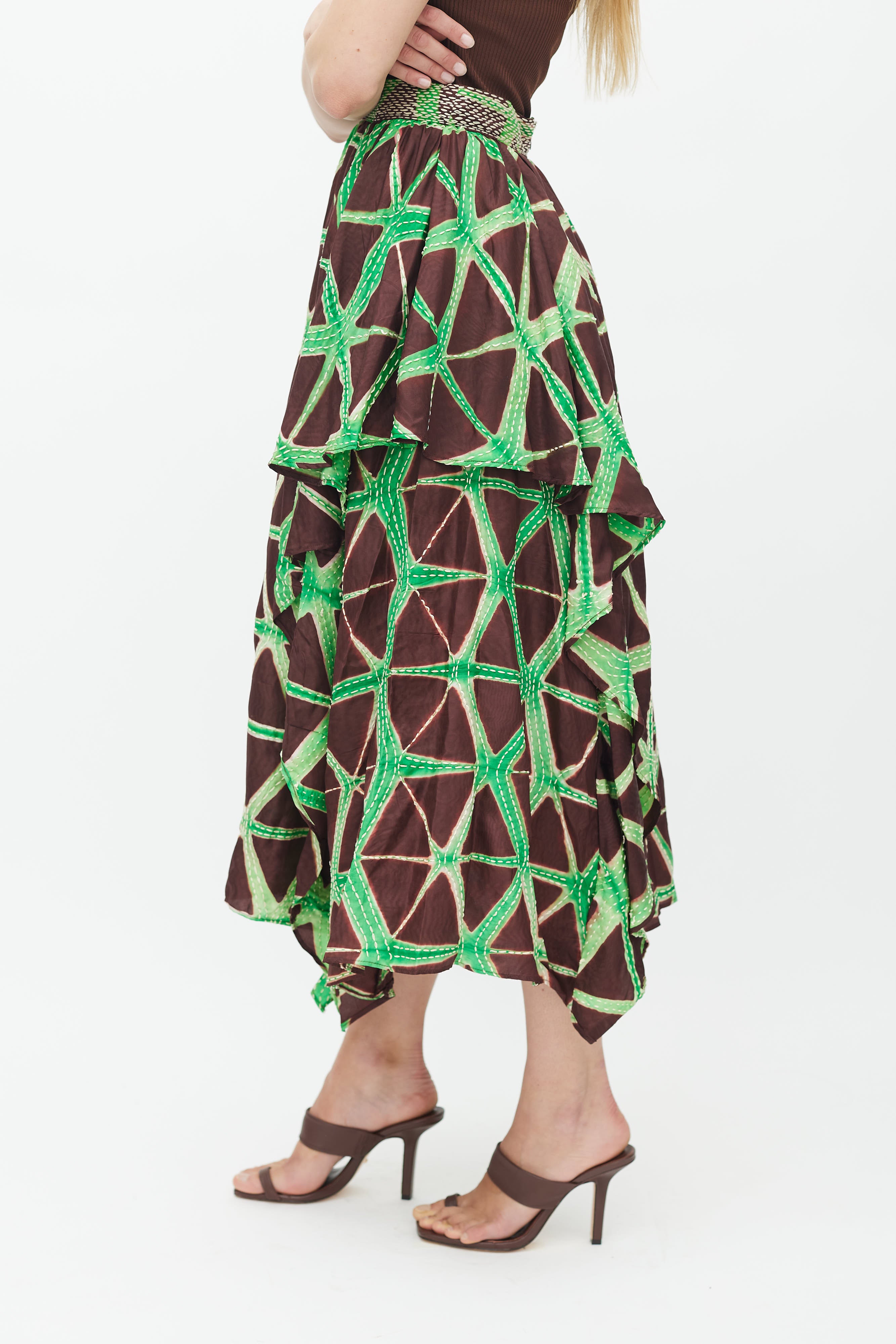 Brown & Green Savita Stitch Silk Skirt US 6 Size Guide