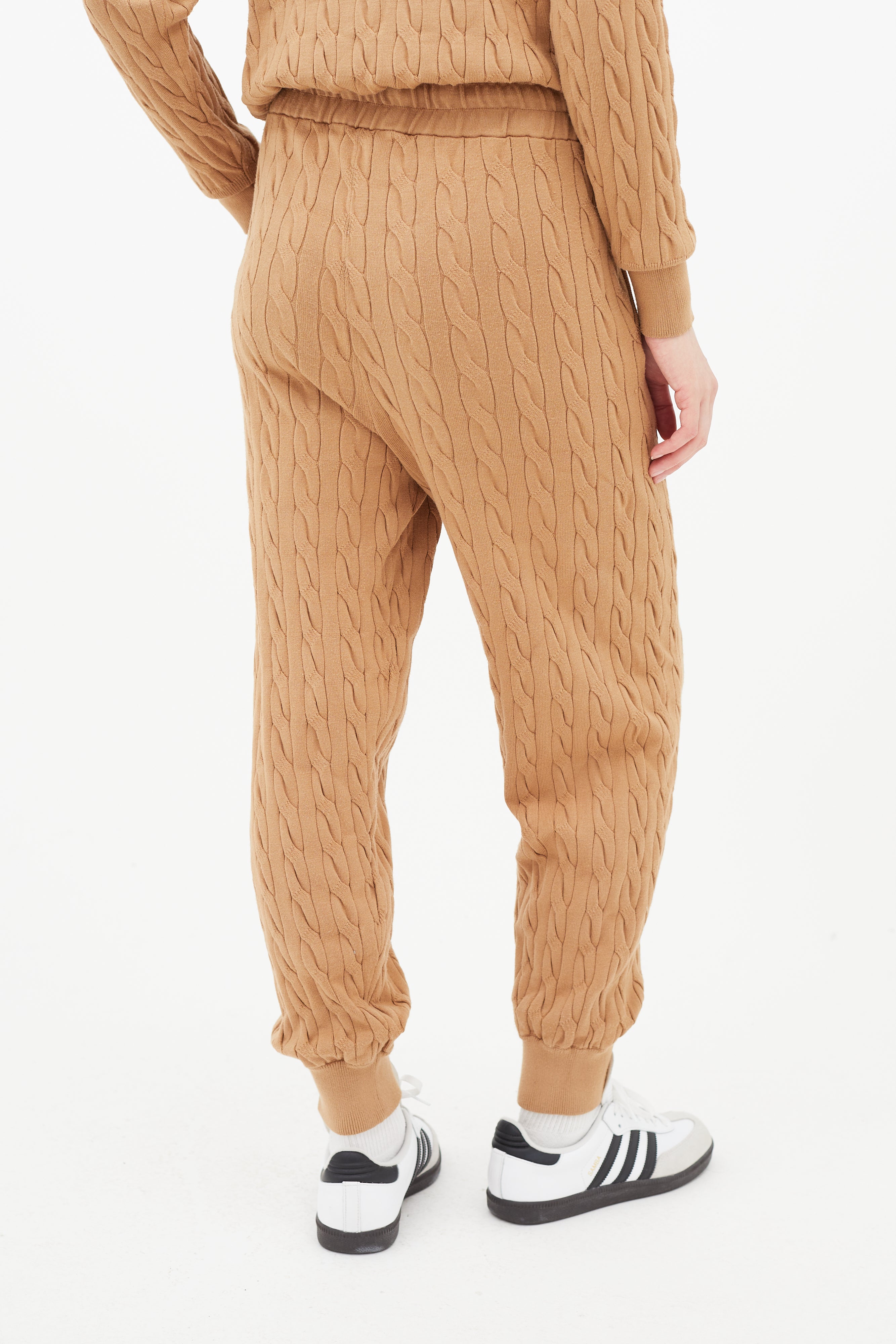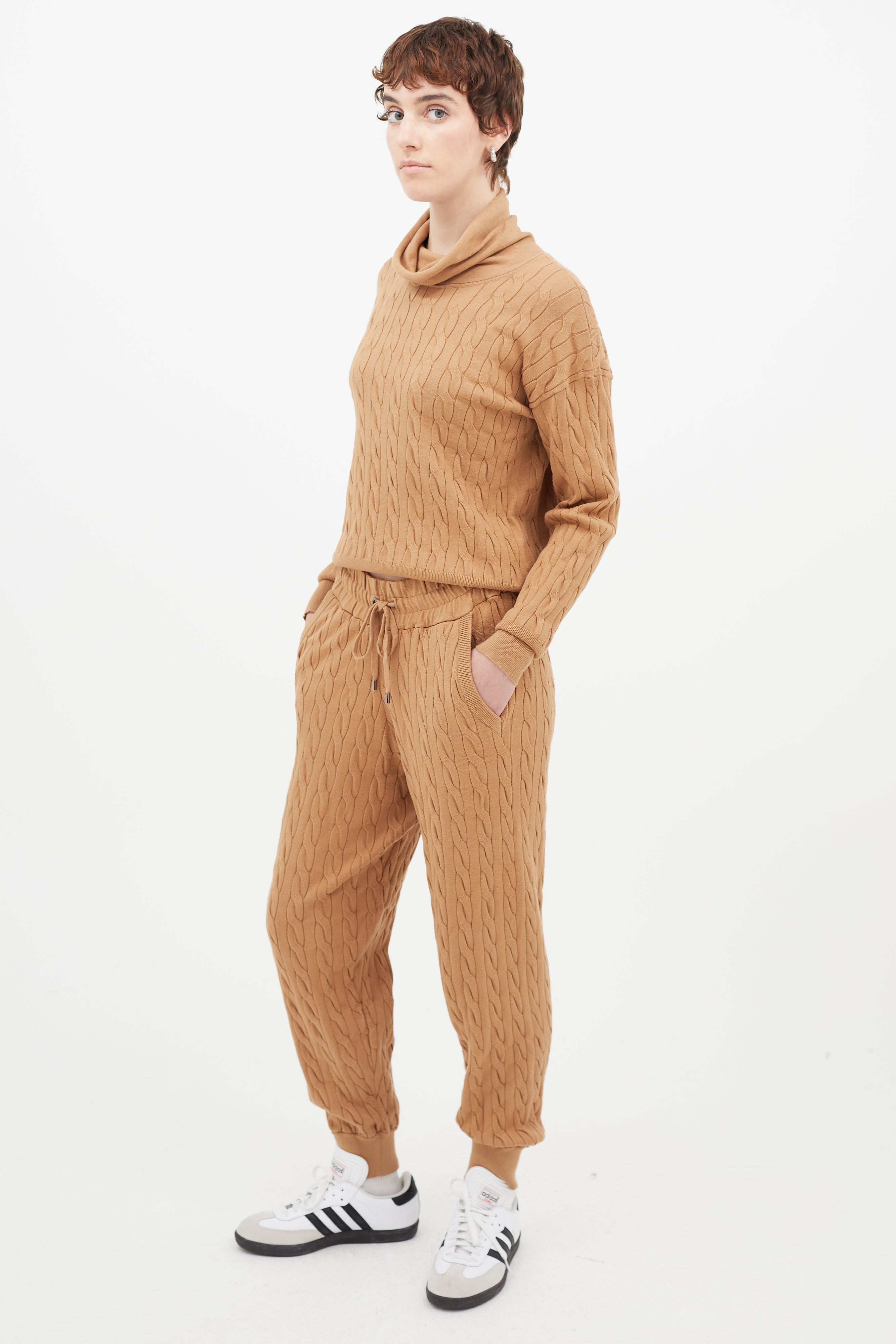 Pre-owned Veronica Beard brown joggers featuring a cableknit weave, elasticized drawstring waist, two slip pockets at hip, and ribbed cuff.