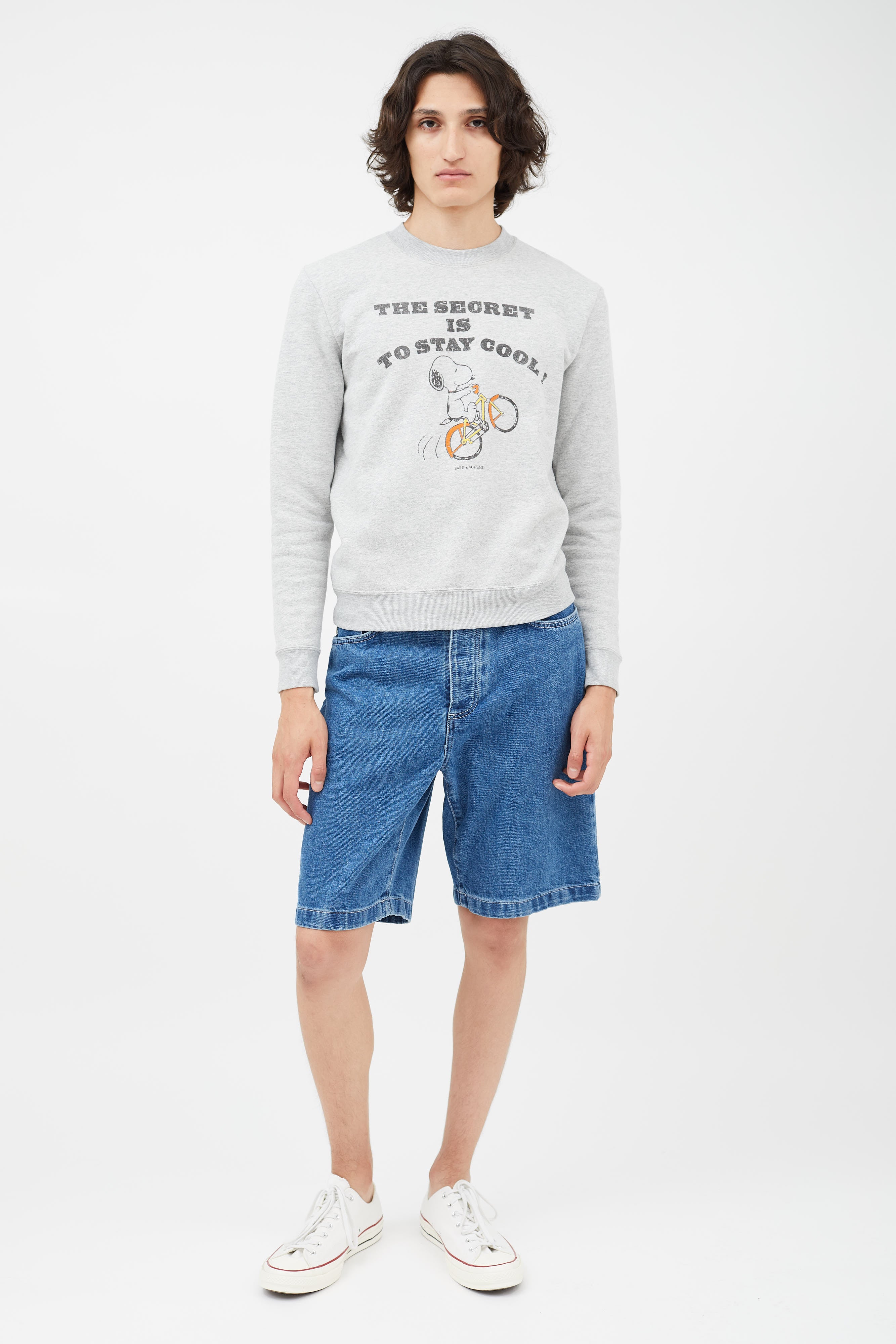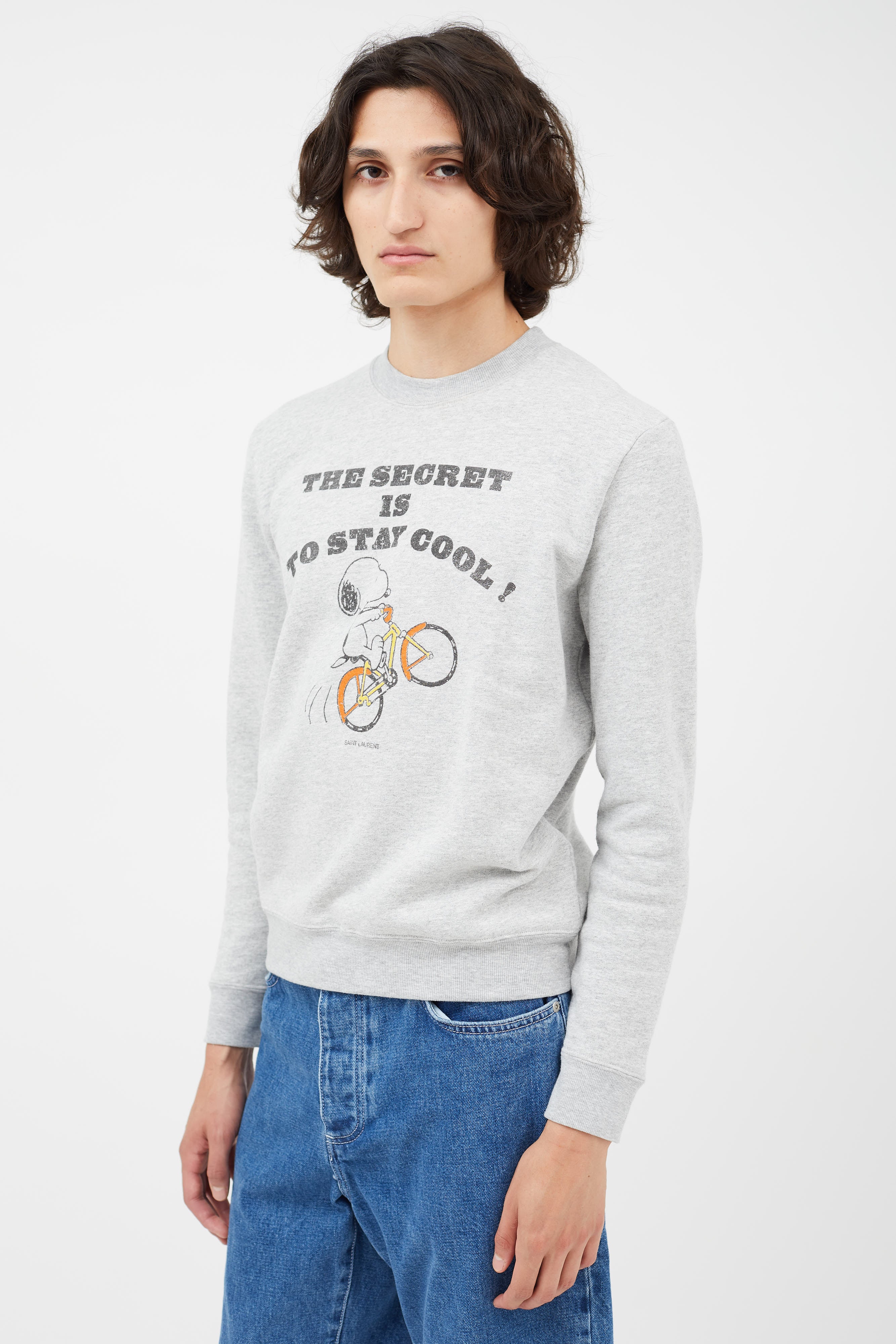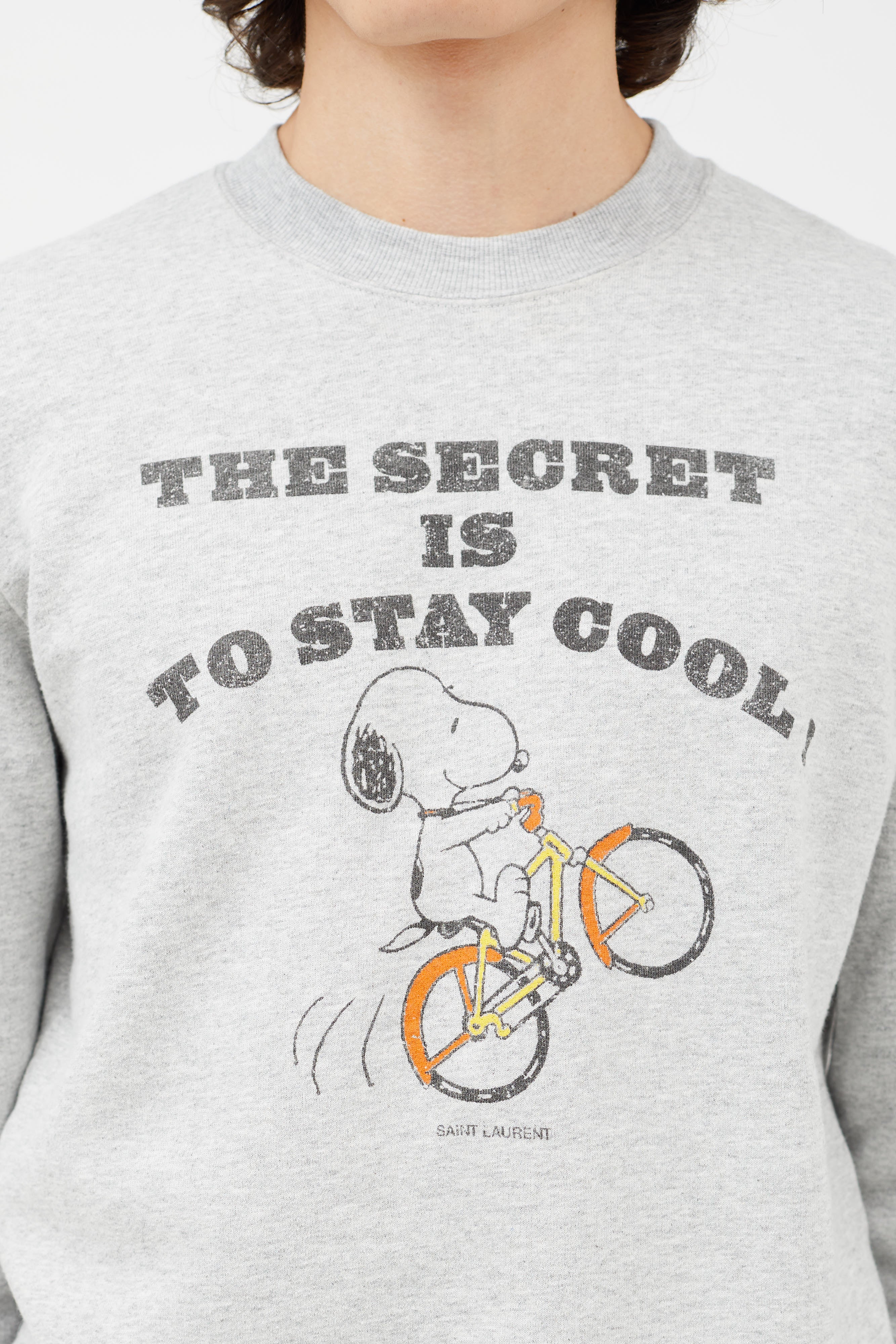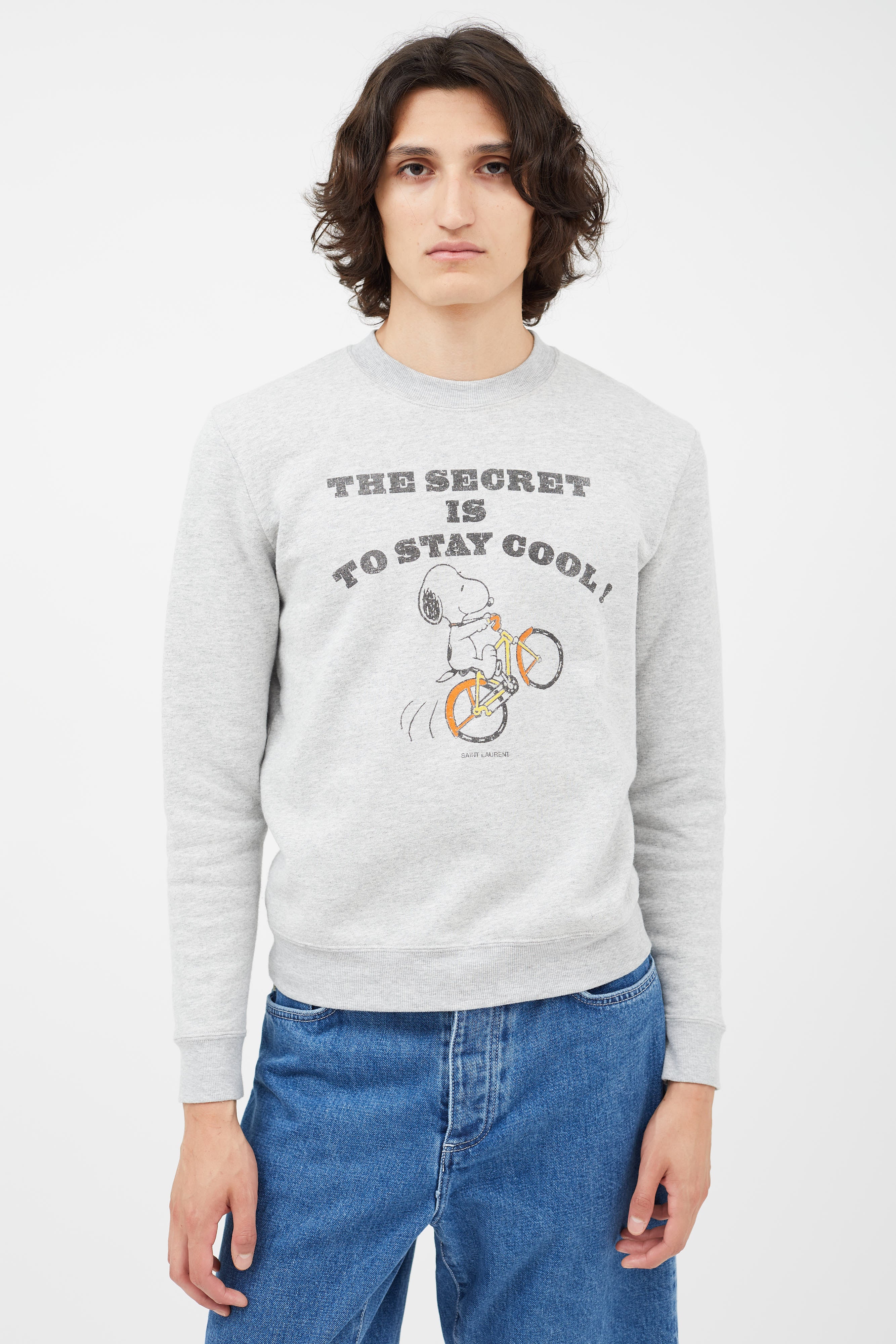 Pre-owned Saint Laurent grey sweatshirt featuring a multicolour Snoopy print at front, crew neckline, and ribbed hem.