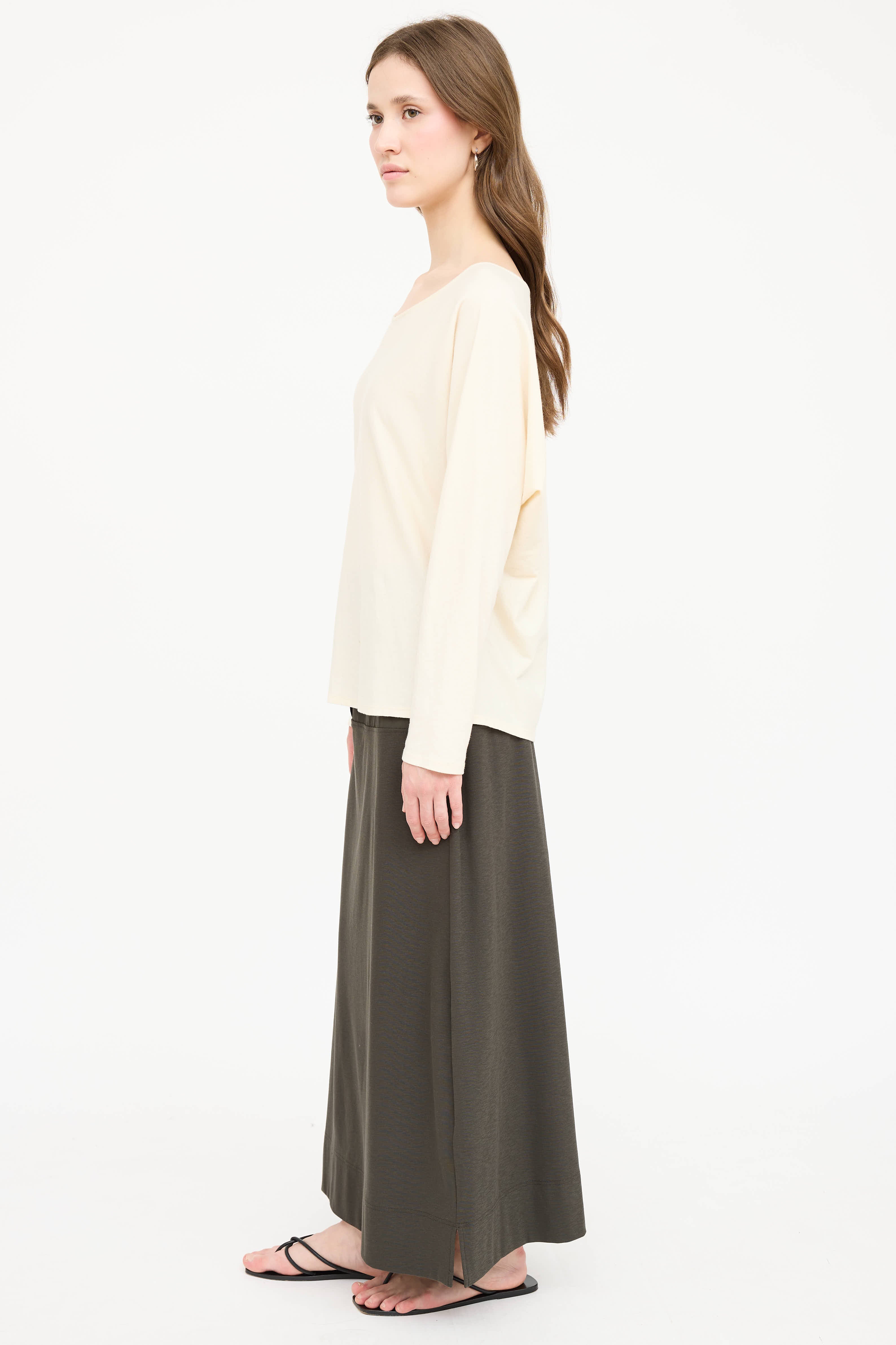 Pre-owned The Row cream knit top featuring a boat neckline, long batwing sleeves, and centre seam at back.