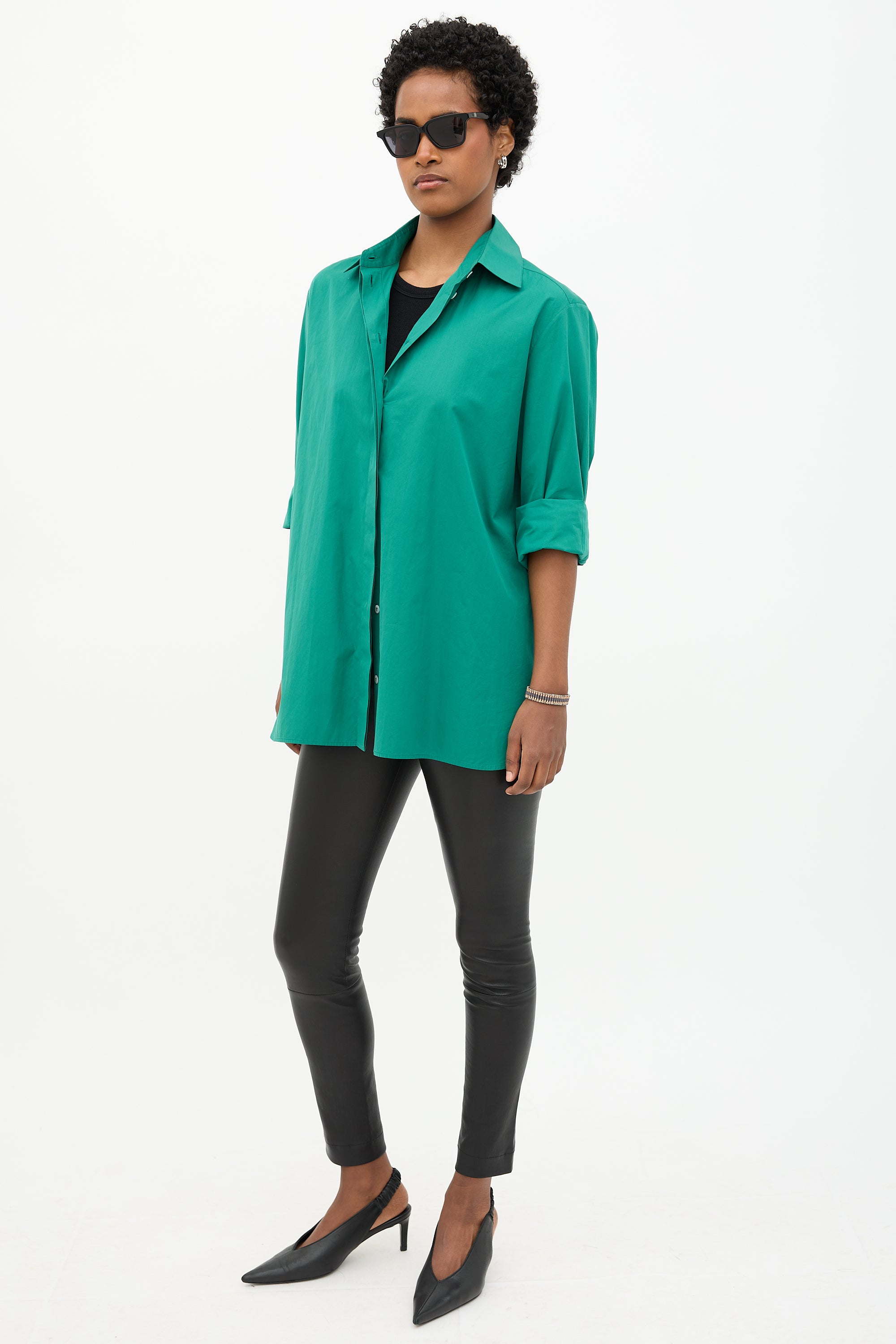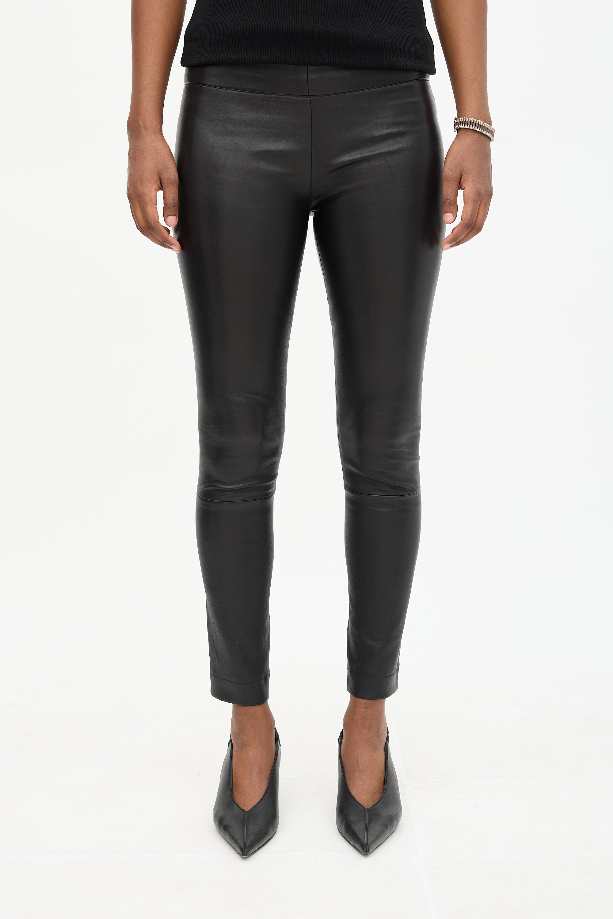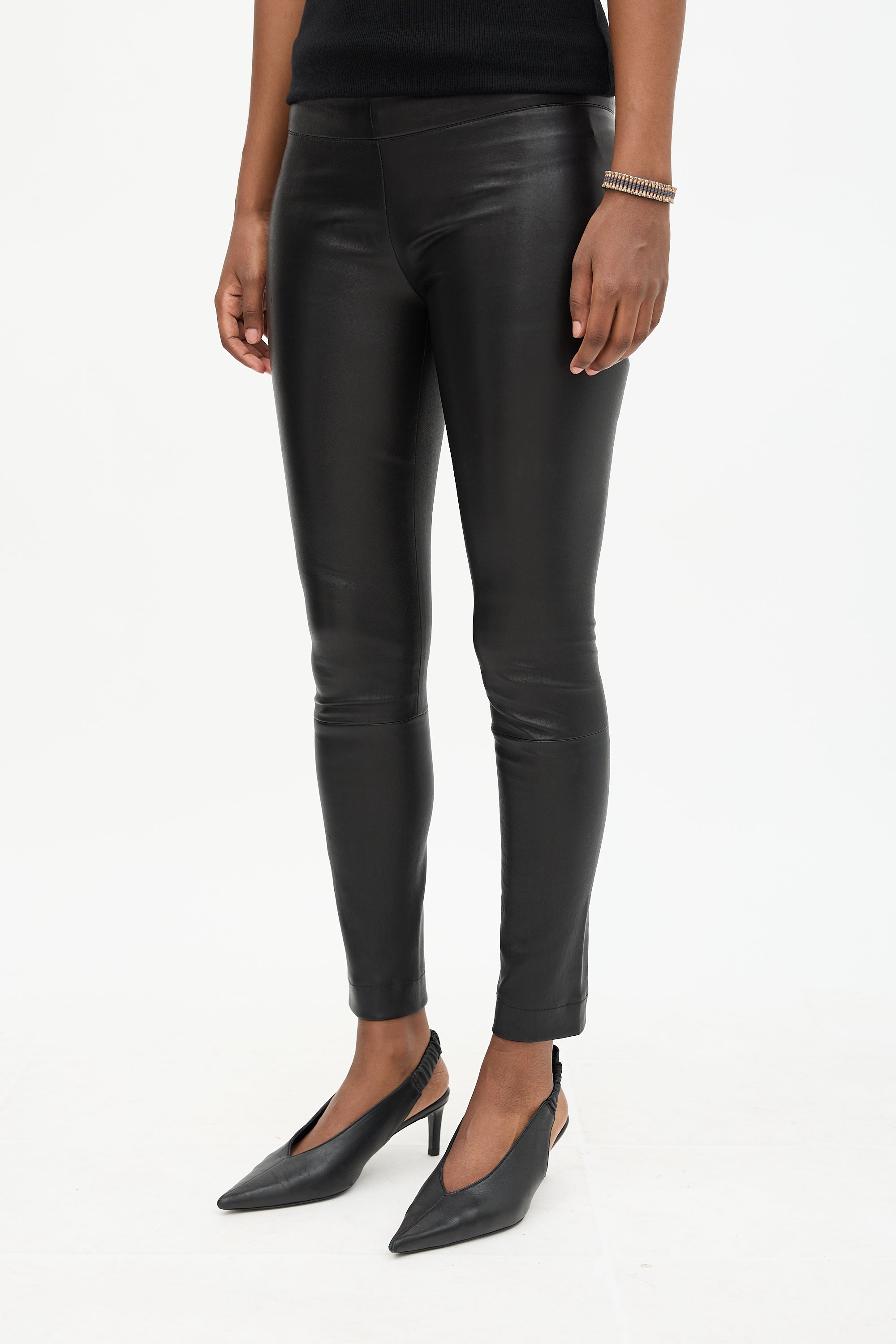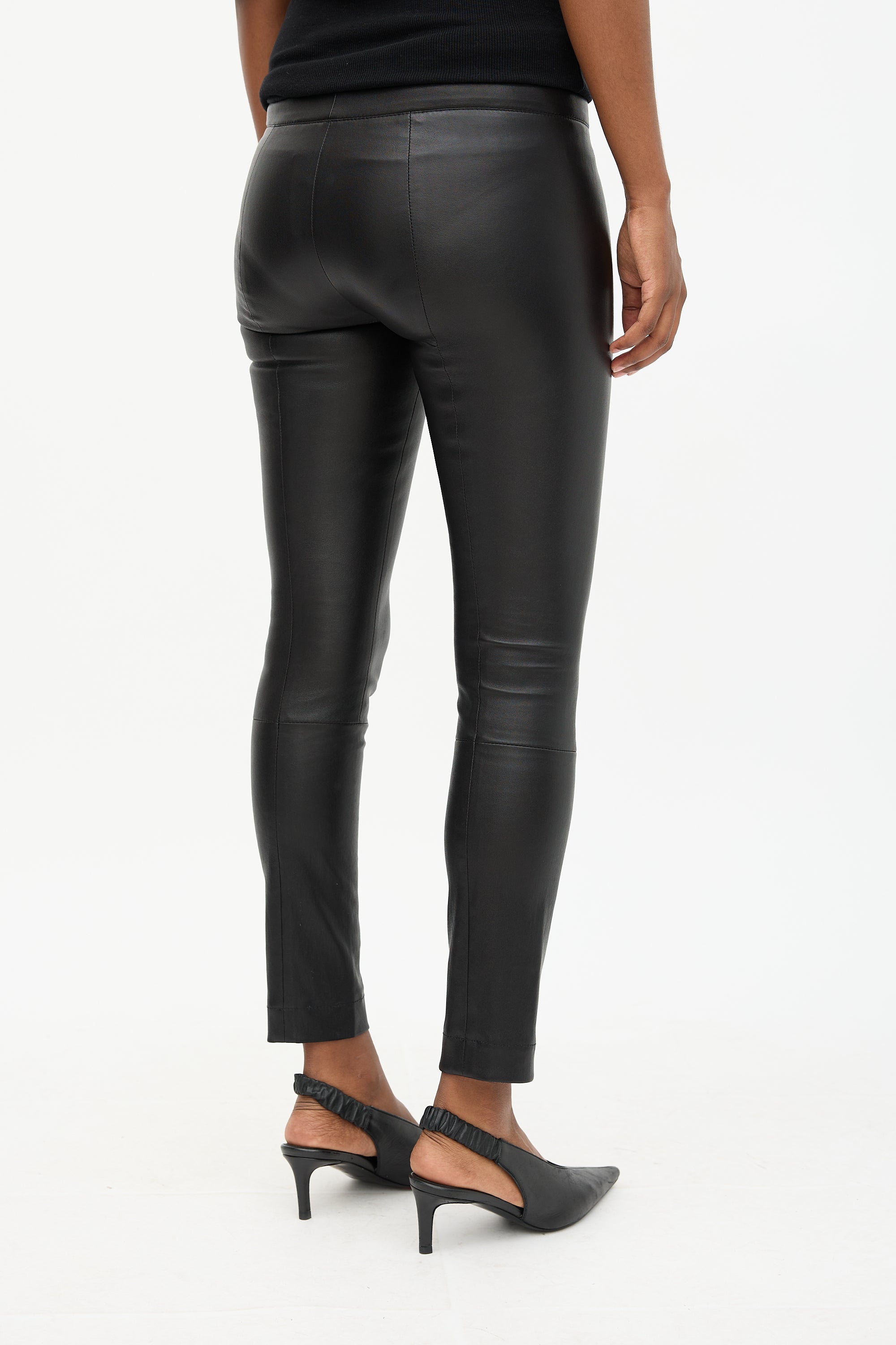 Pre-owned The Row black stretch Moto leather leggings featuring mid rise and elasticized waist.