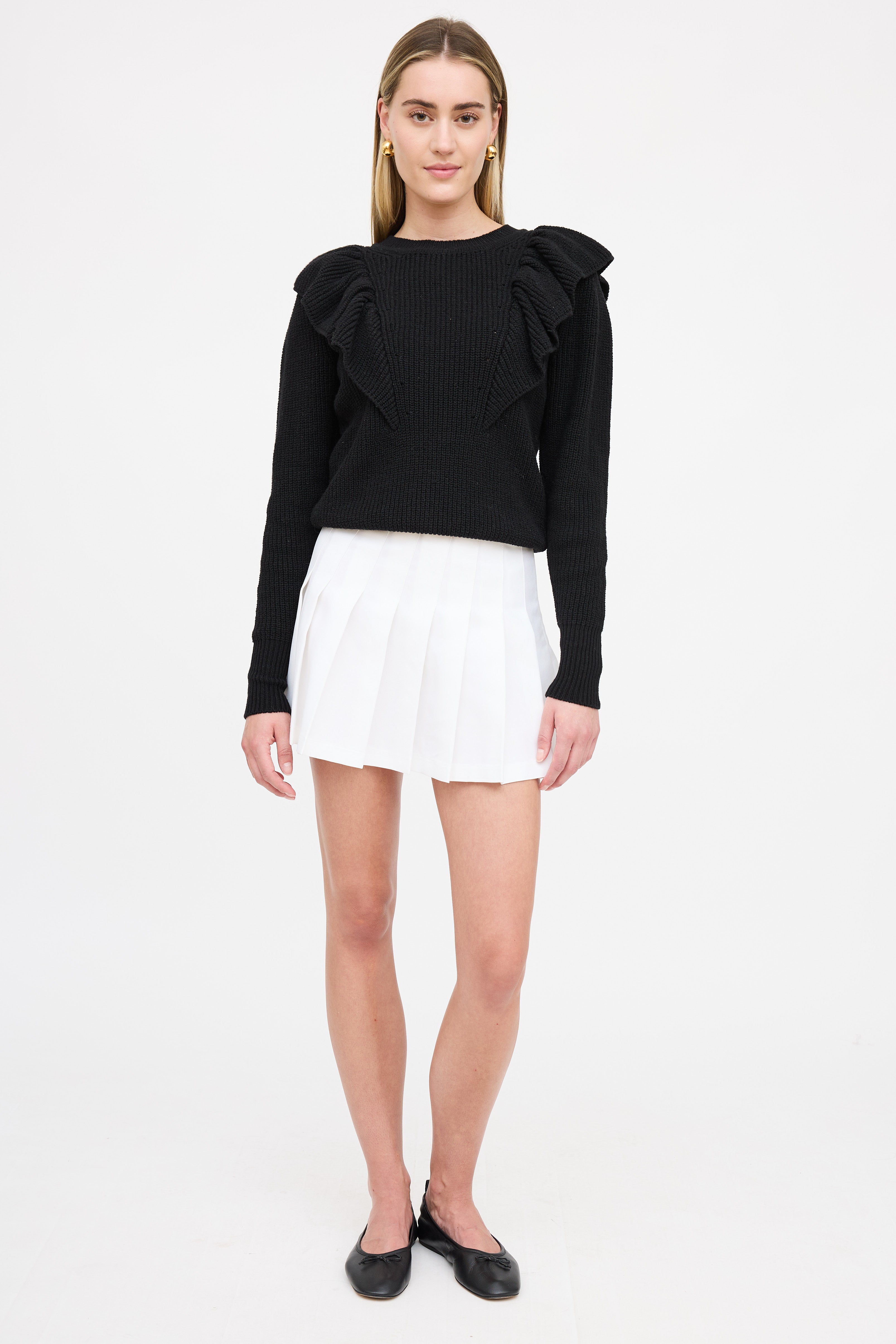 Pre-owned Isabel Marant black long sleeve sweater featuring round neckline, ruffle trim at front and at back, and ribbed trims.