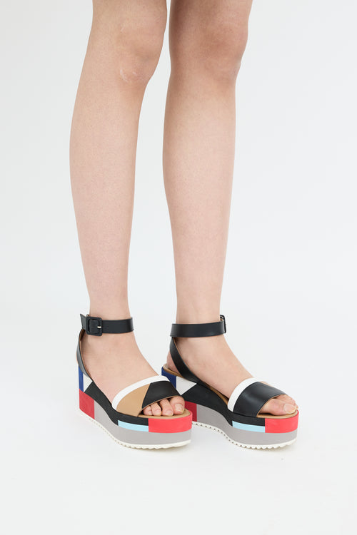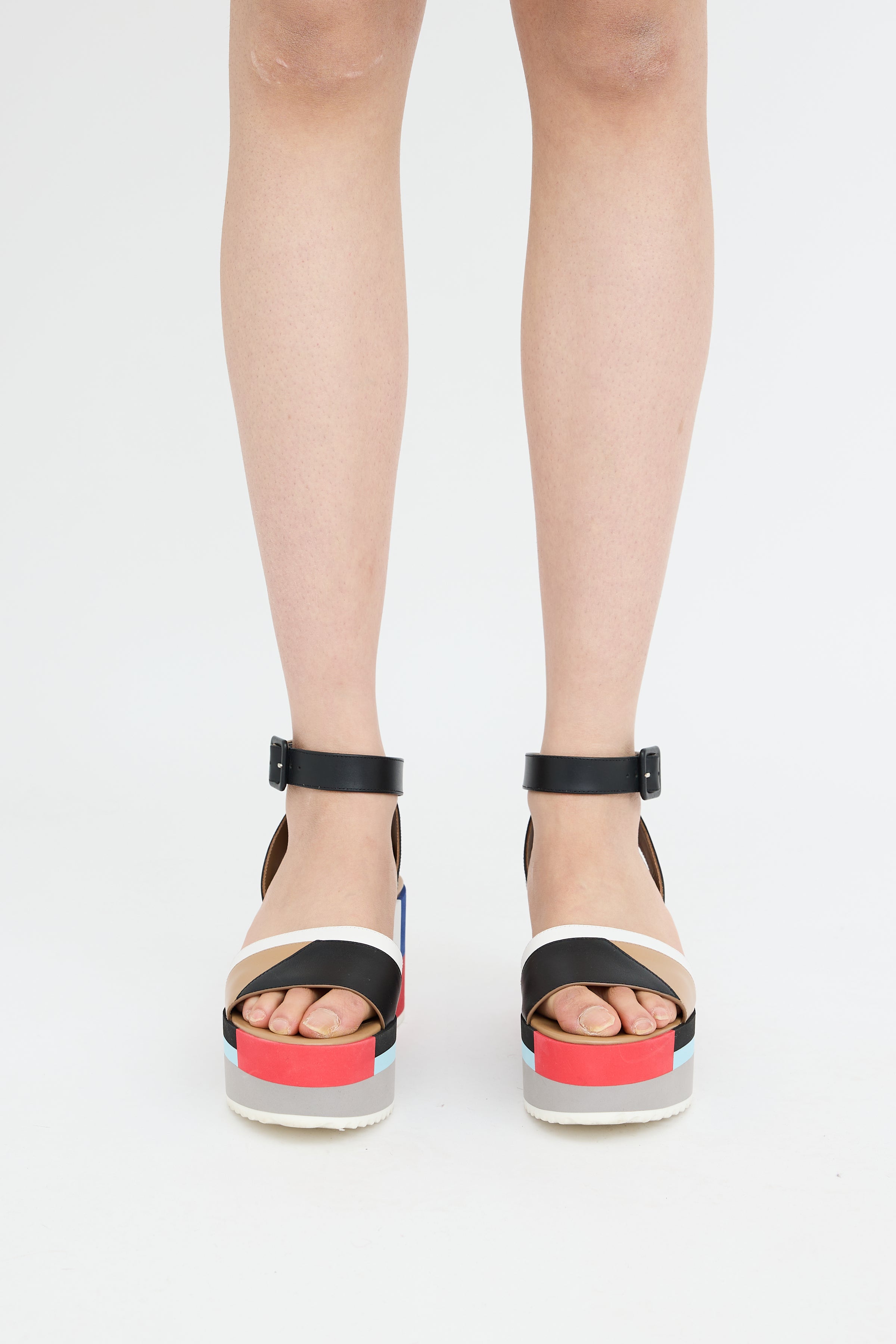 Pre-owned Hermès multicolour colour-block sandals featuring round toe, strap on toe box, platform midsole, adjustable ankle strap and treaded outsole.
