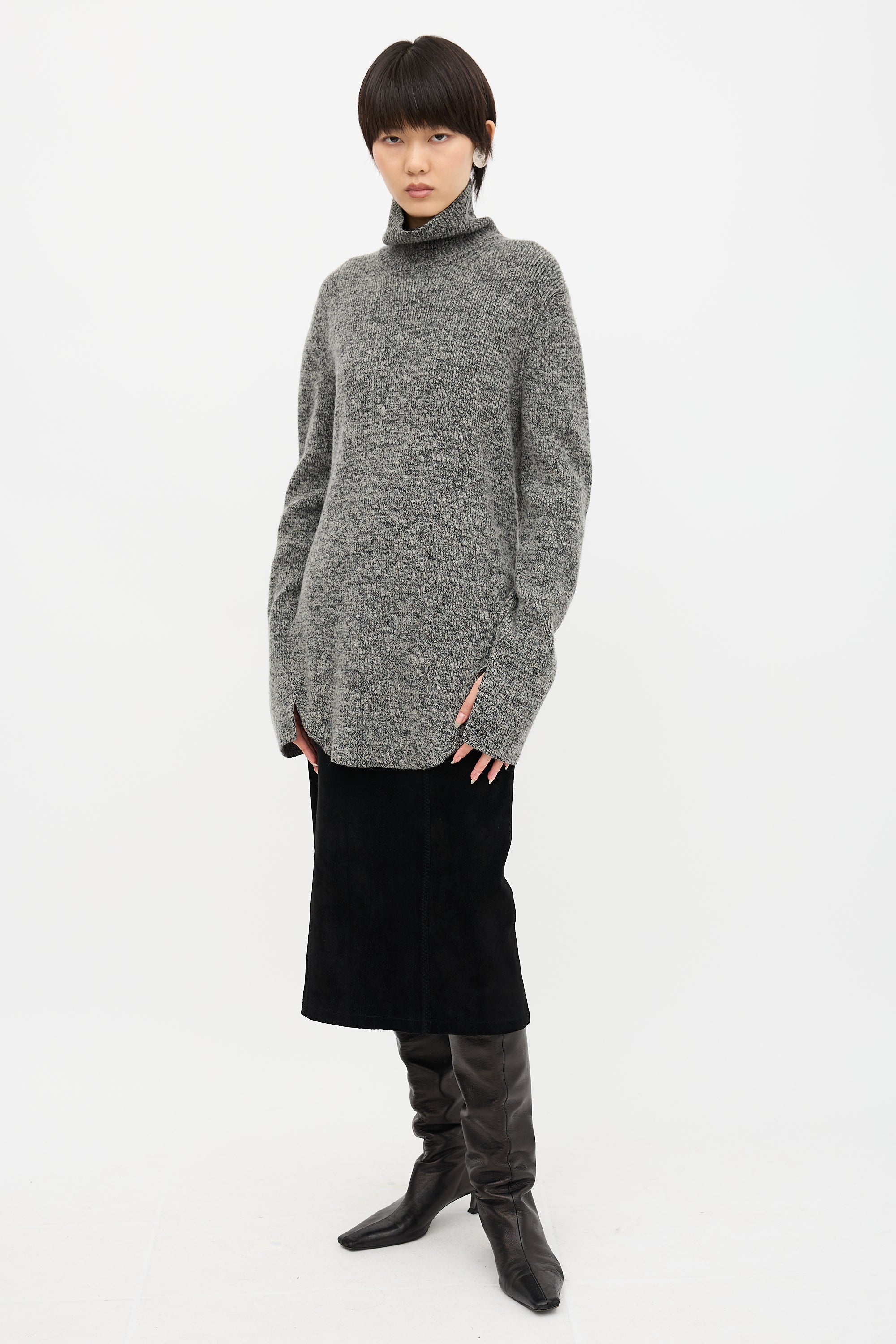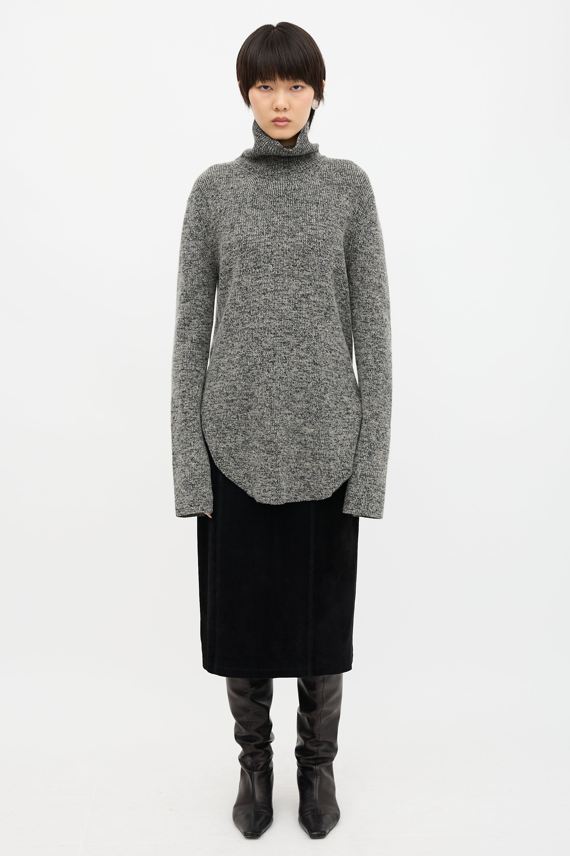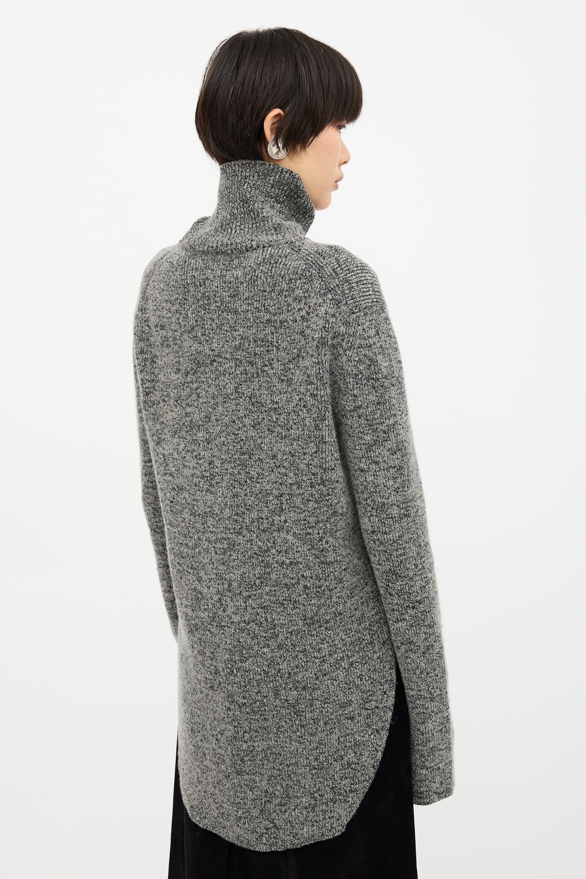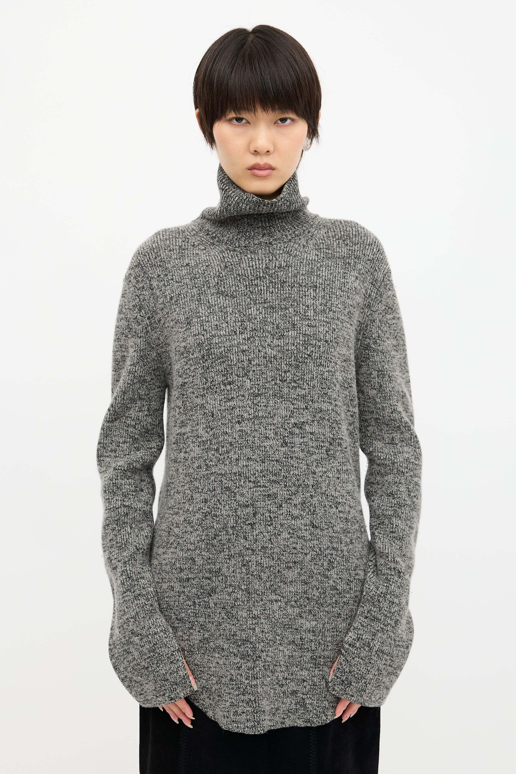 Pre-owned Celine grey melange knit sweater featuring turtleneck and split sides.