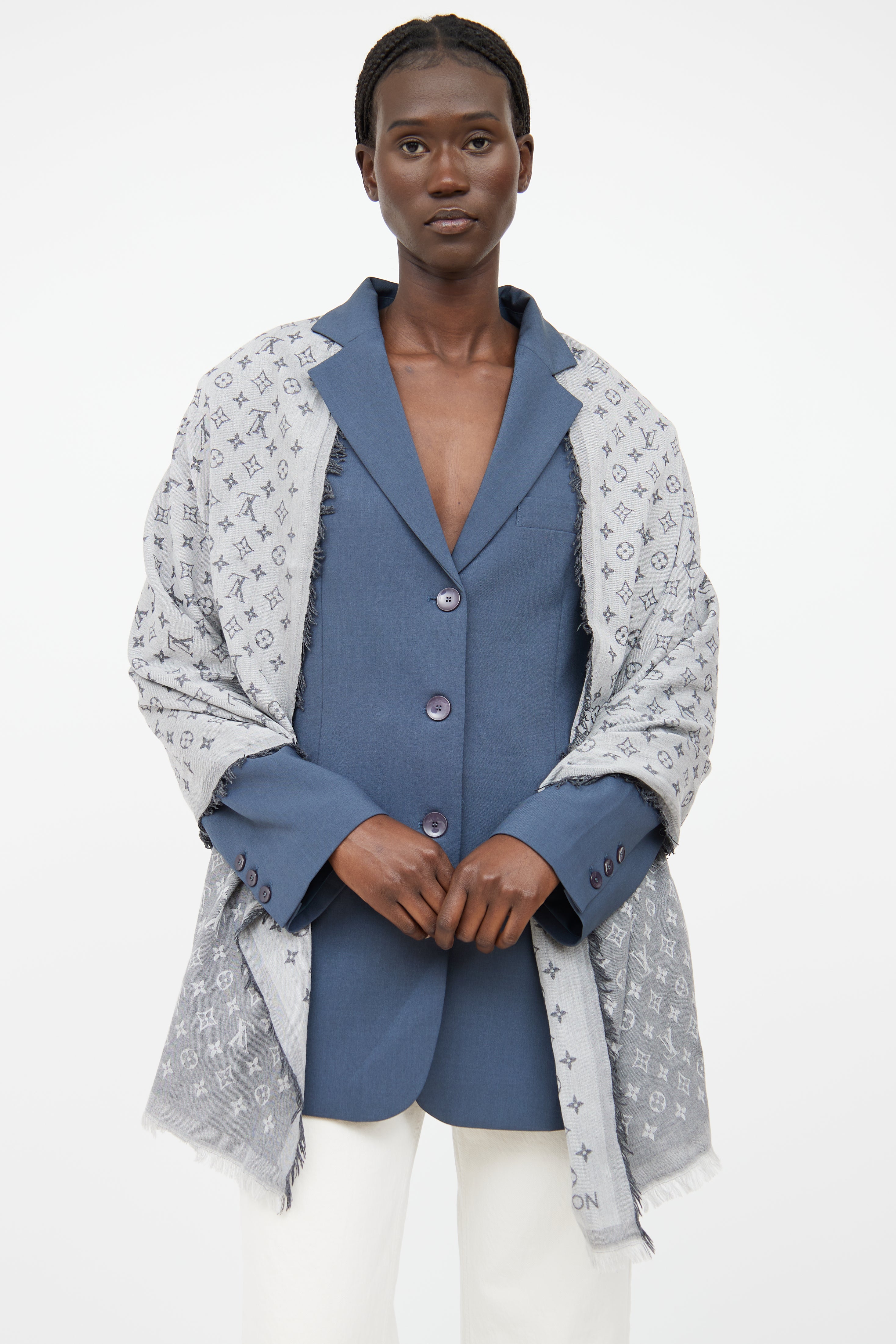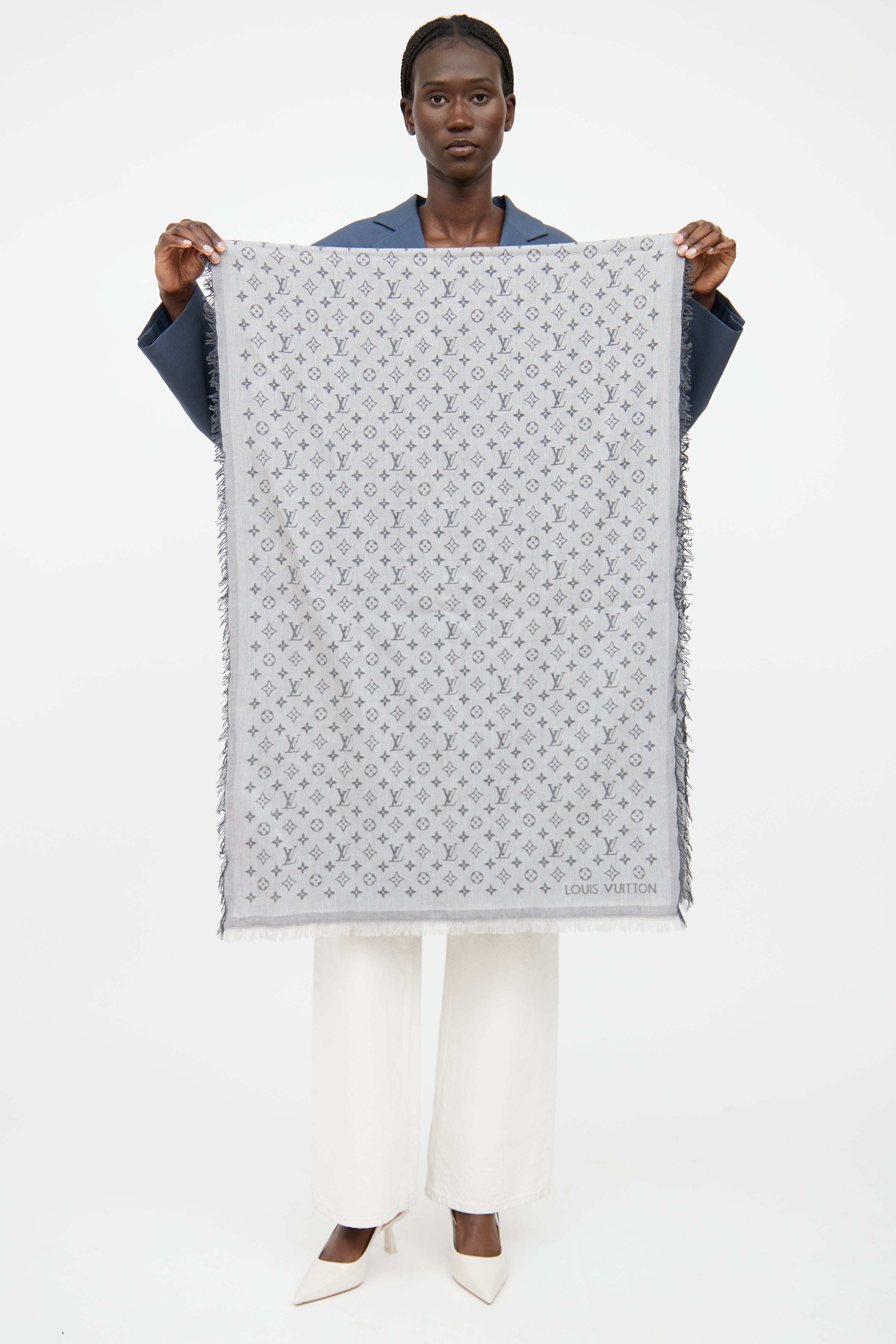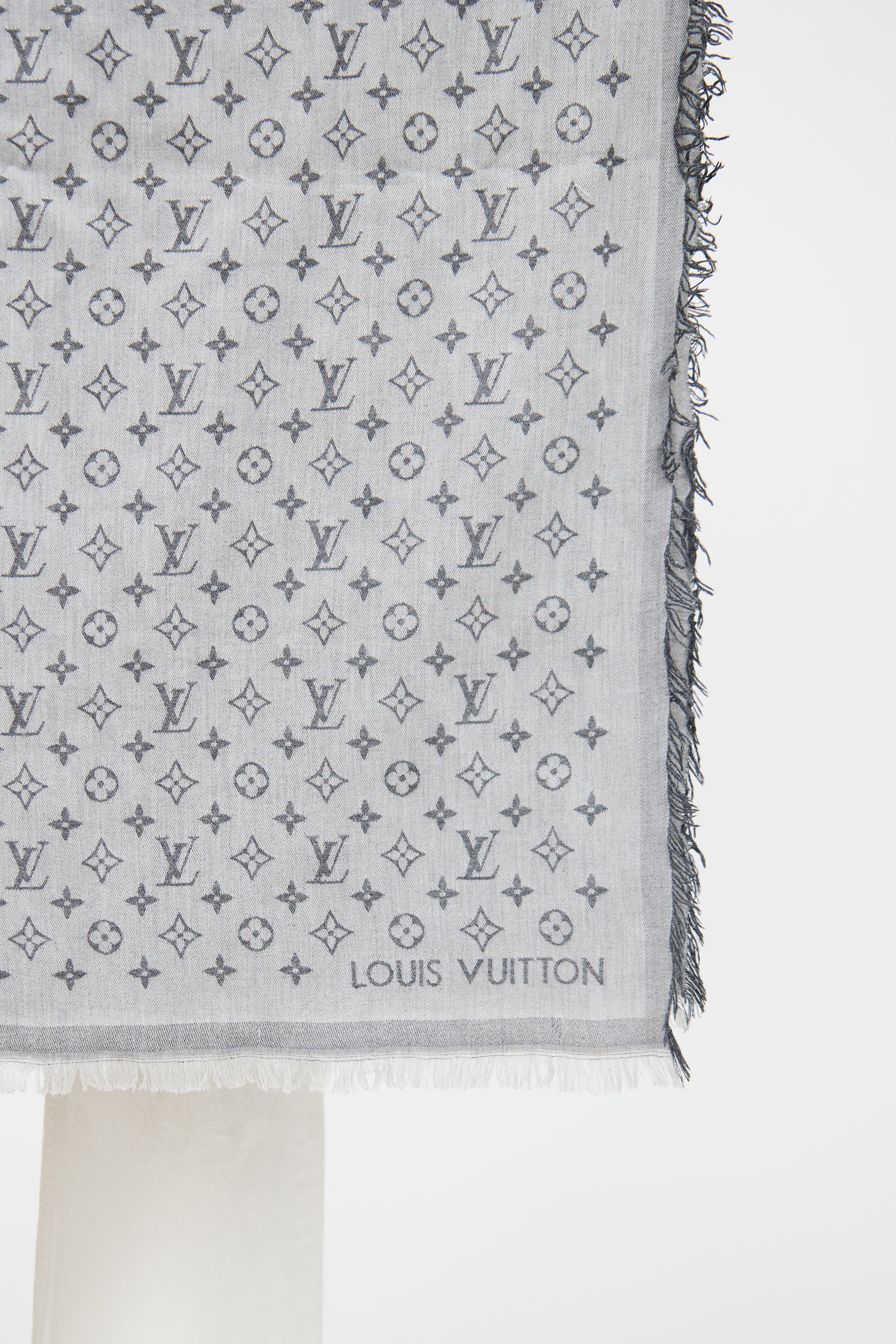 Pre-owned Louis Vuitton grey monogram scarf featuring monogram print throughout, woven word logo and fringe edges.