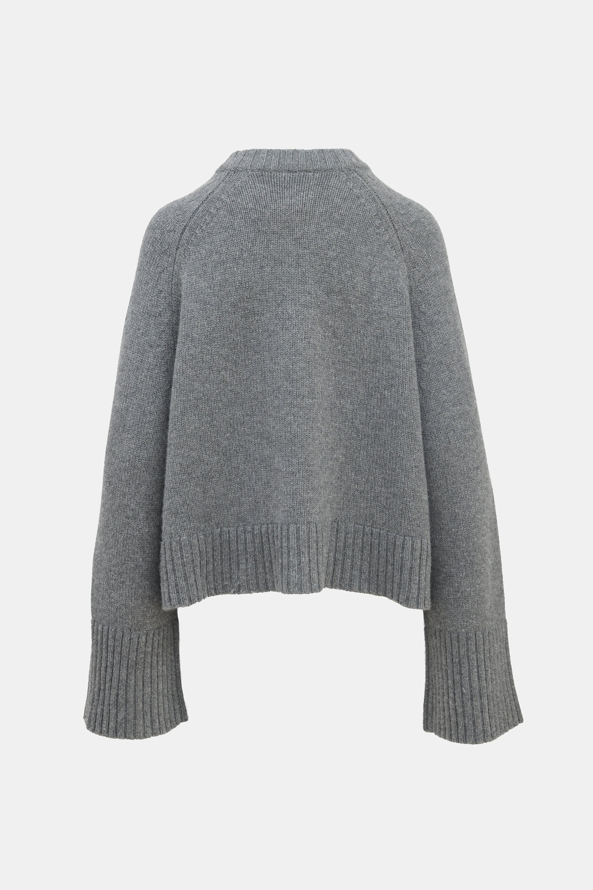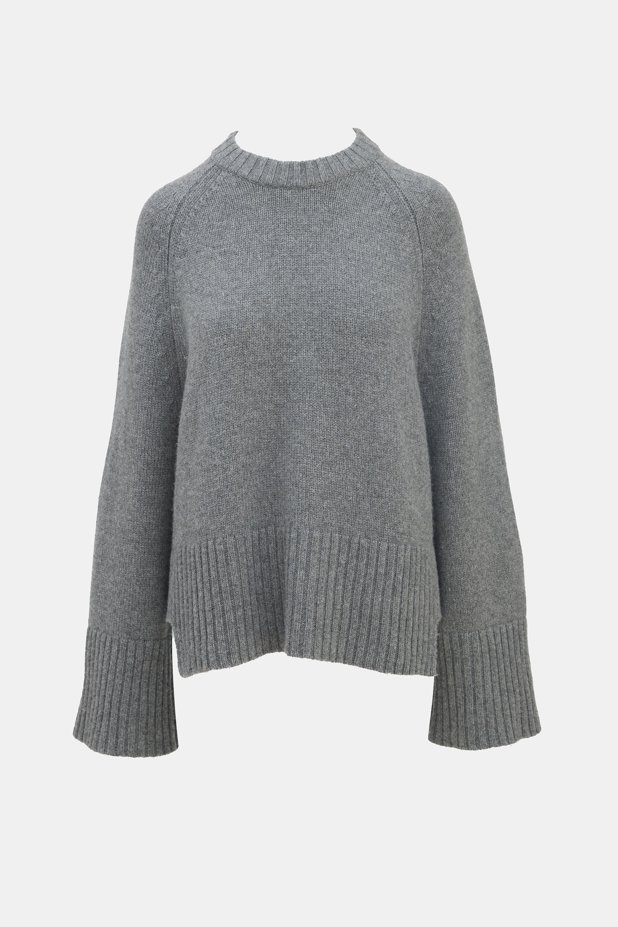 Pre-owned Smythe grey cashmere sweater featuring an oversized fit, crew neckline, ribbed trim, and cutout hem.