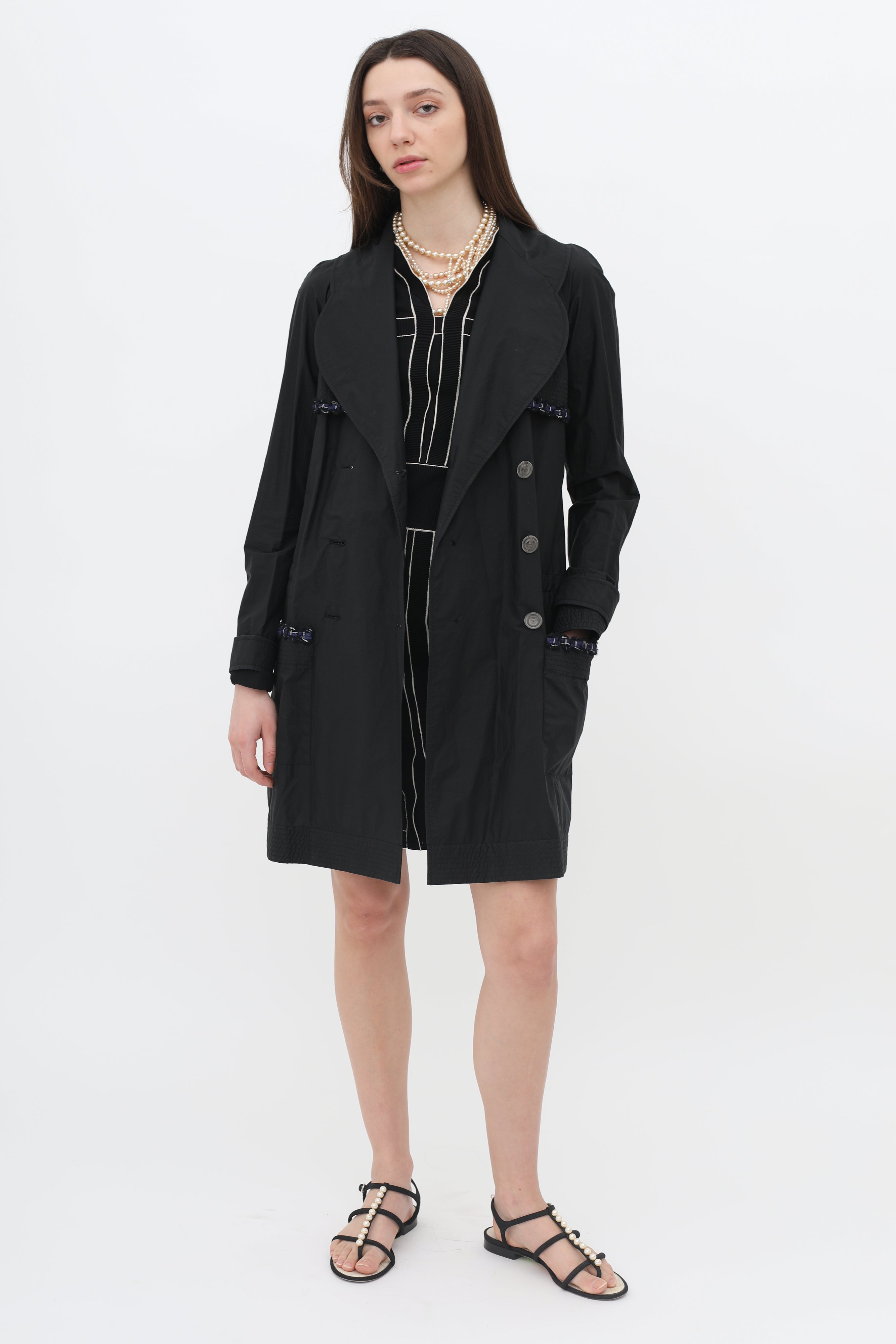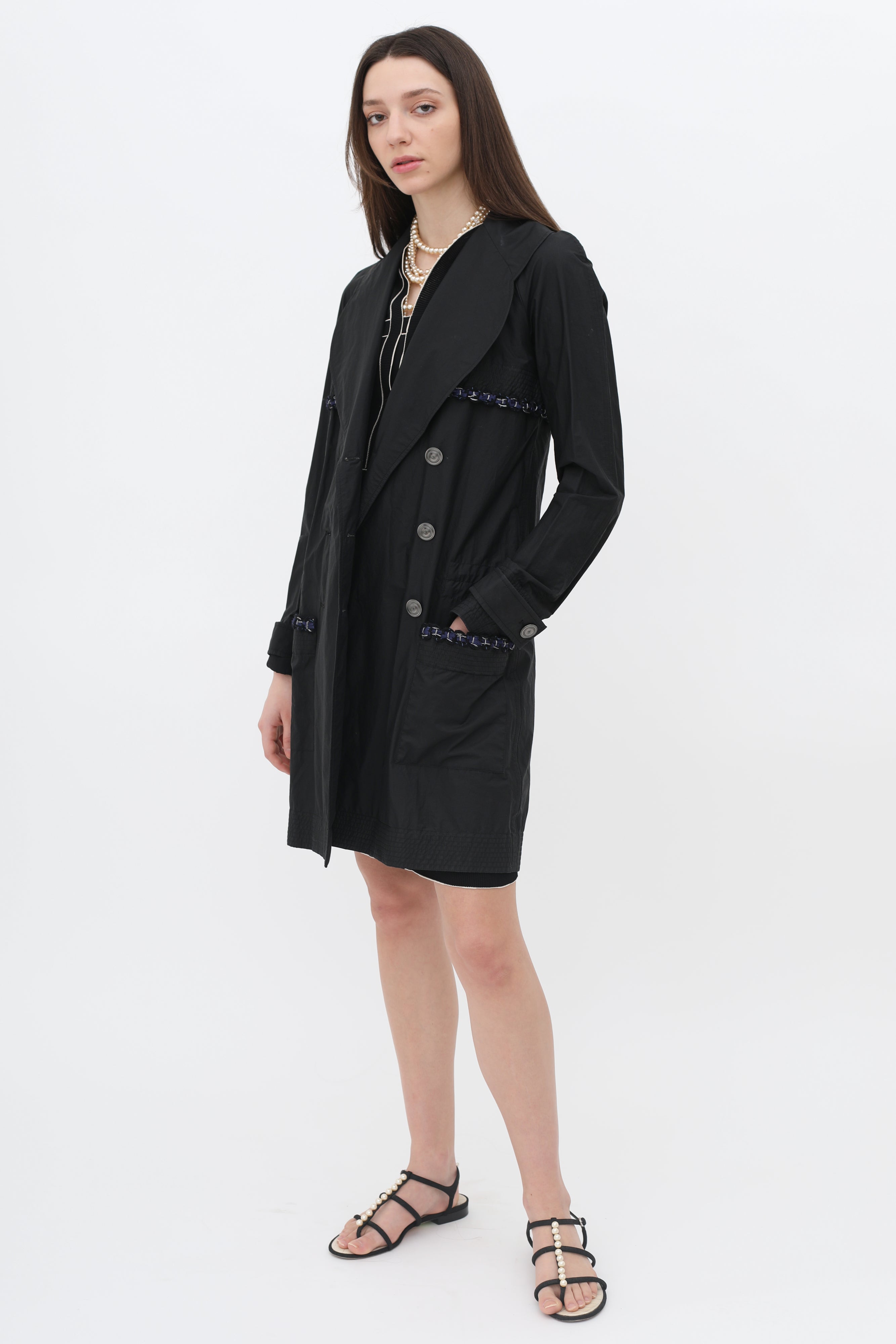 Chanel Double-Breasted Trim Rain Coat X-Small
