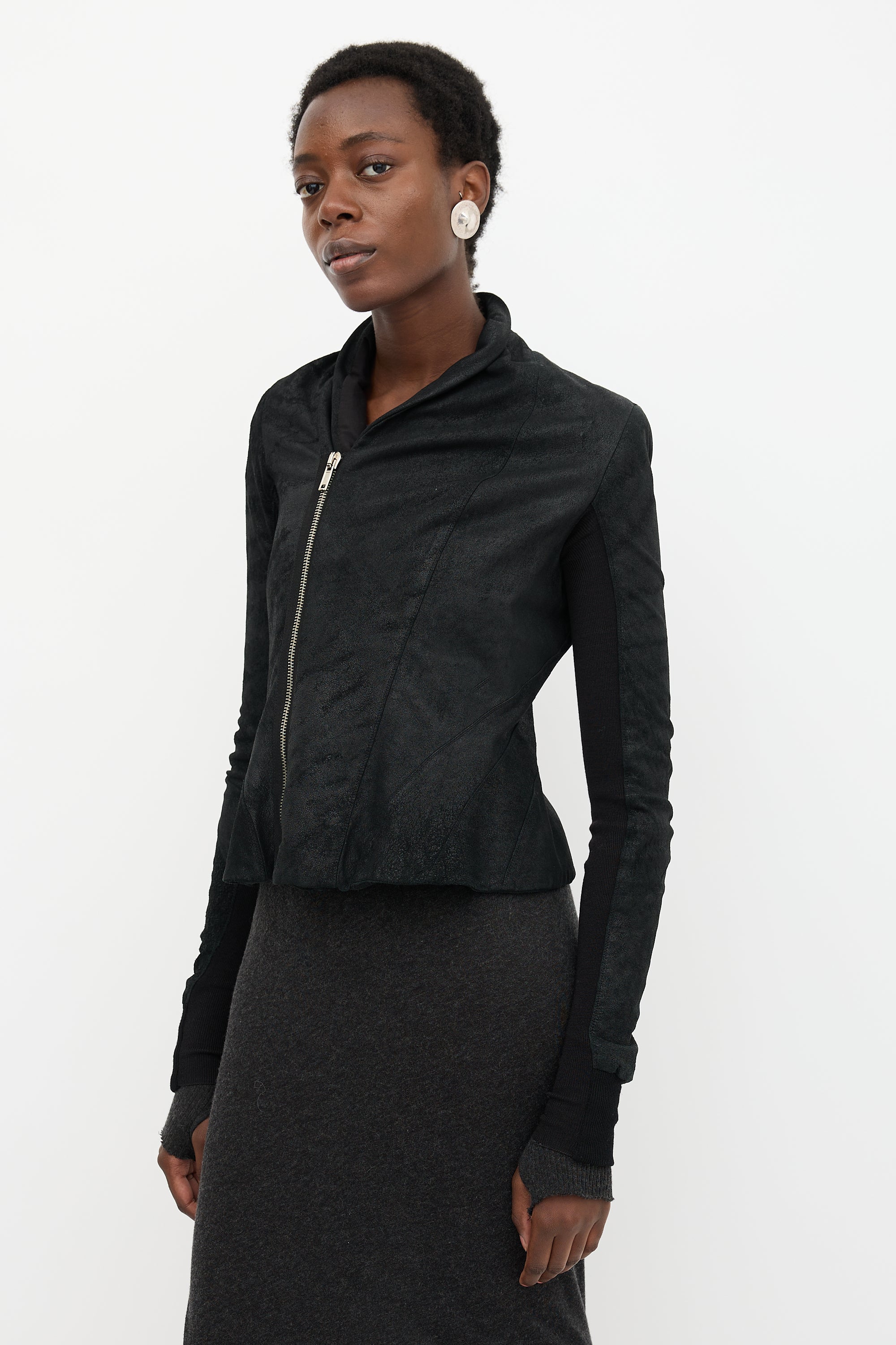 Rick Owens Leather Asymmetric Zip Jacket IT 40