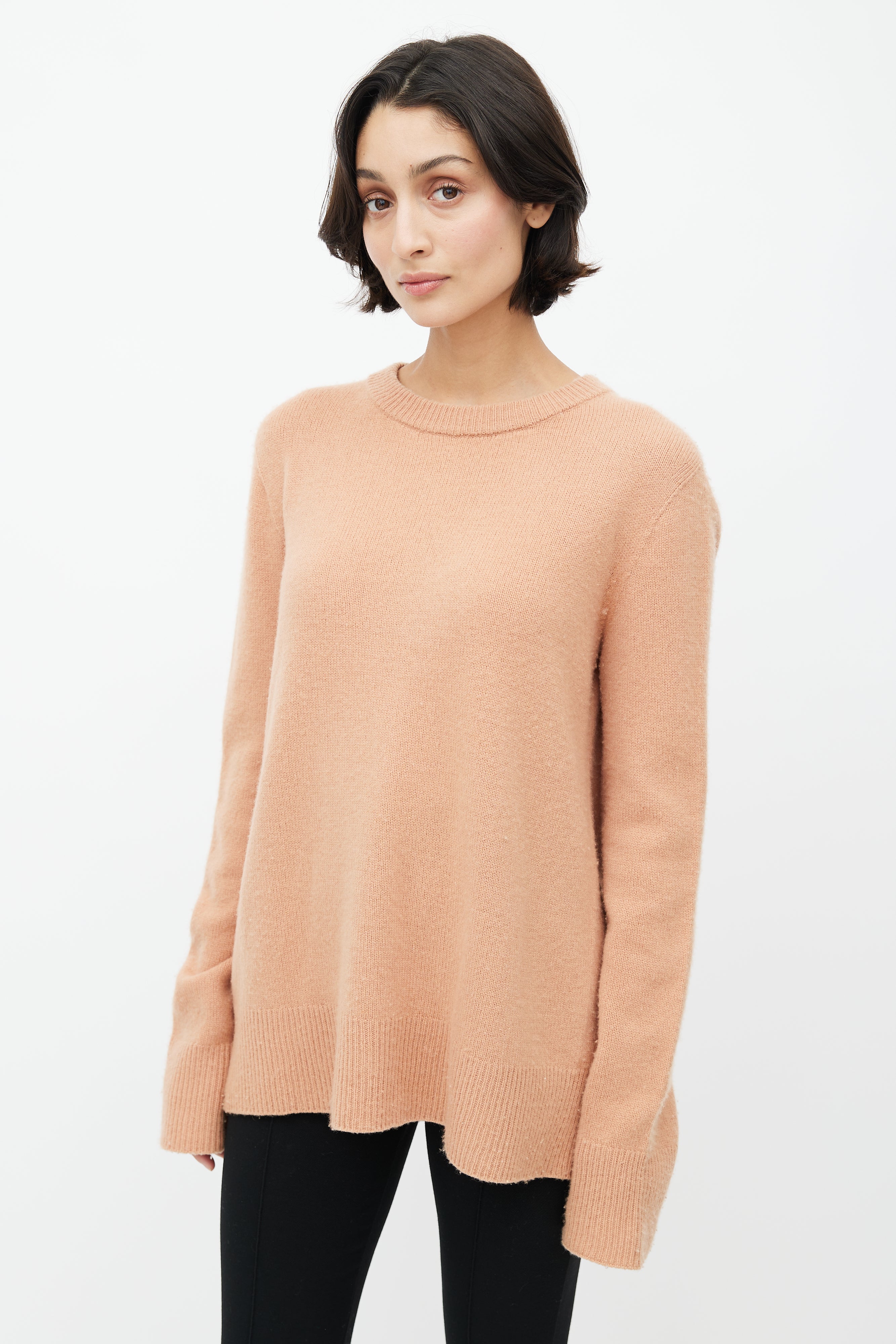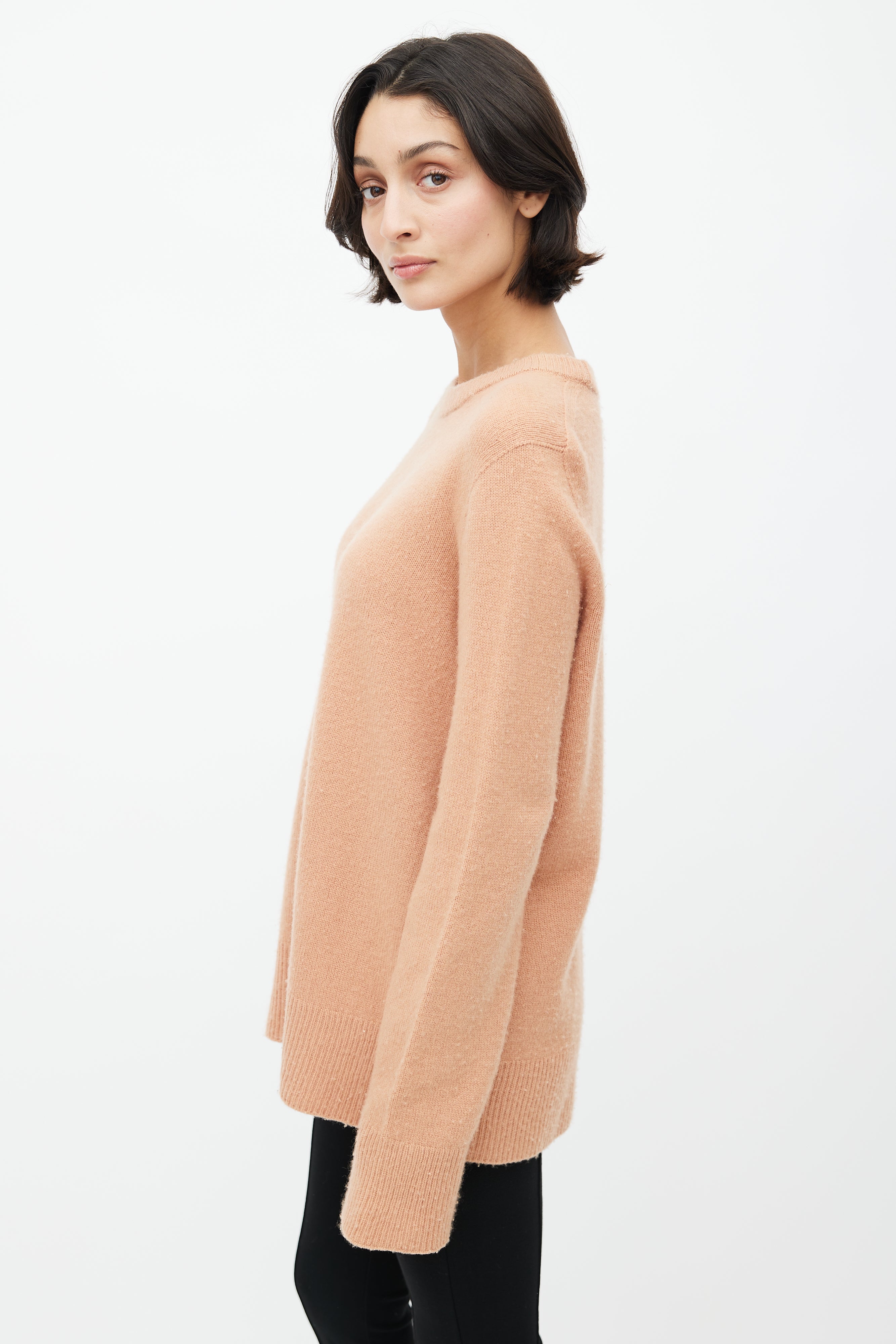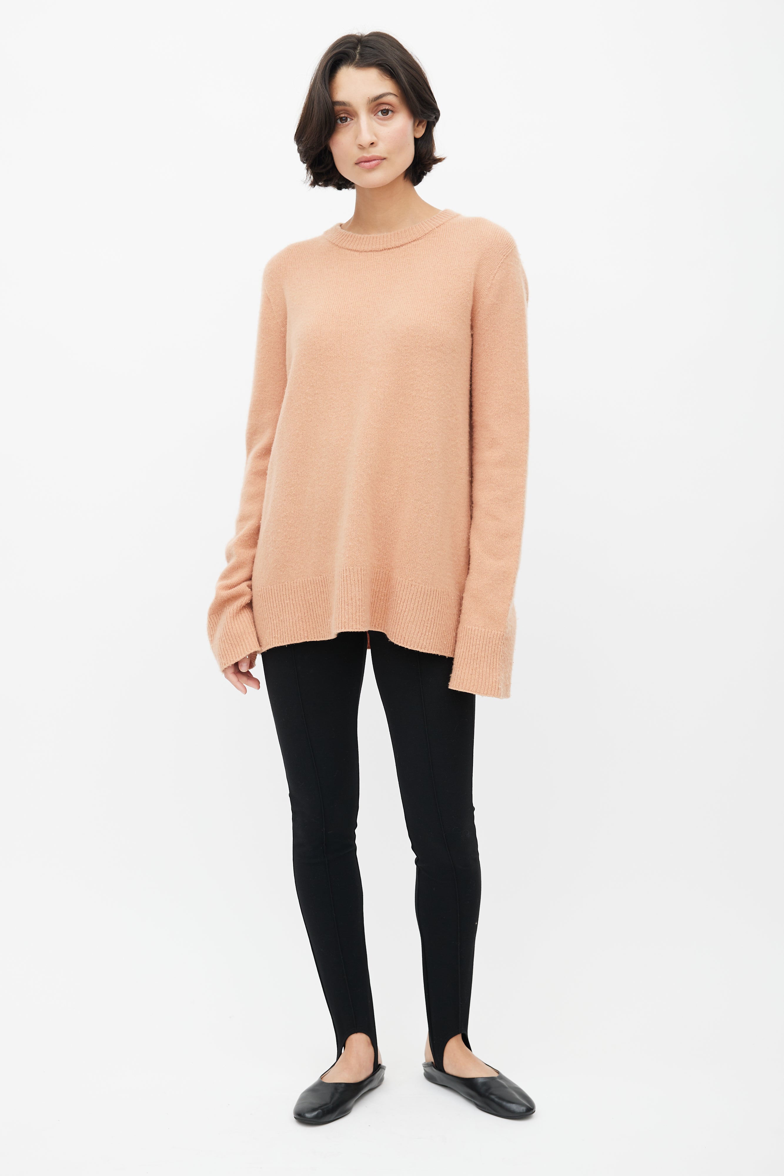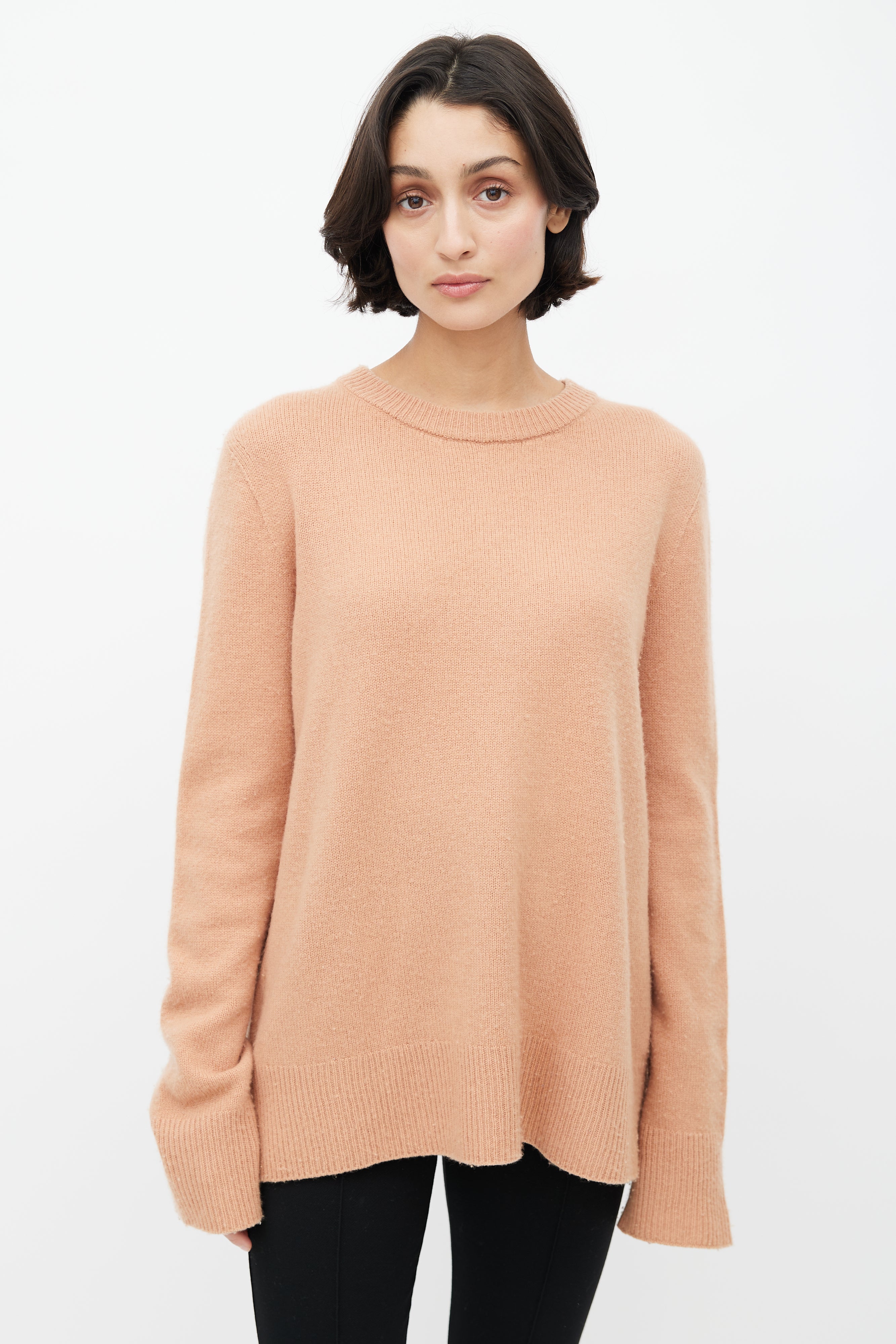 Pre-owned The Row beige cashmere knit sweater featuring a crew neckline, long sleeves, and ribbed hem.