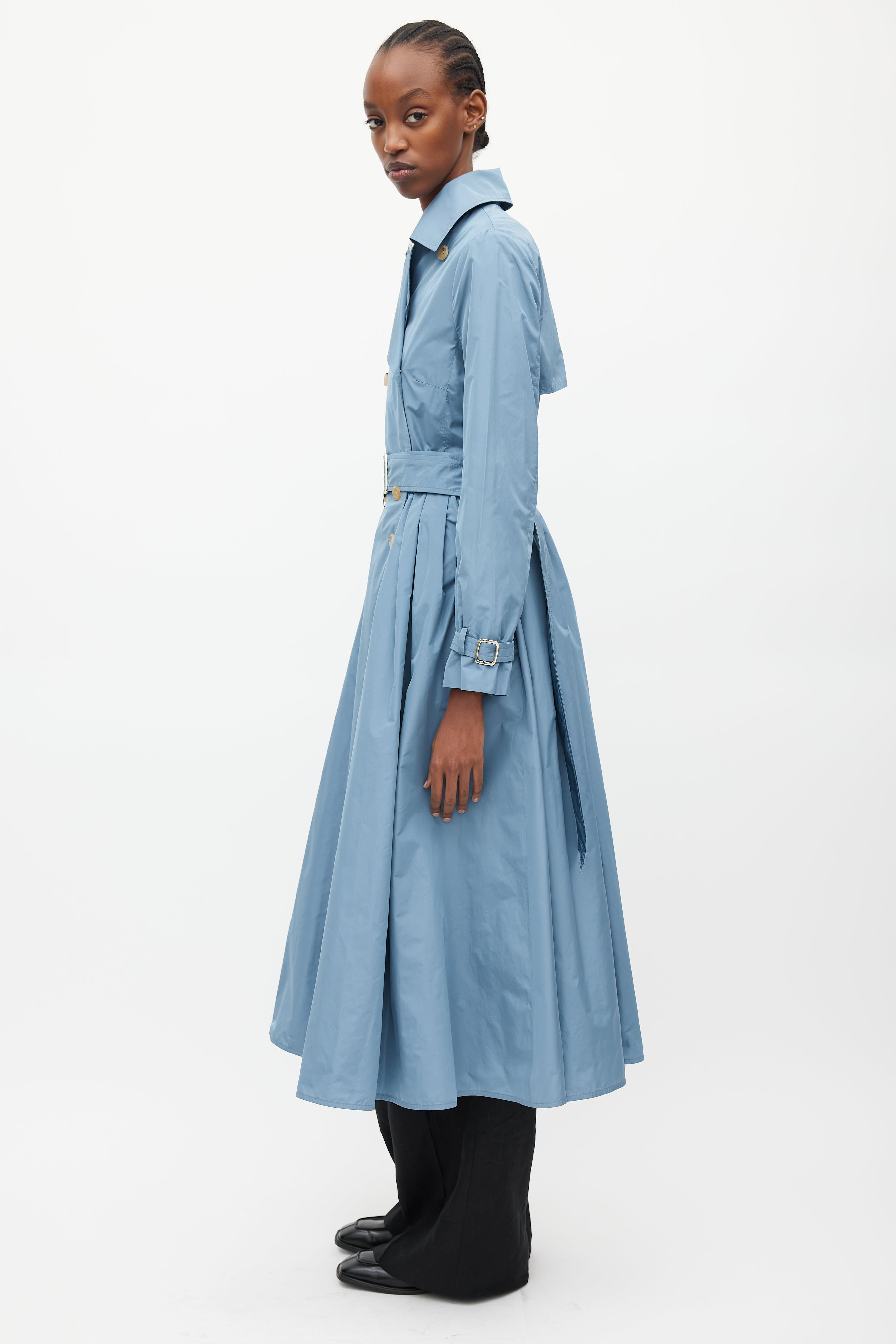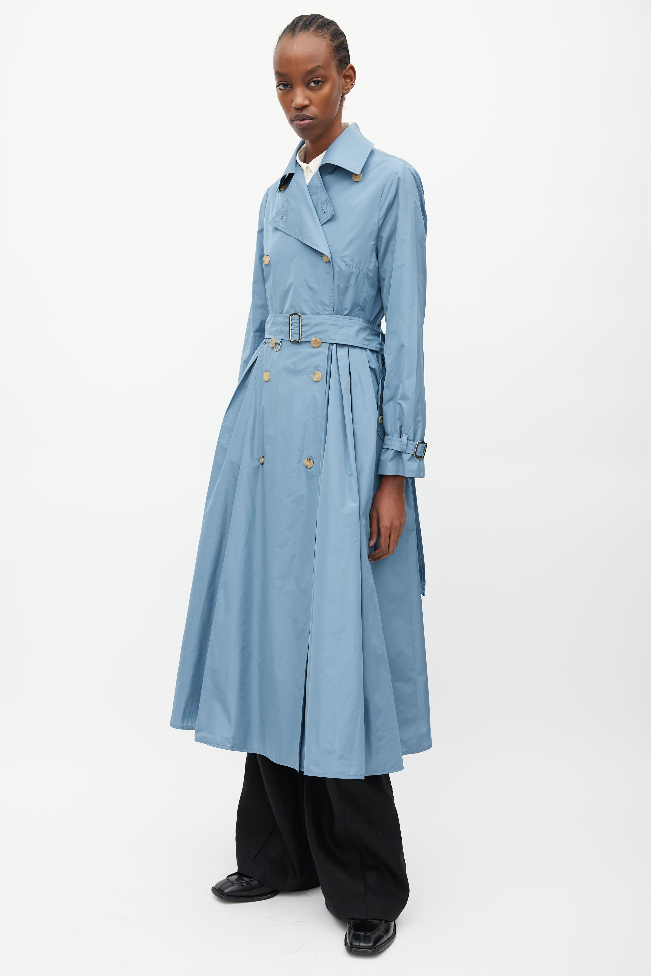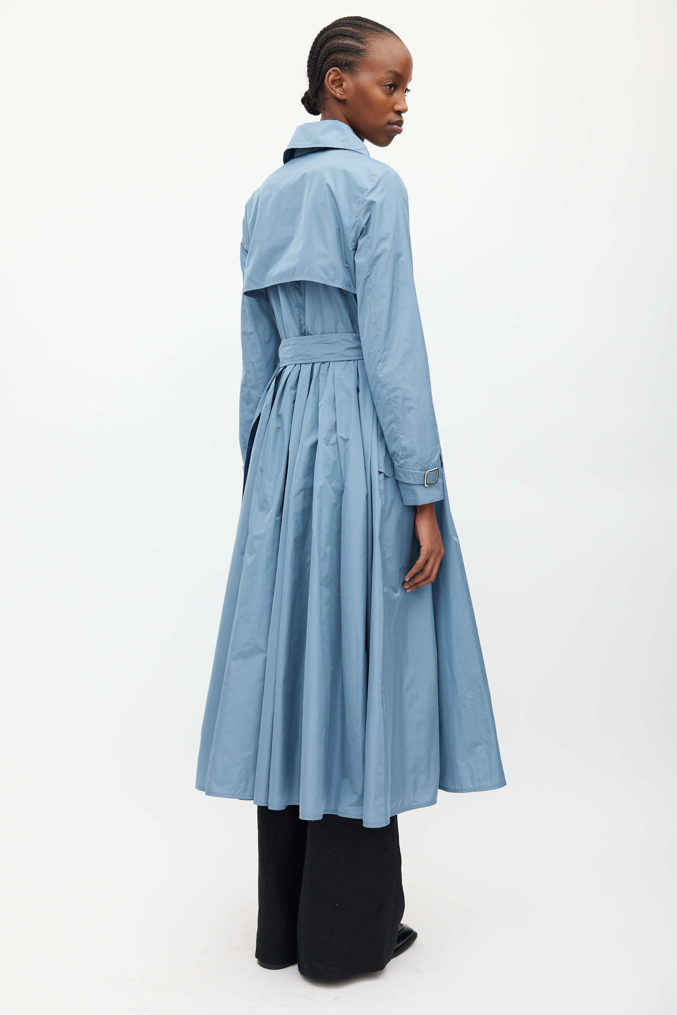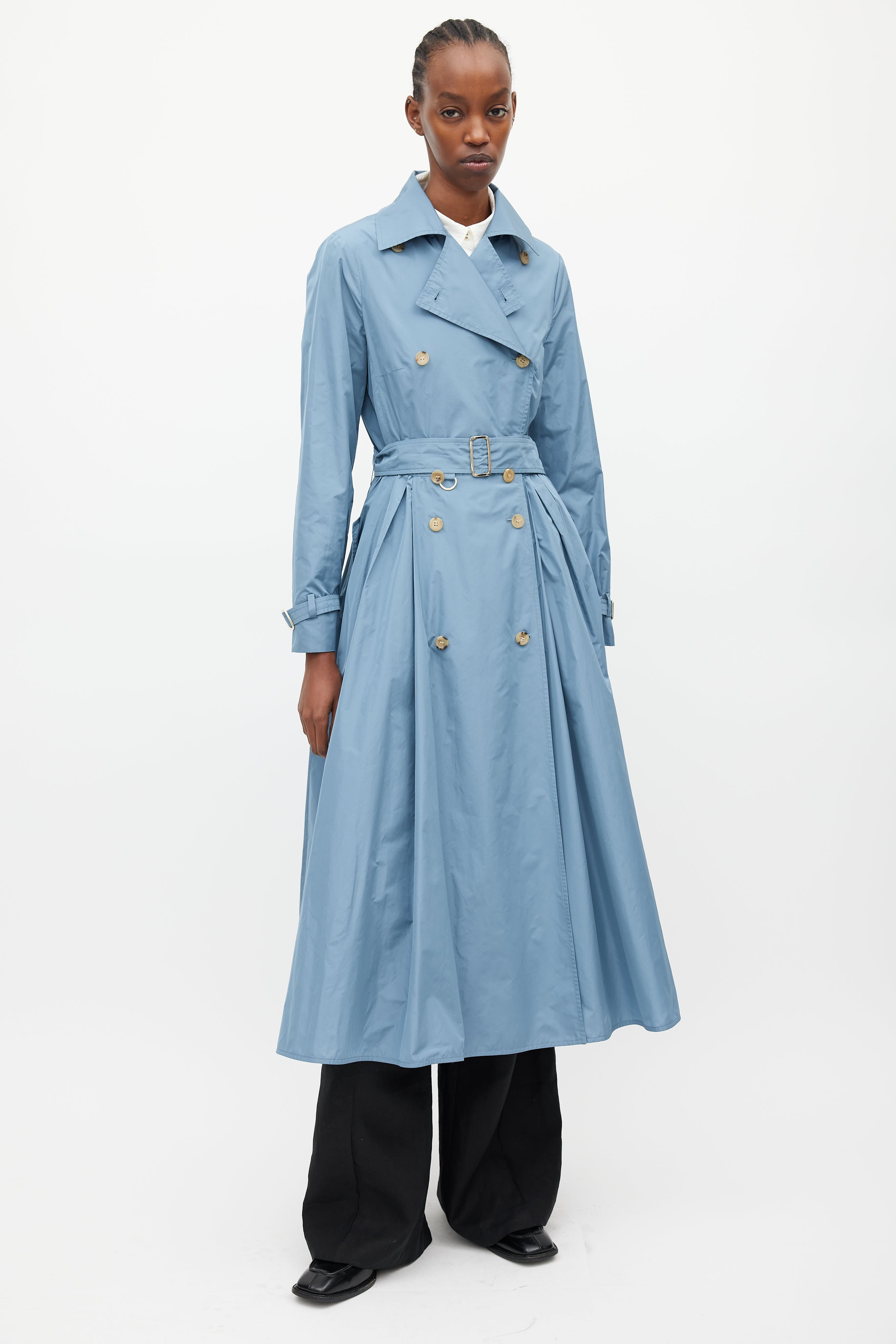 Blue Nylon A-Line Belted Trench Coat US 10 Size Guide