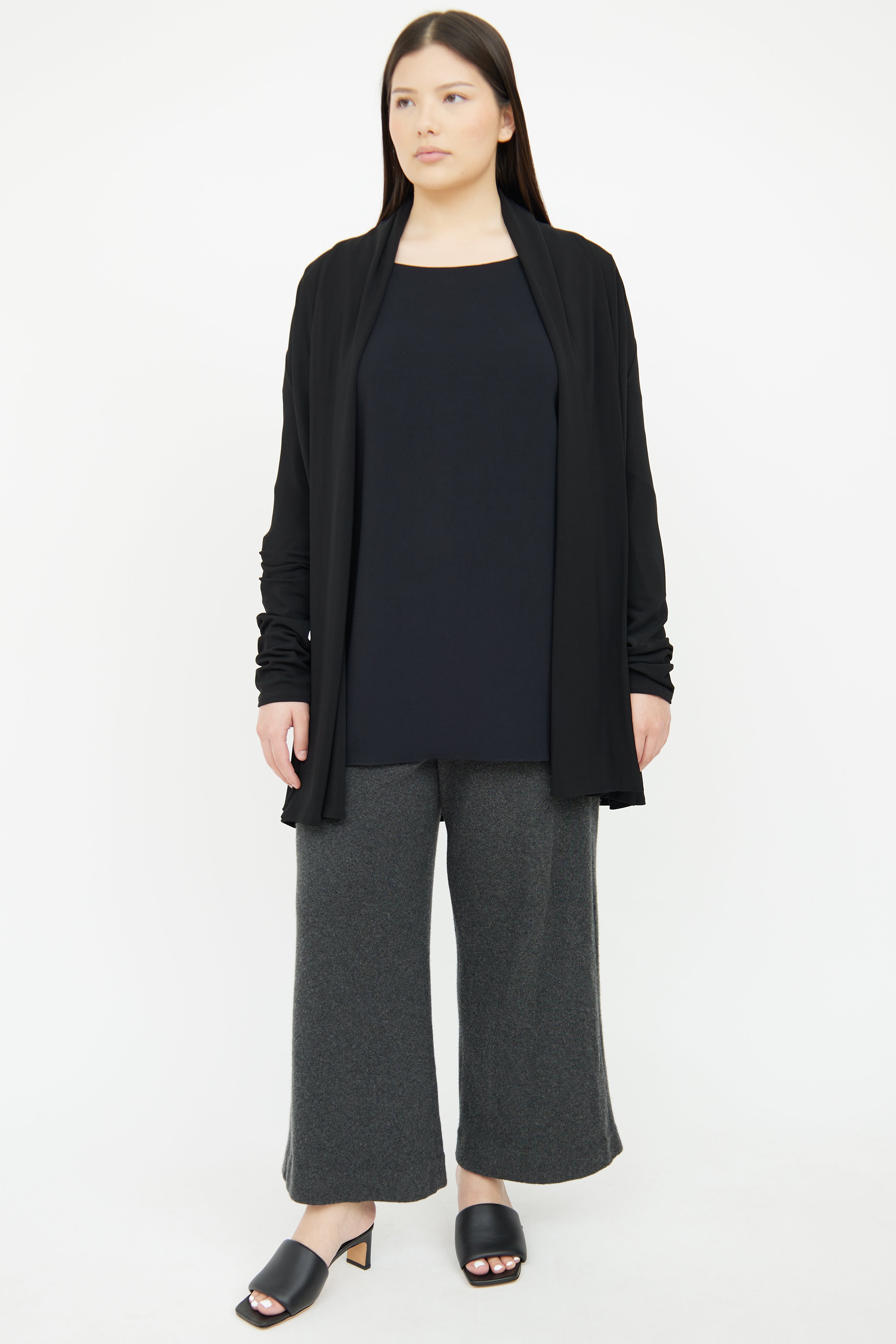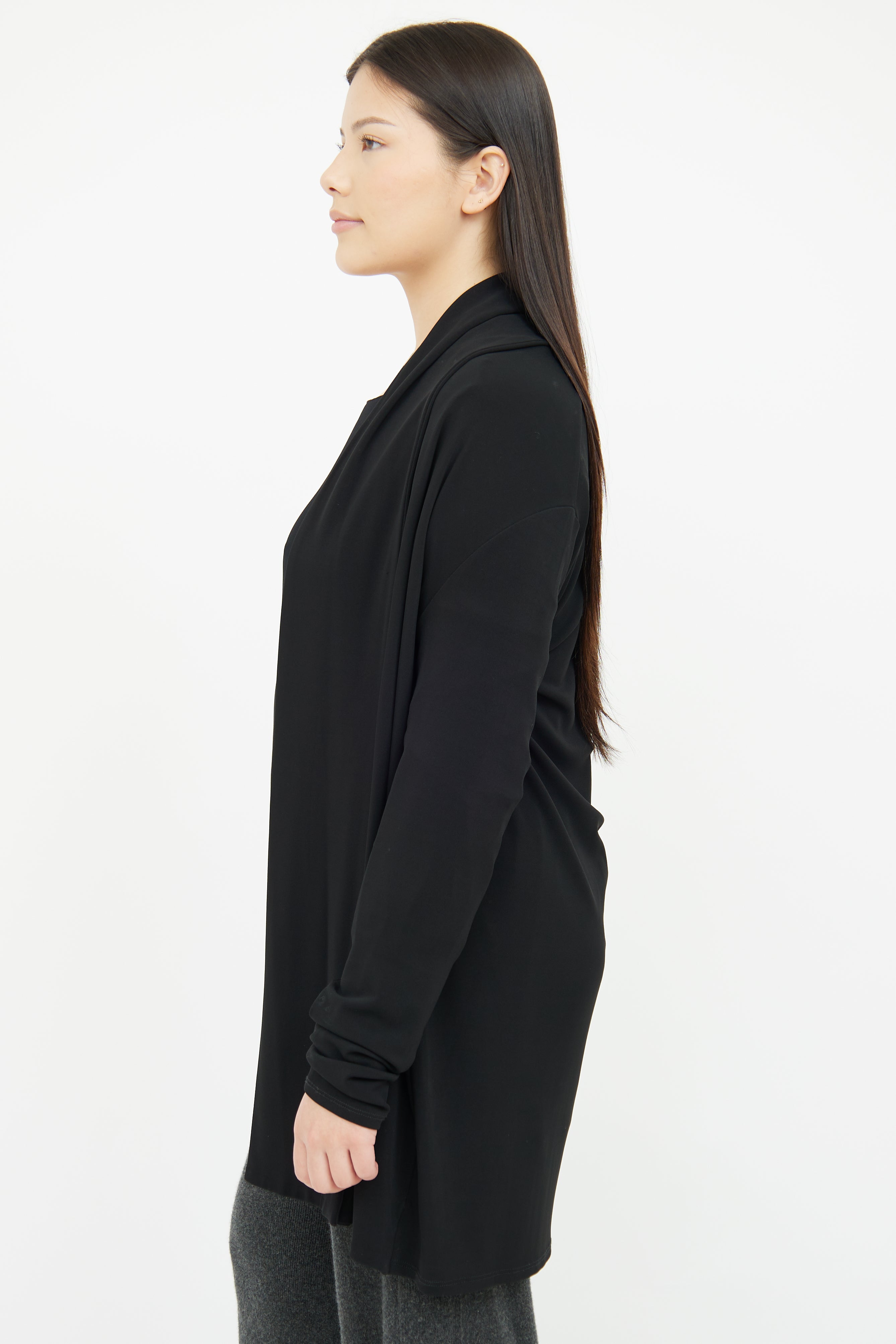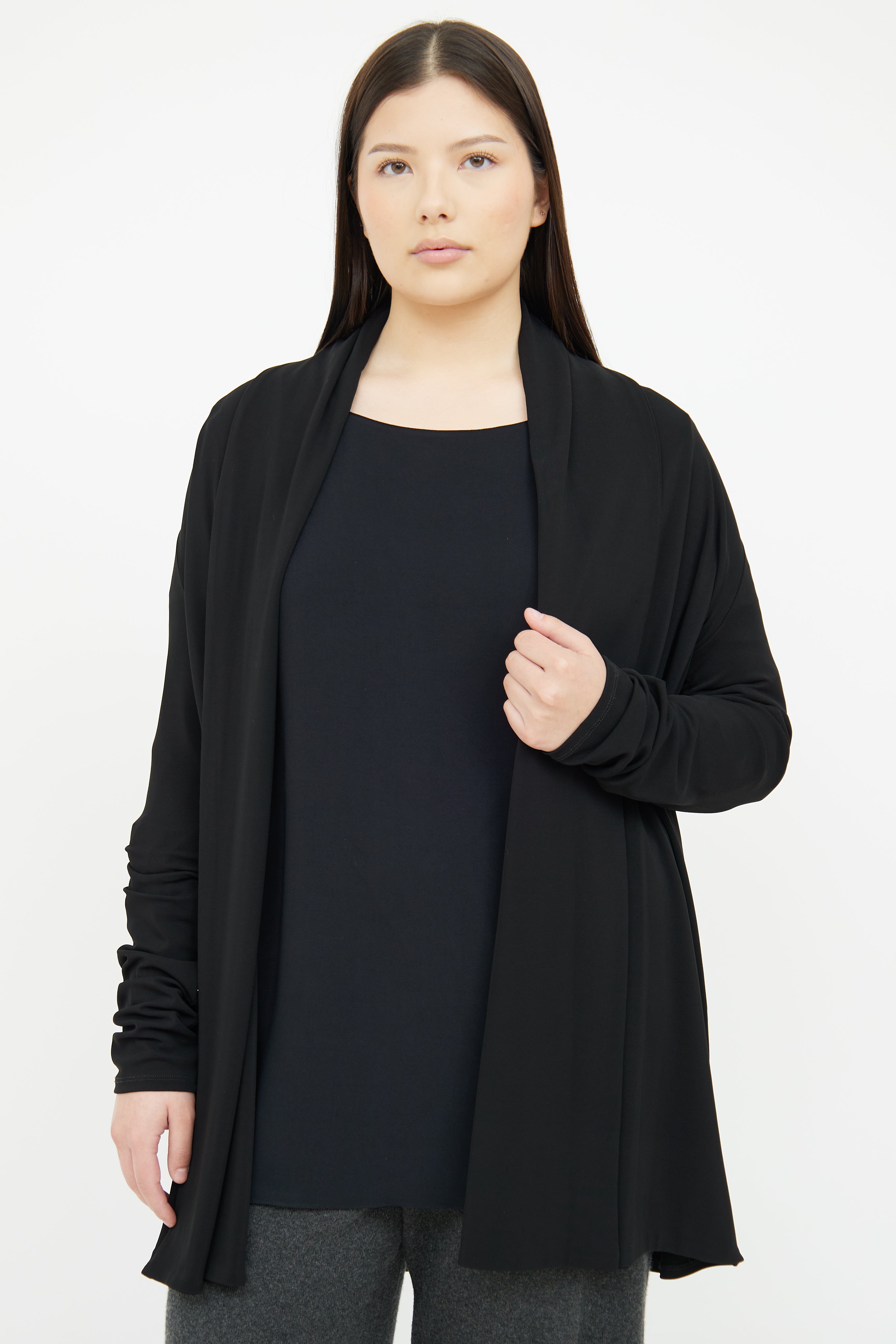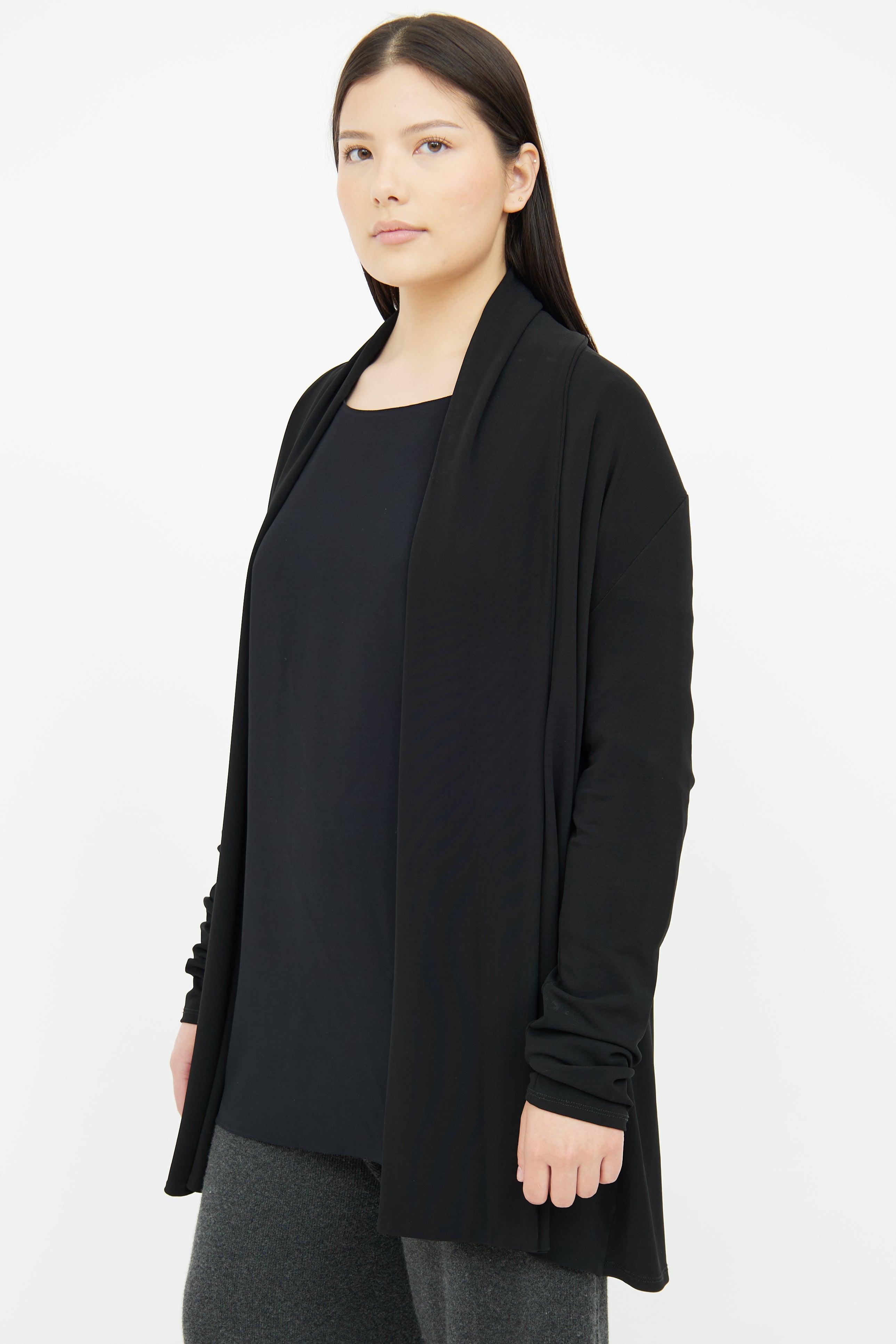 Pre-owned The Row black cardigan featuring long sleeves, shawl collar and open front style.