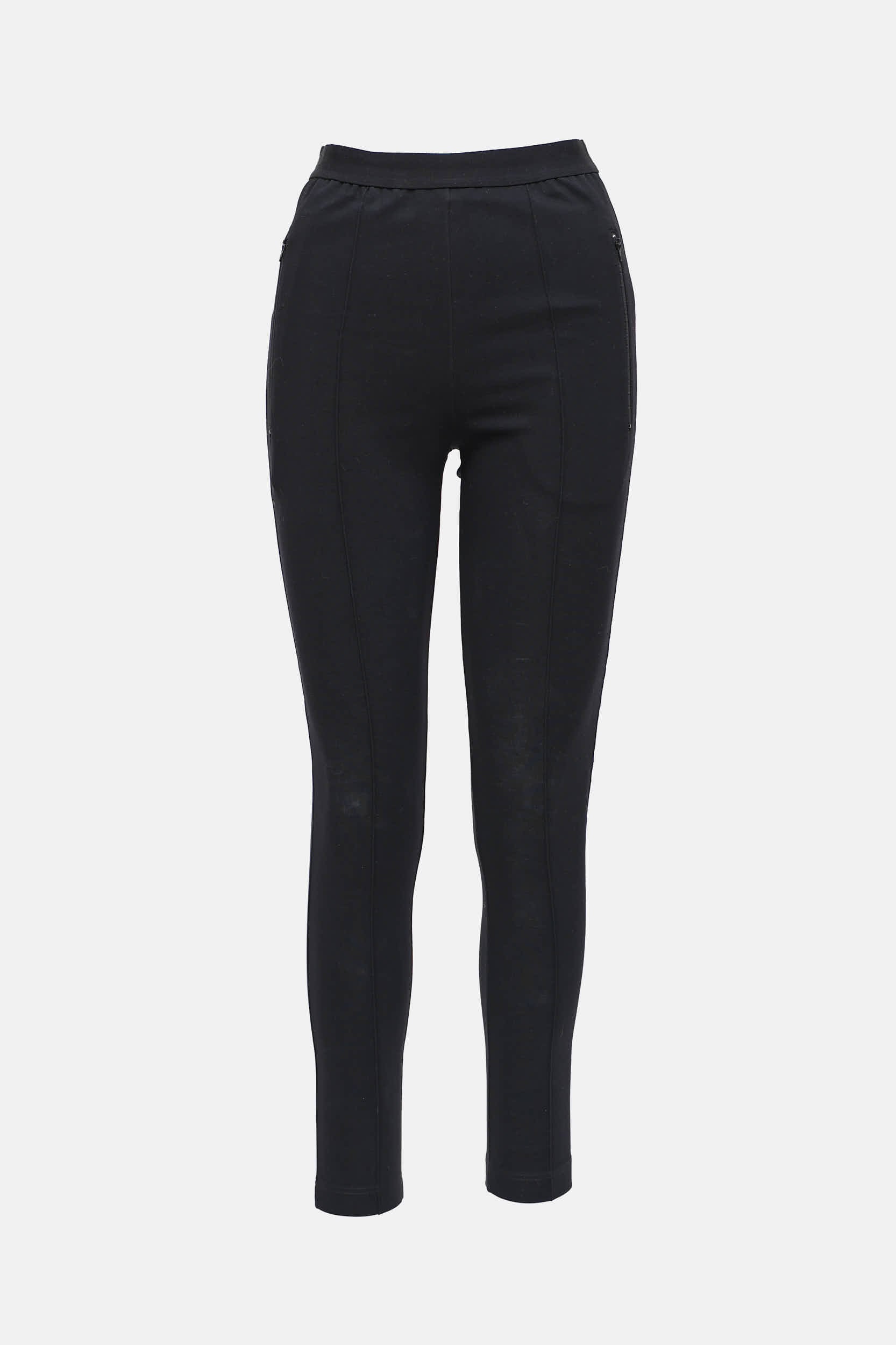 Pre-owned Balenciaga black leggings featuring logo at waistband, zipped pockets at side, and centre seam at middle.